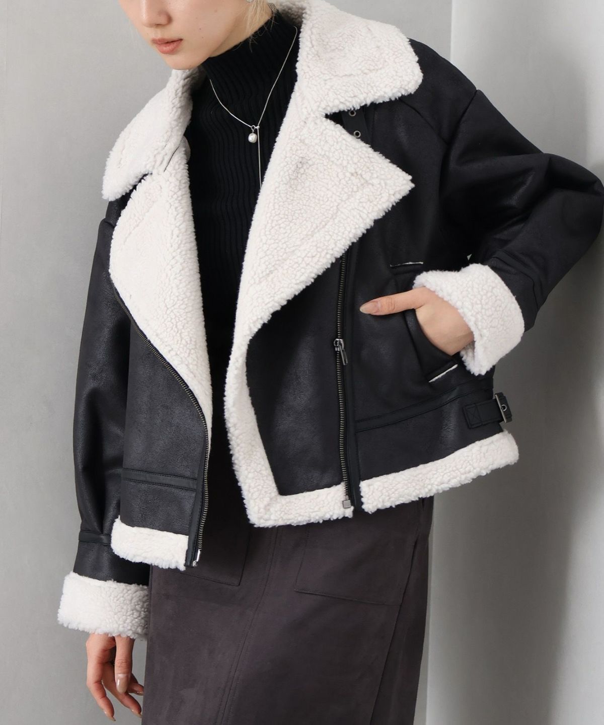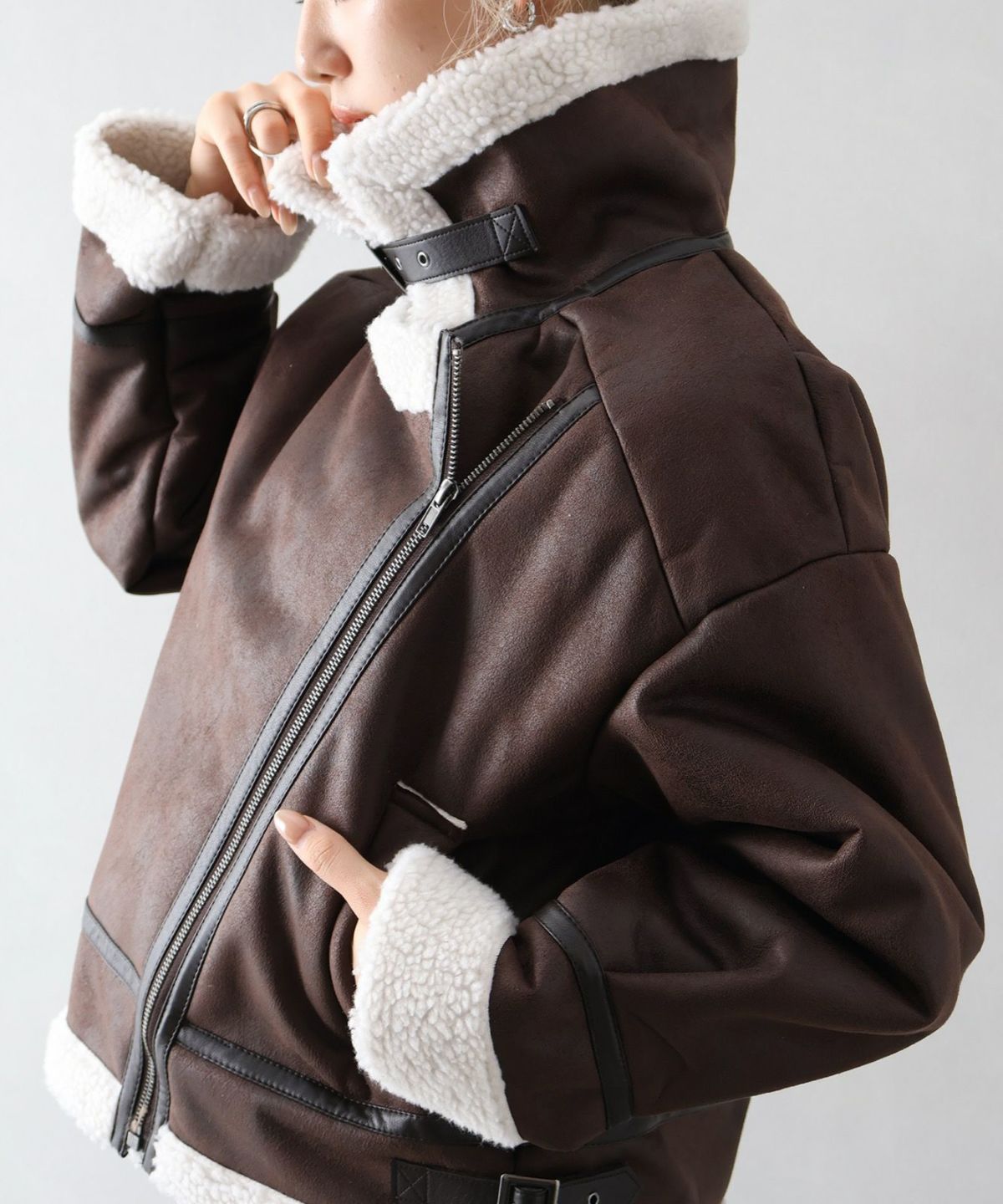 フェイクムートンクロップドジャケット