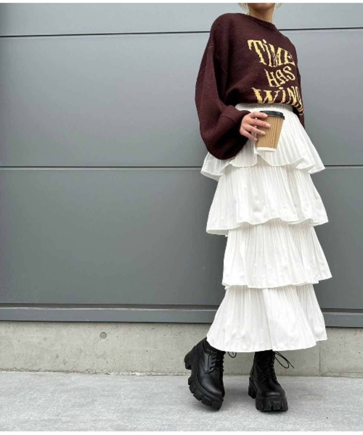 アシメプリーツティアードロングスカート