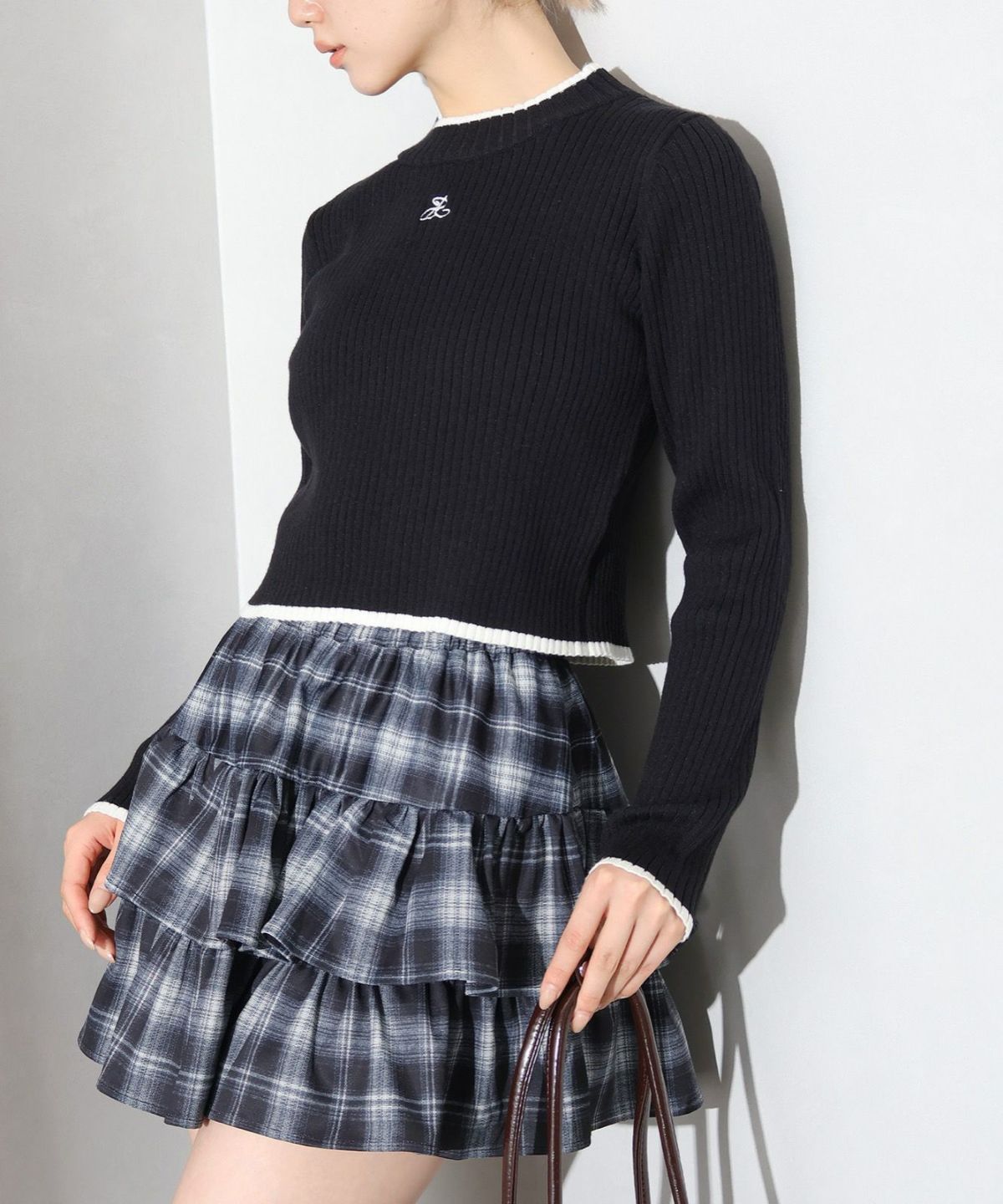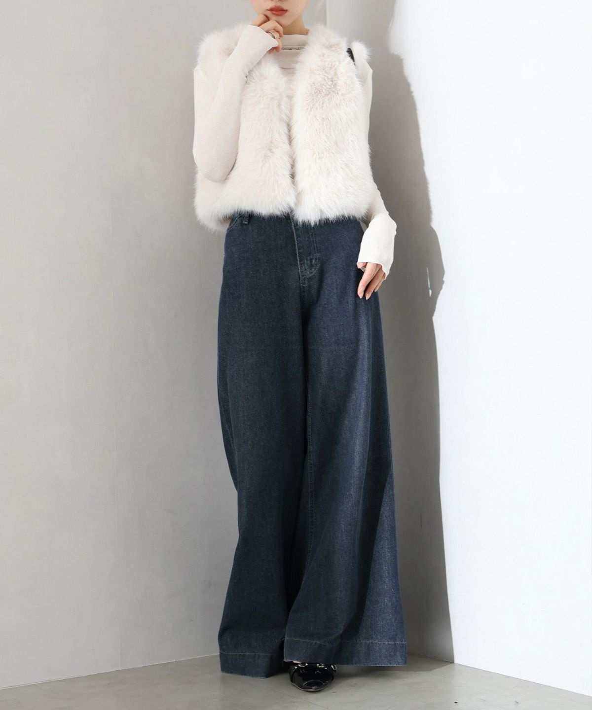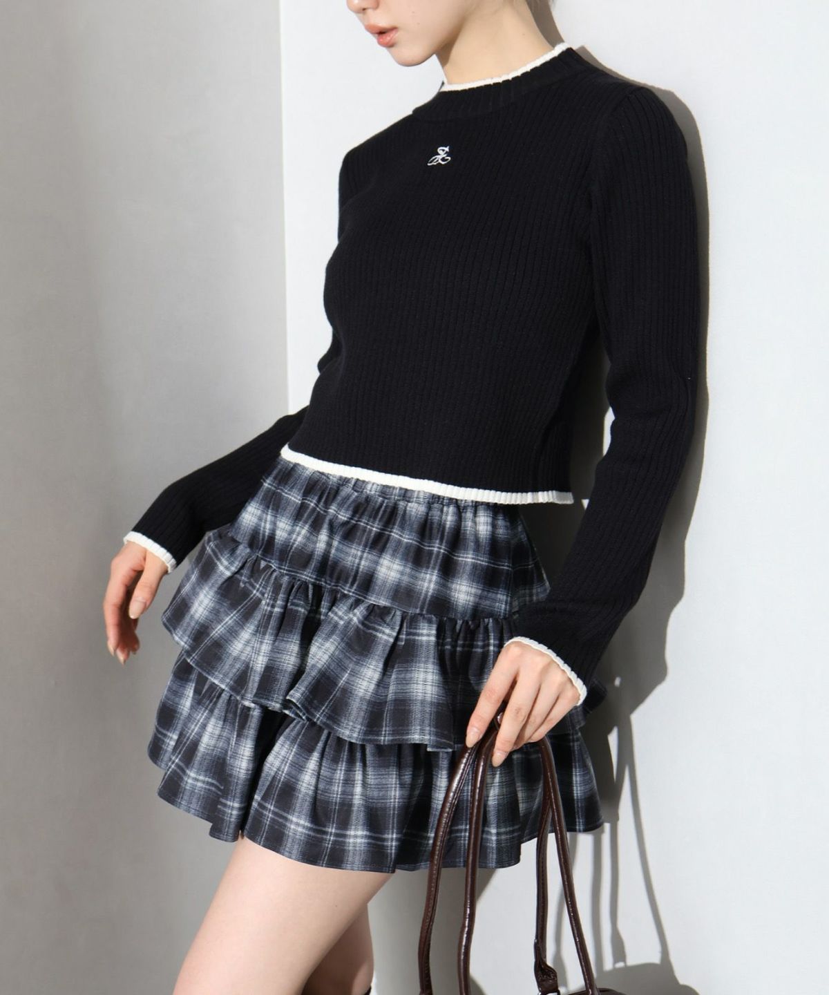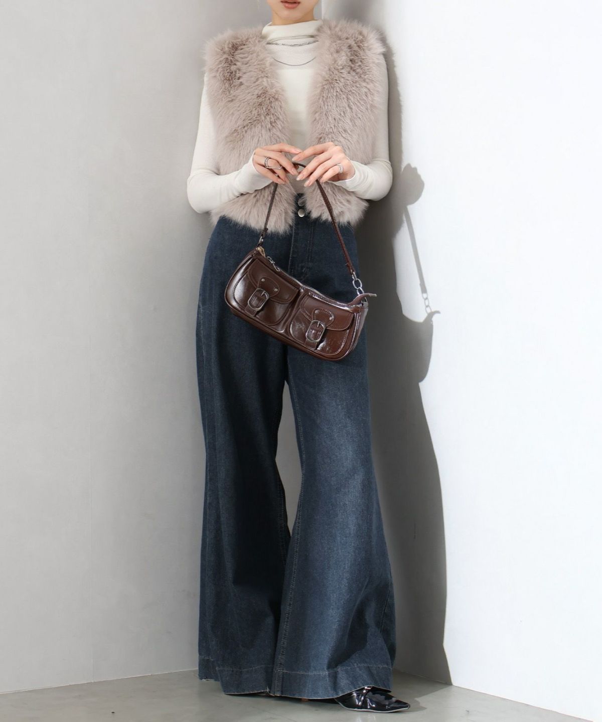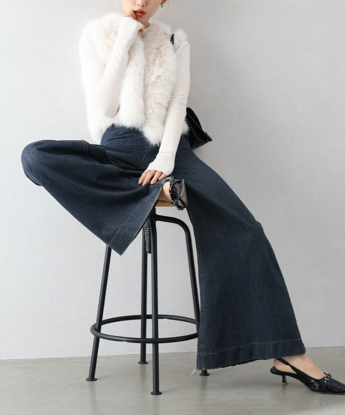 デニムポケット付き切替フェイクレイヤードカーディガン