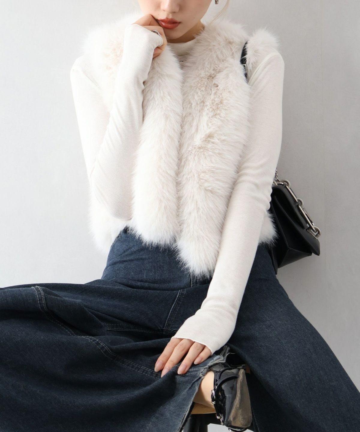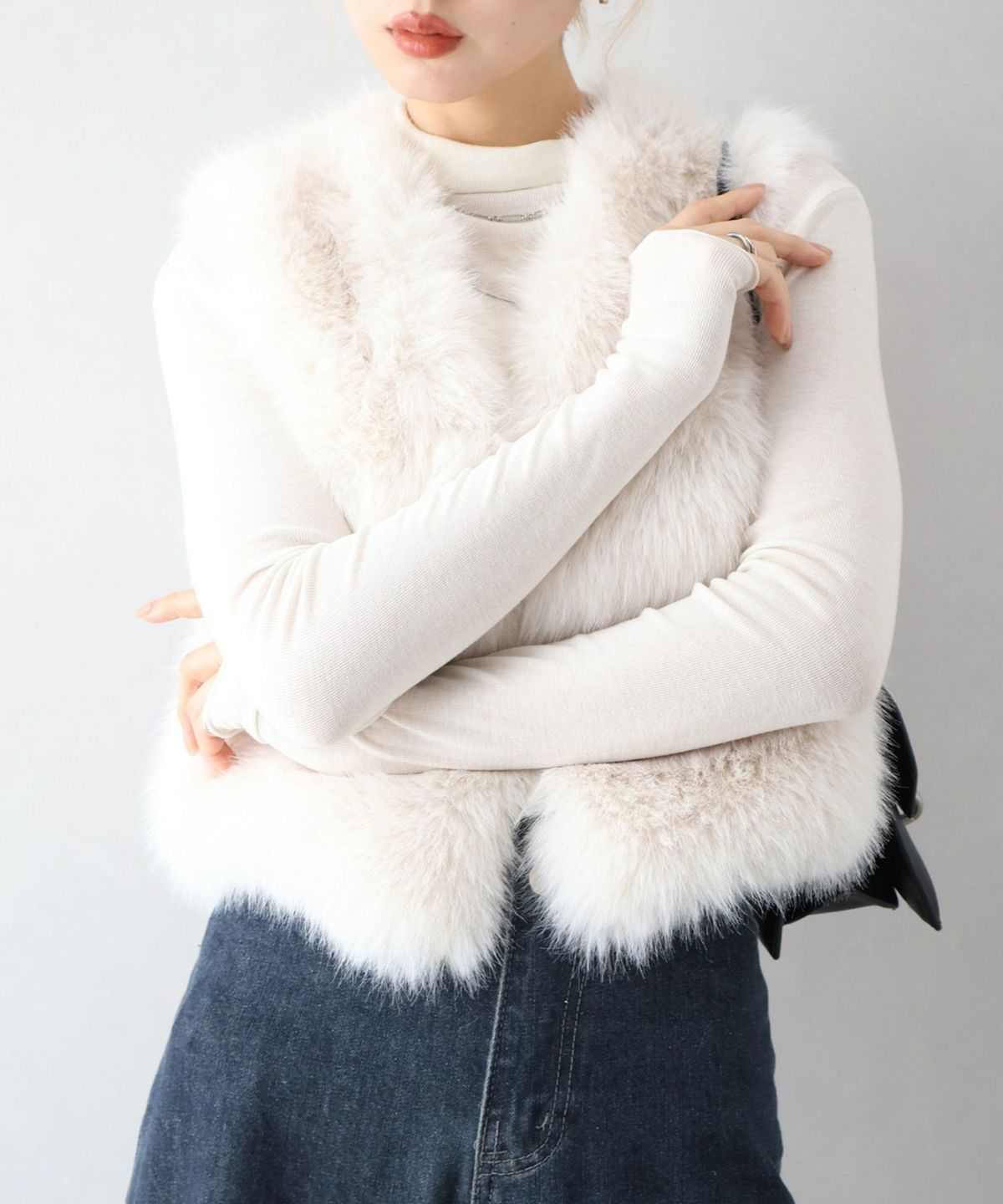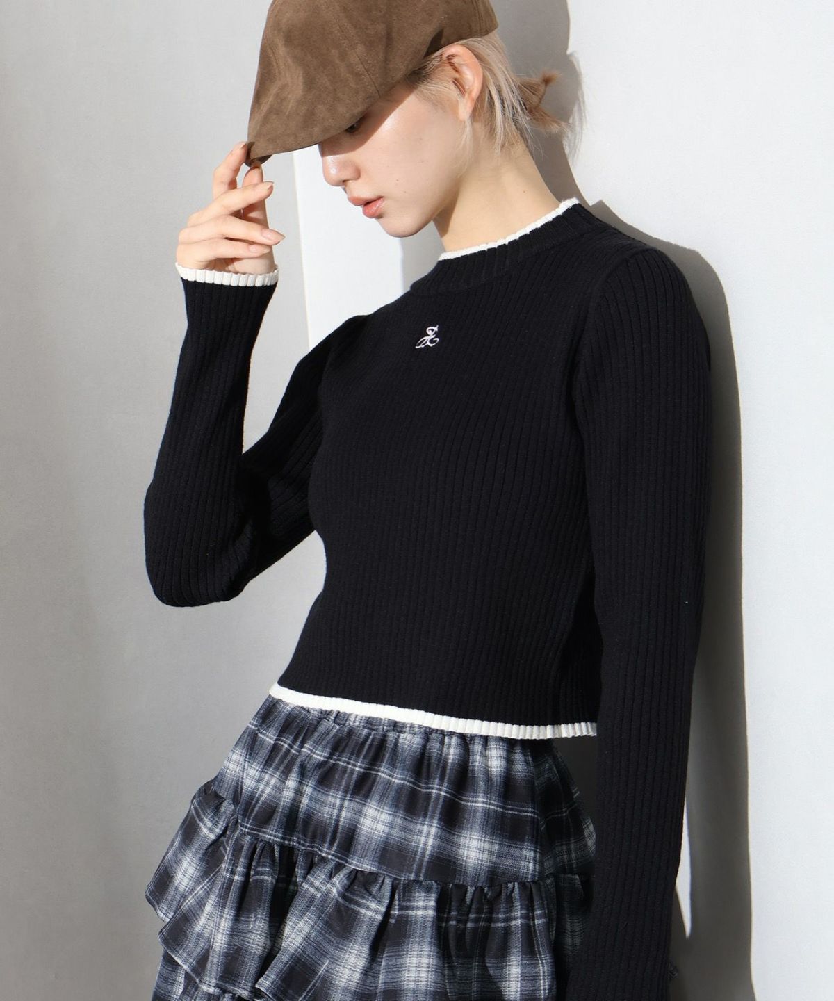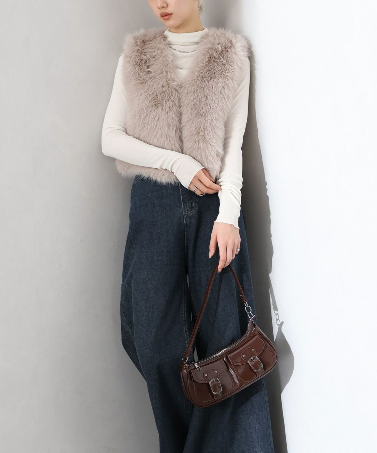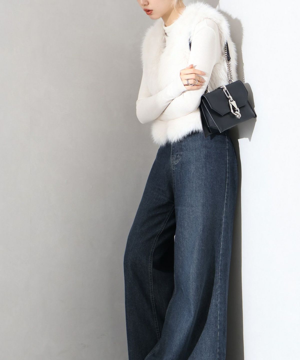 デニムポケット付き切替フェイクレイヤードカーディガン