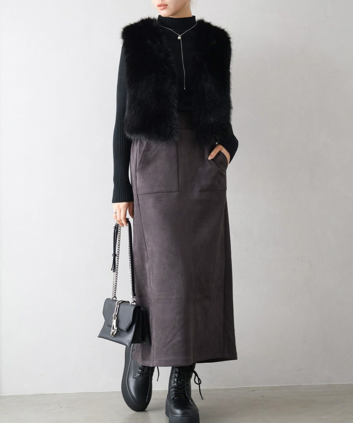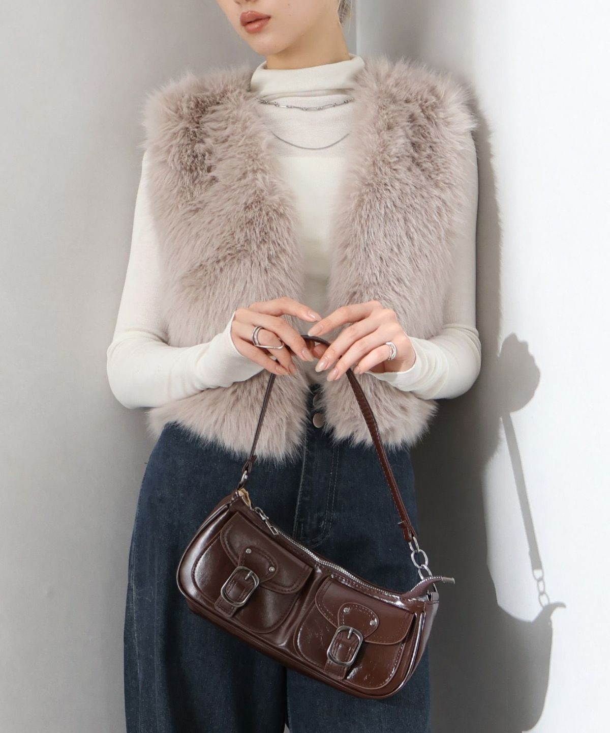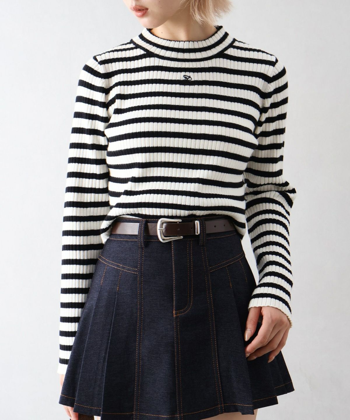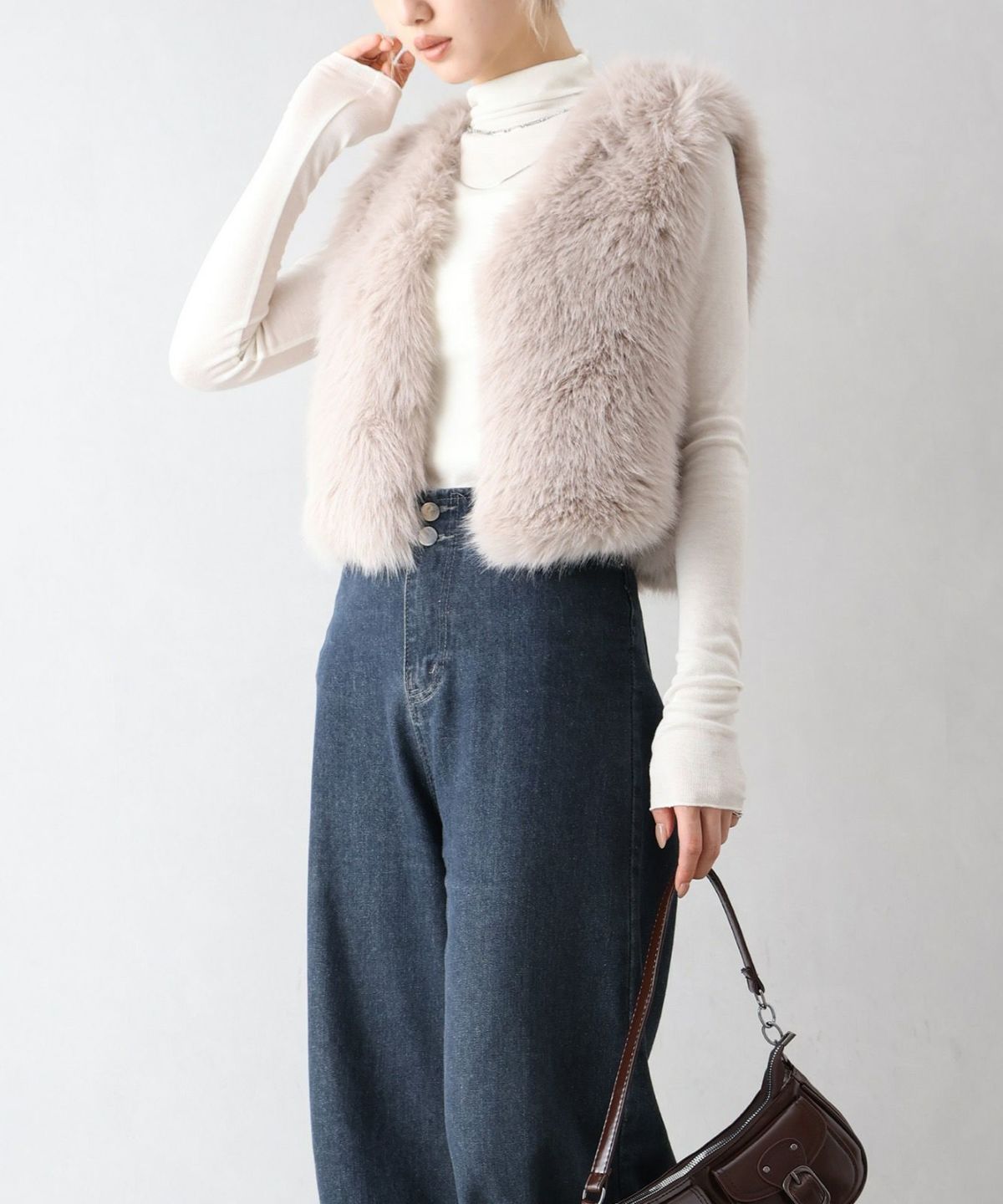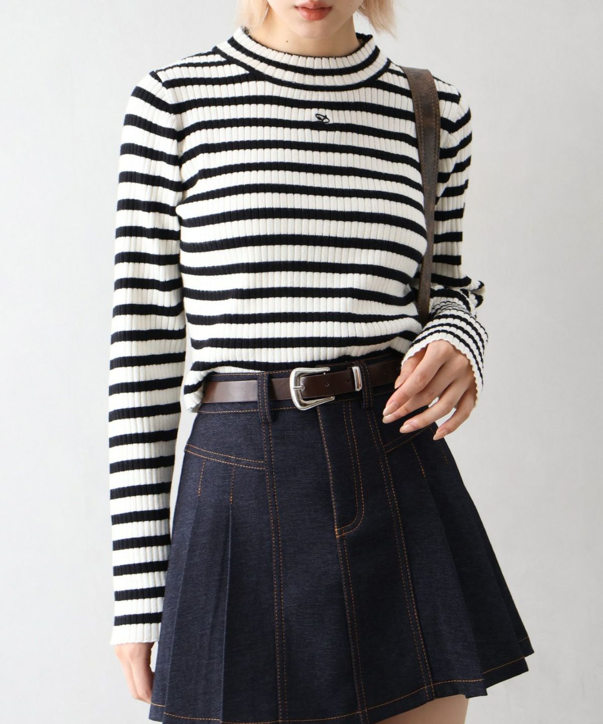 デニムポケット付き切替フェイクレイヤードカーディガン