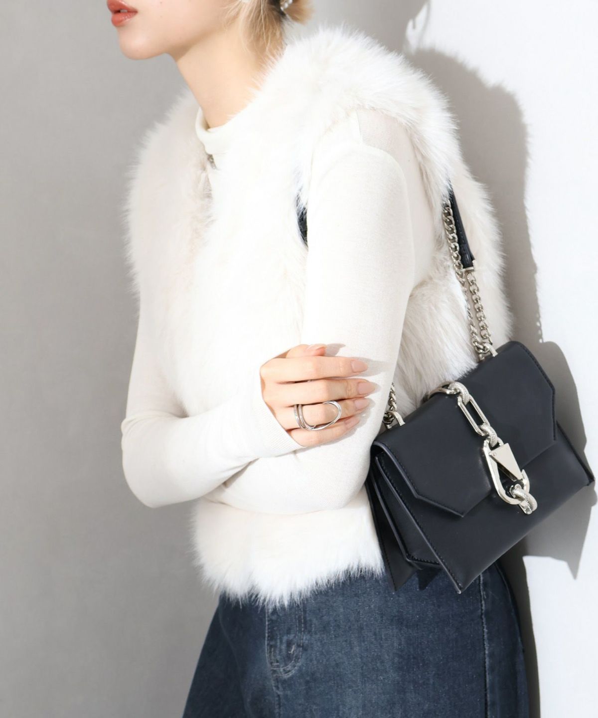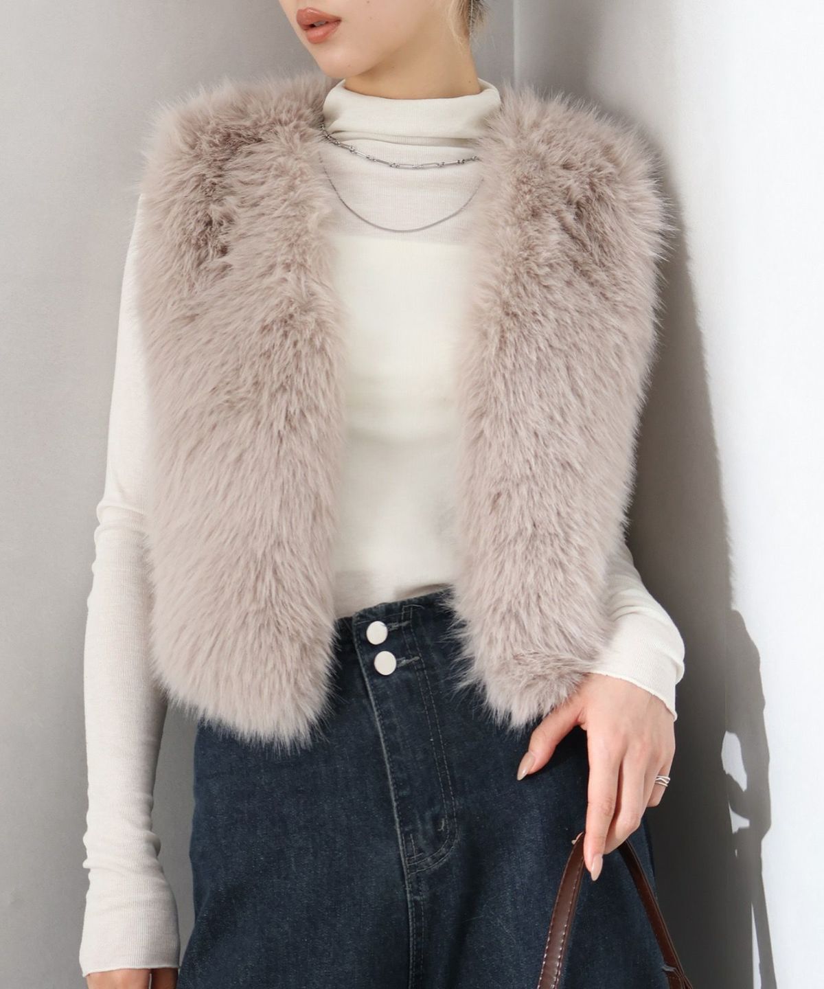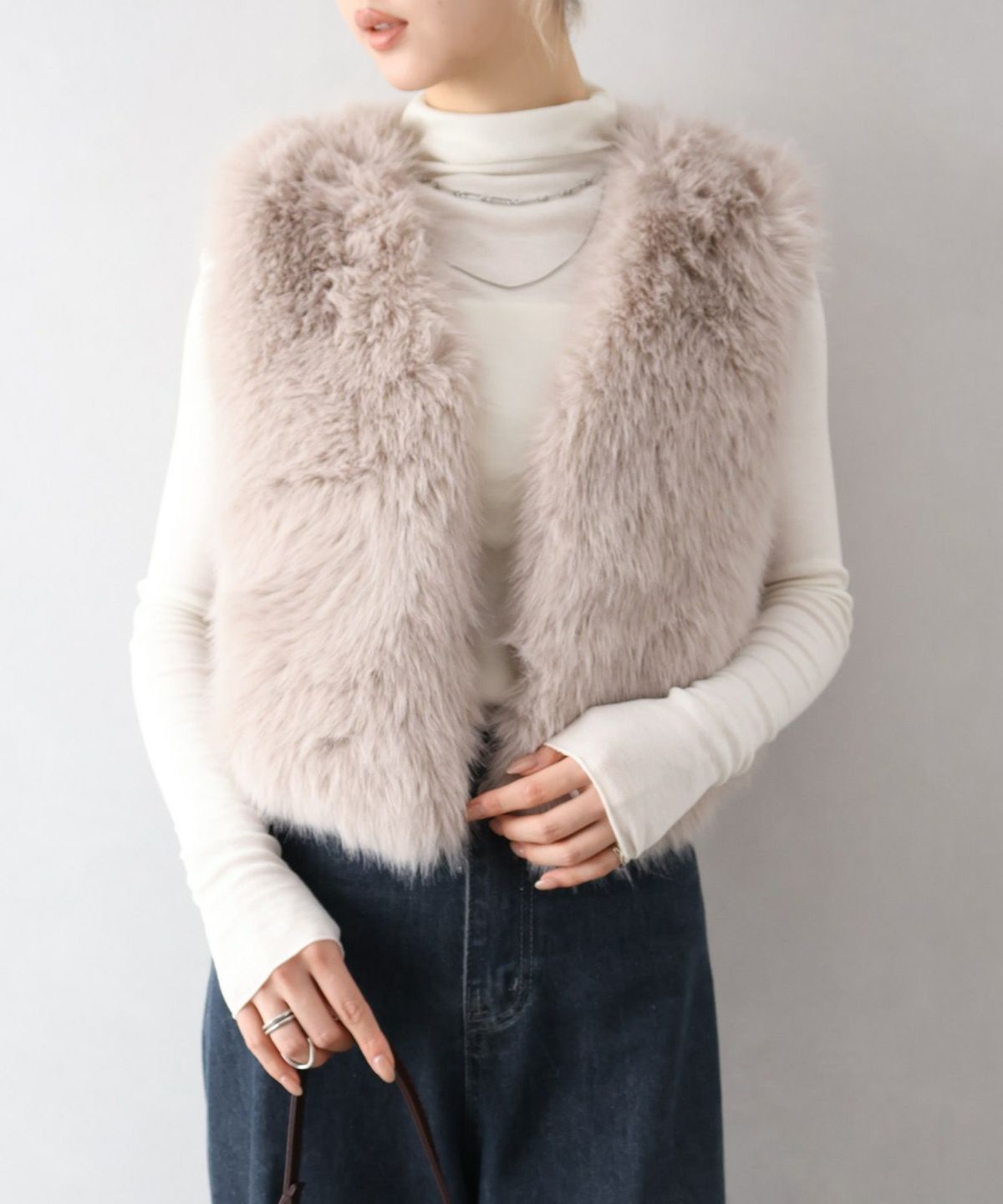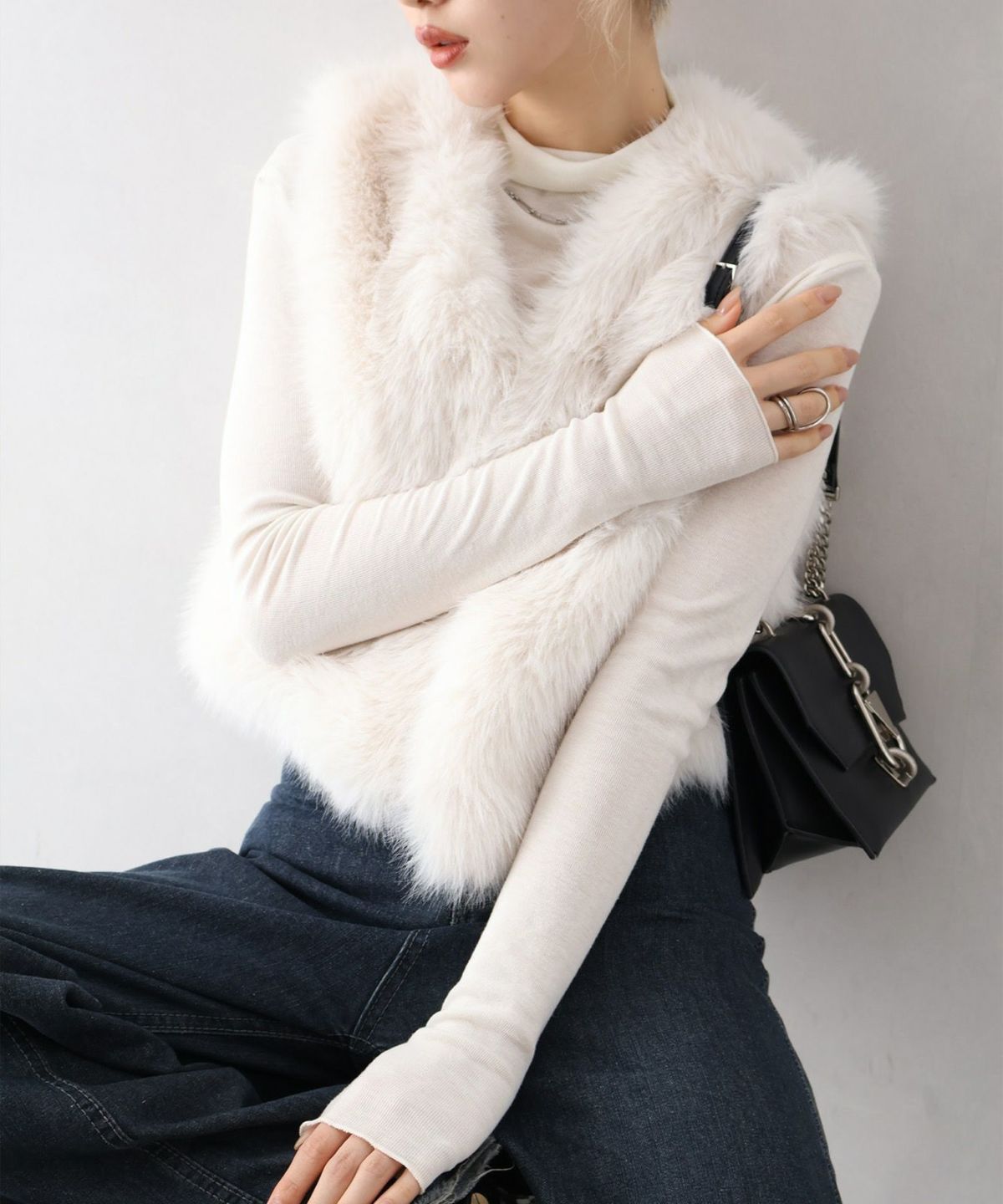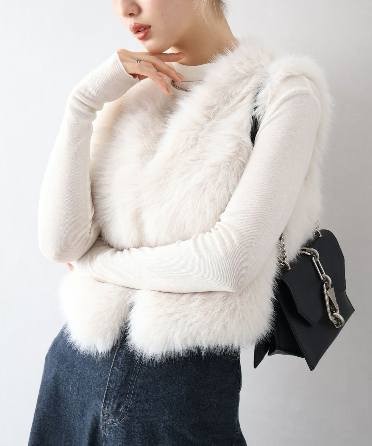 デニムポケット付き切替フェイクレイヤードカーディガン