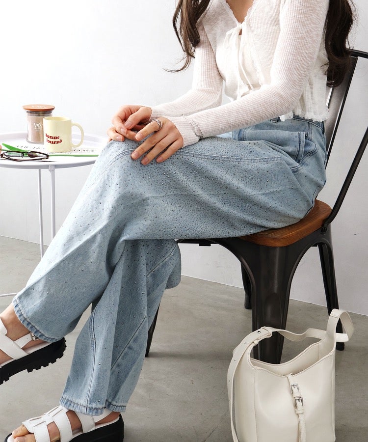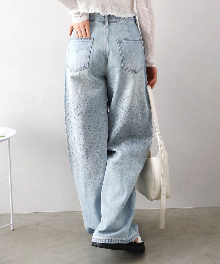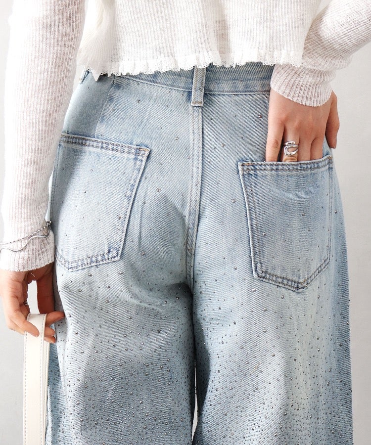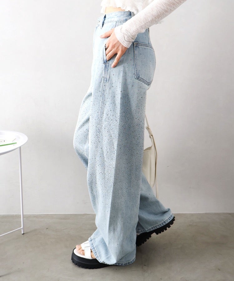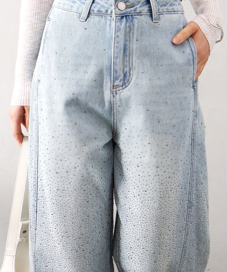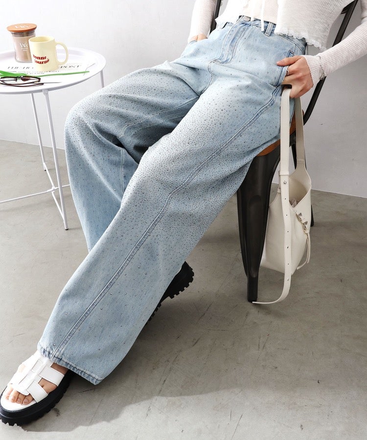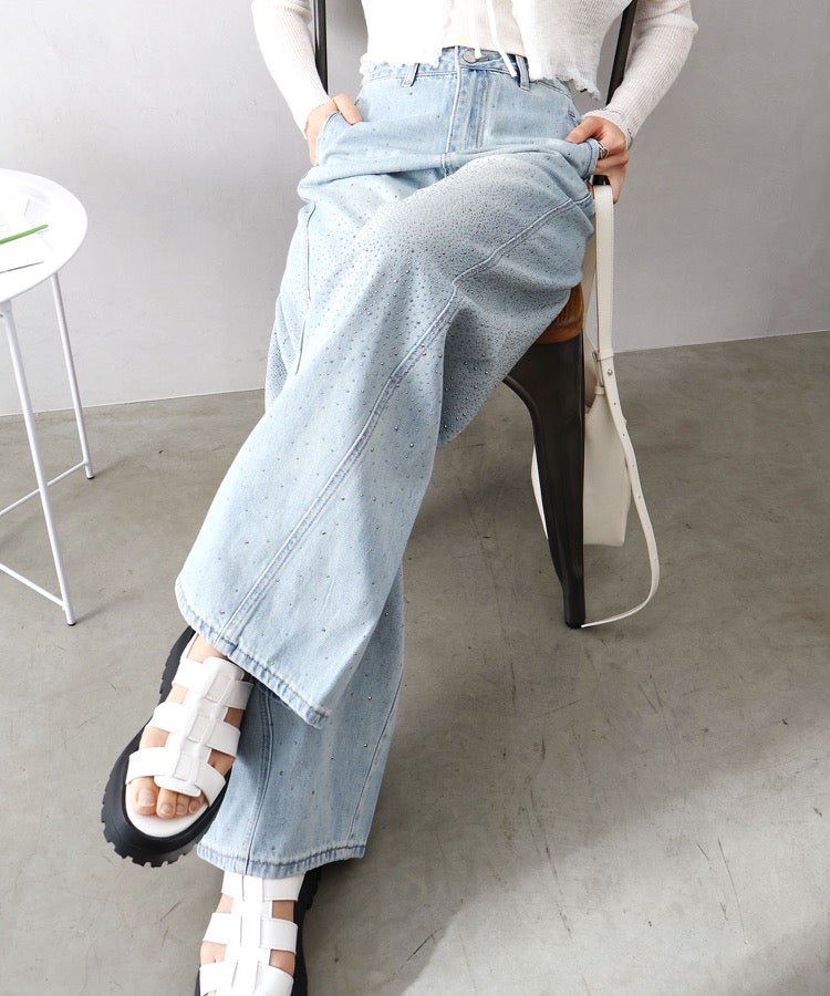 【Lサイズ、LLサイズ登場】すそフリンジデニムワイドパンツ