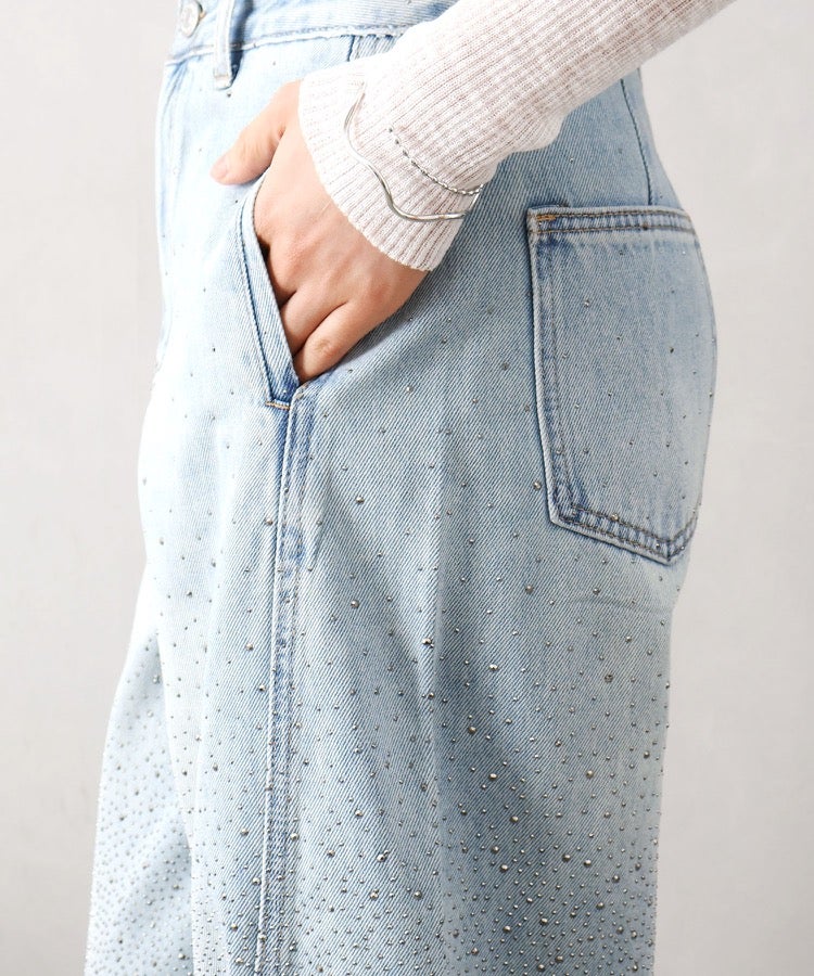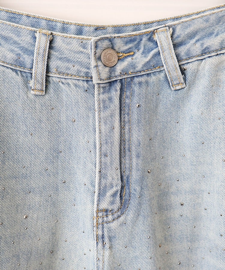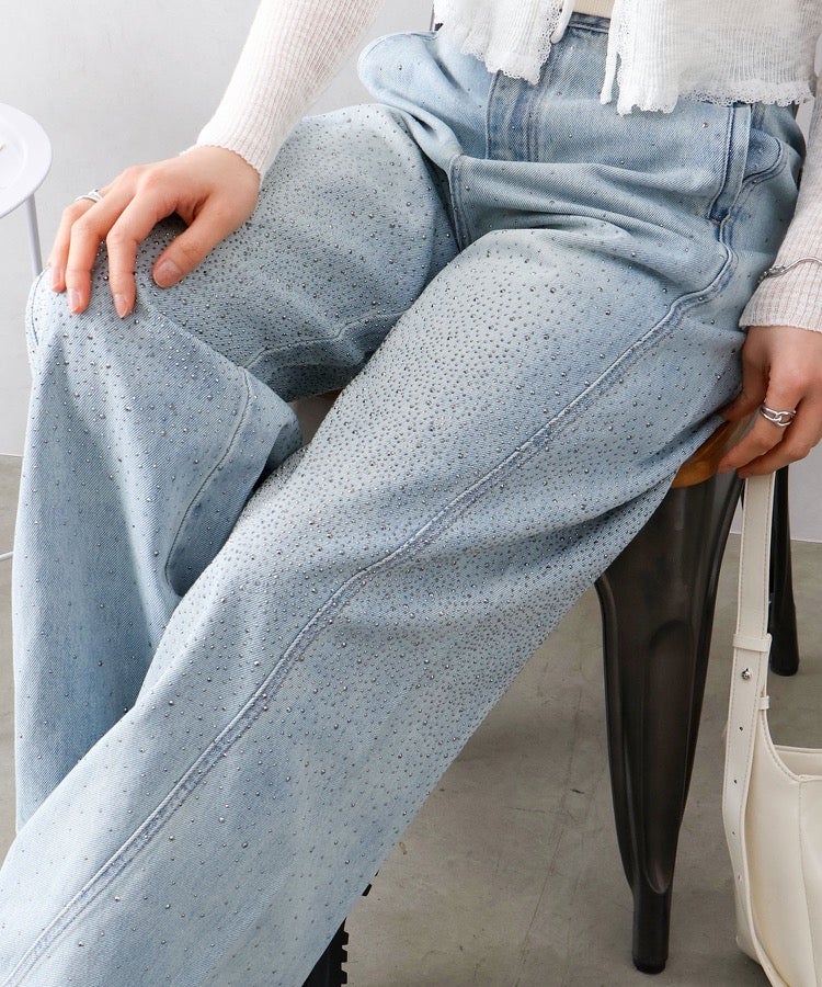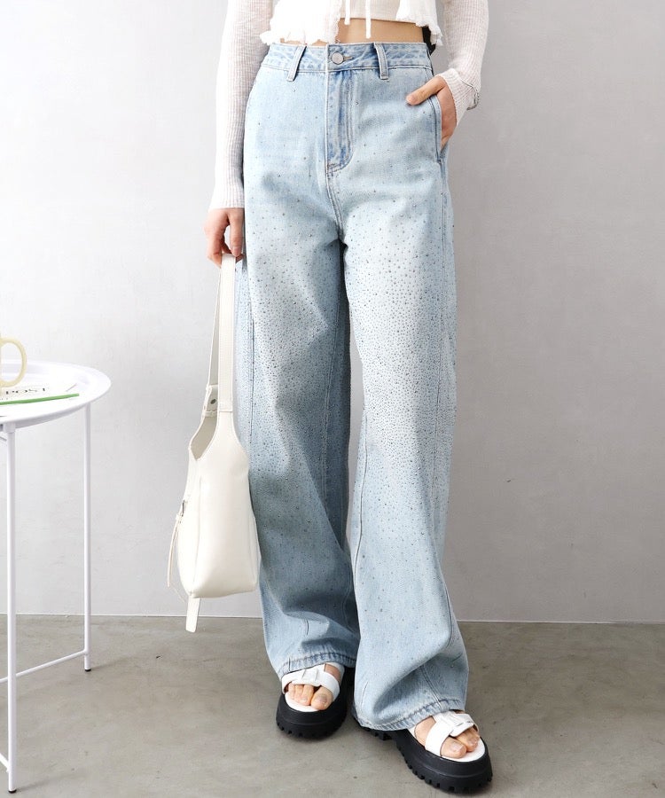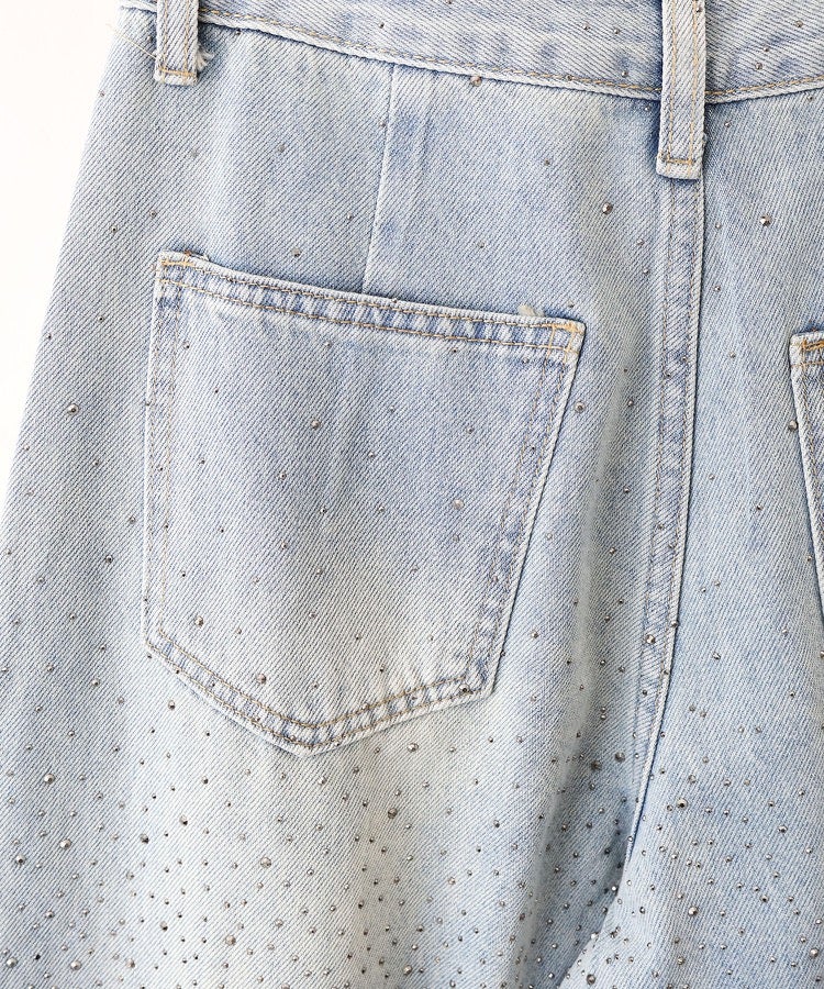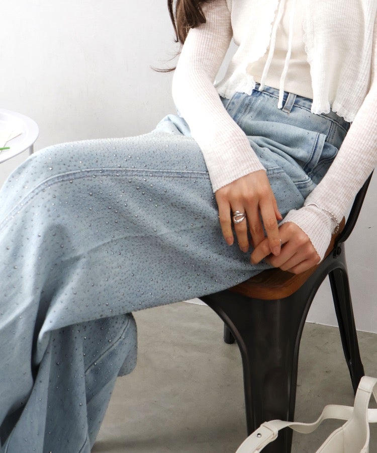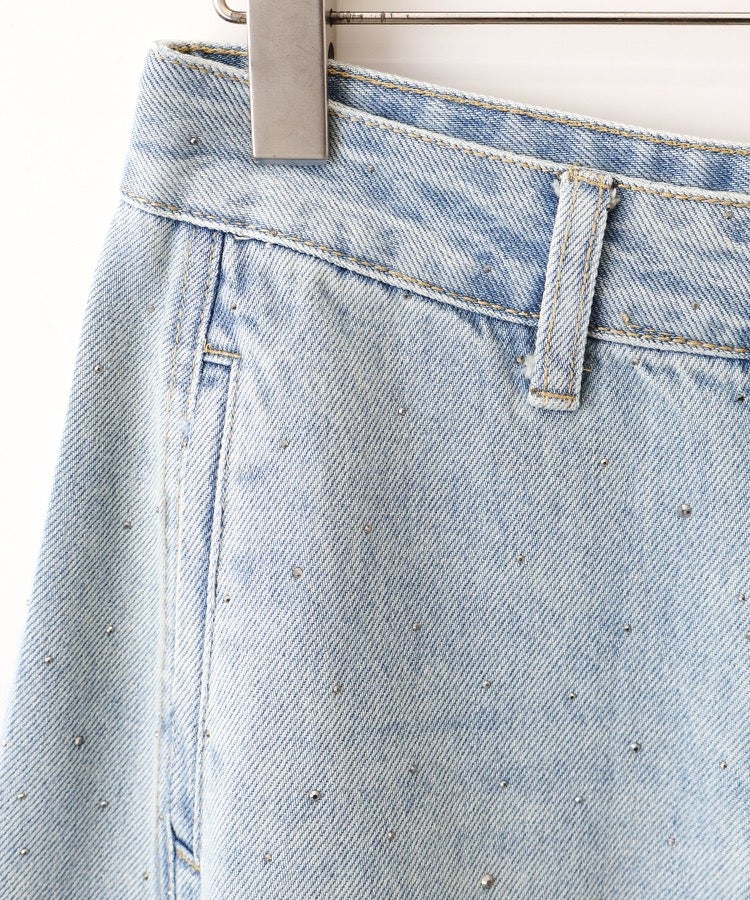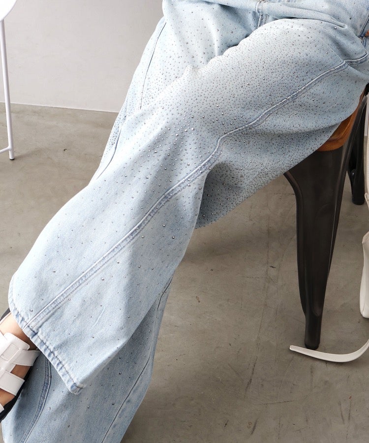 【Lサイズ、LLサイズ登場】すそフリンジデニムワイドパンツ