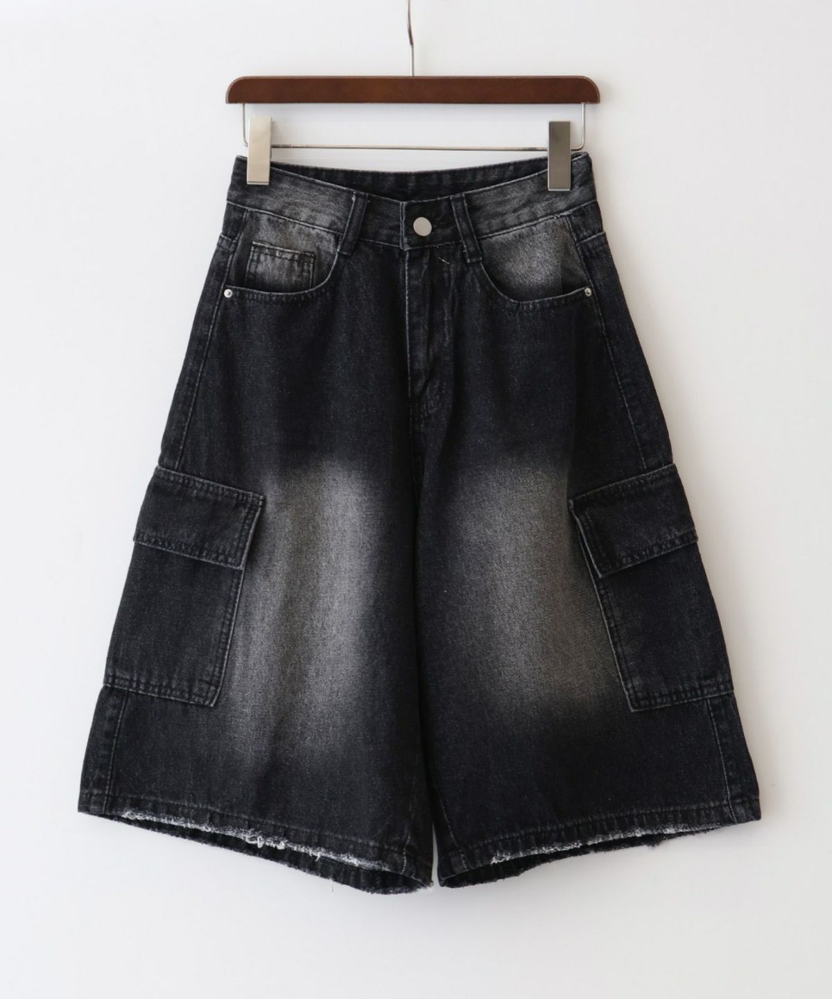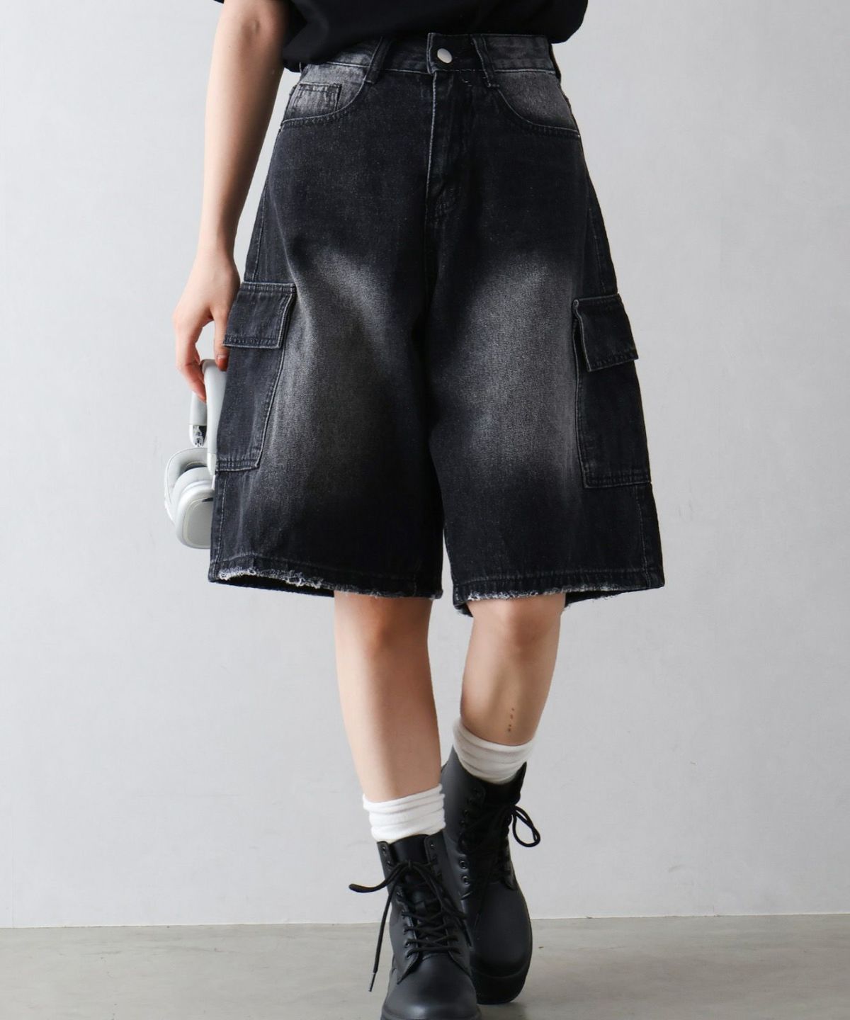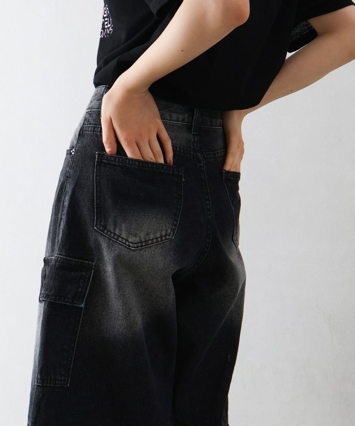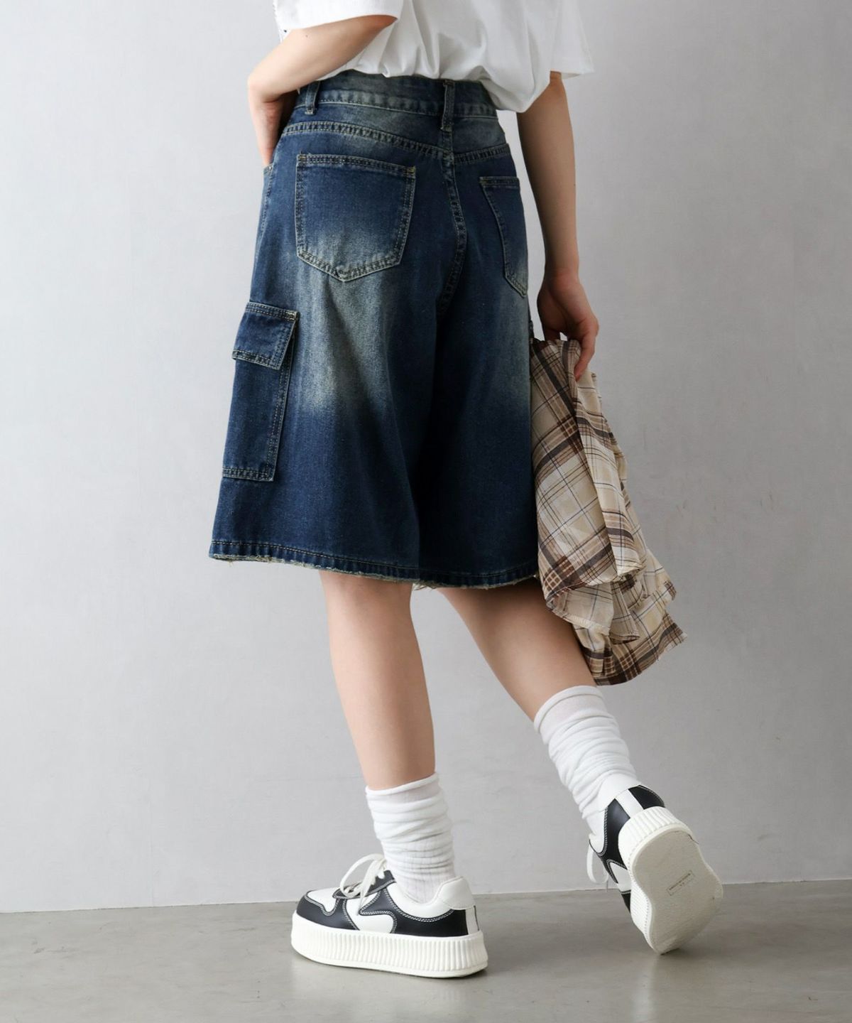 【Lサイズ、LLサイズ登場】すそフリンジデニムワイドパンツ