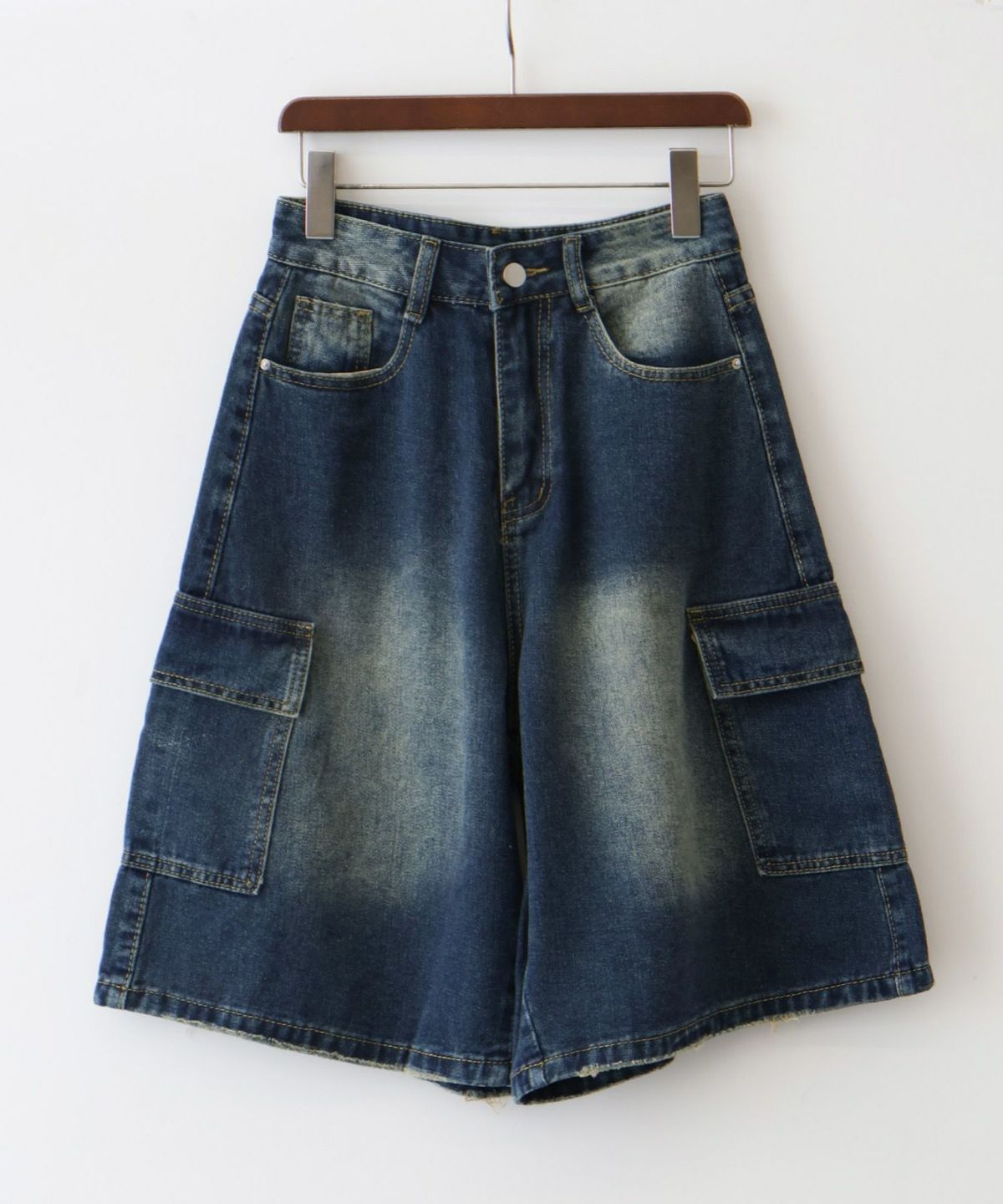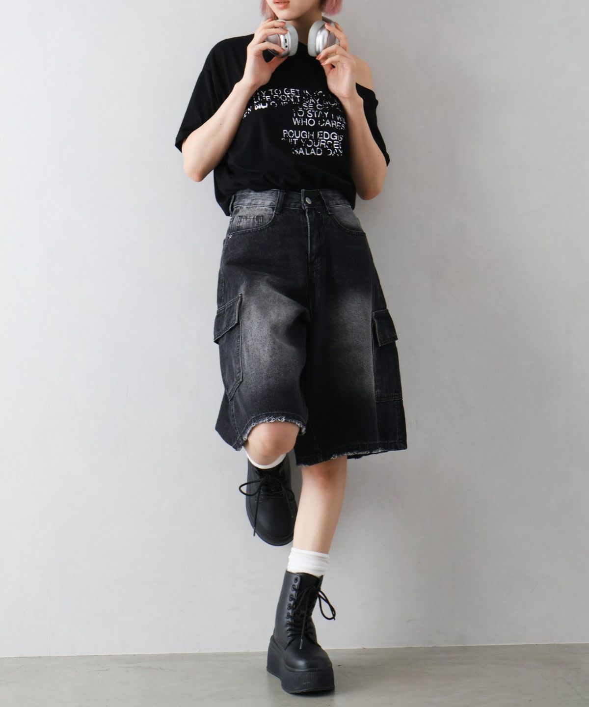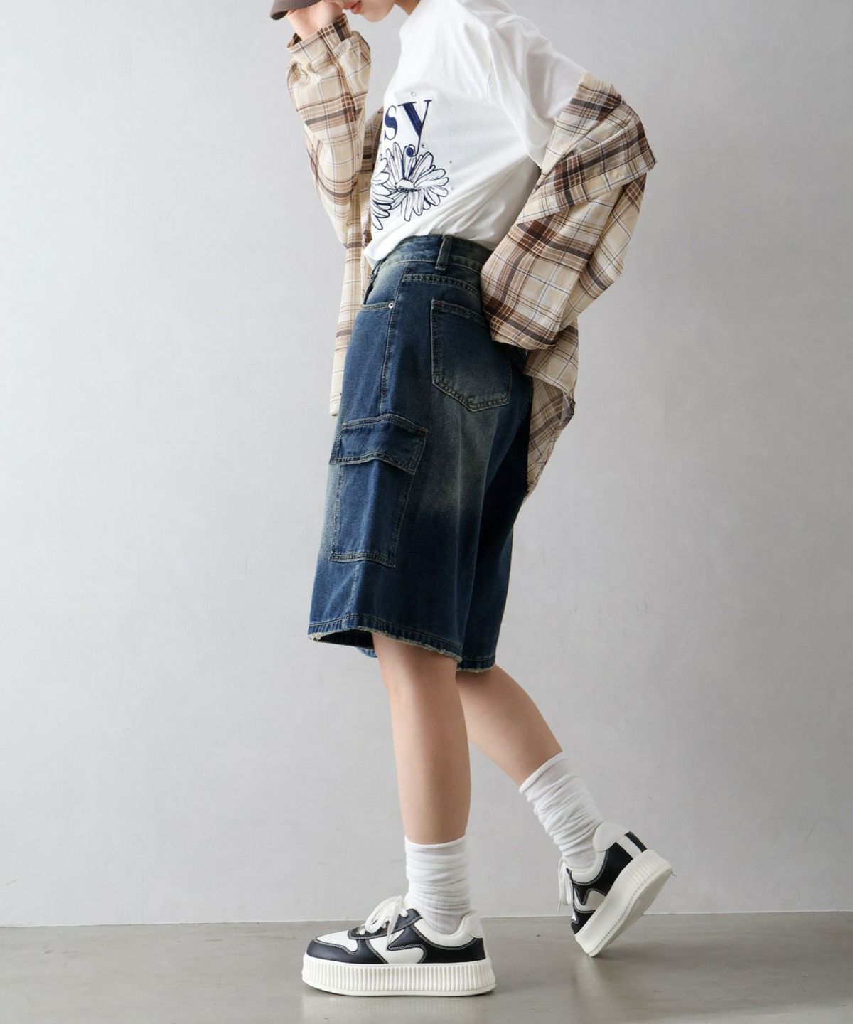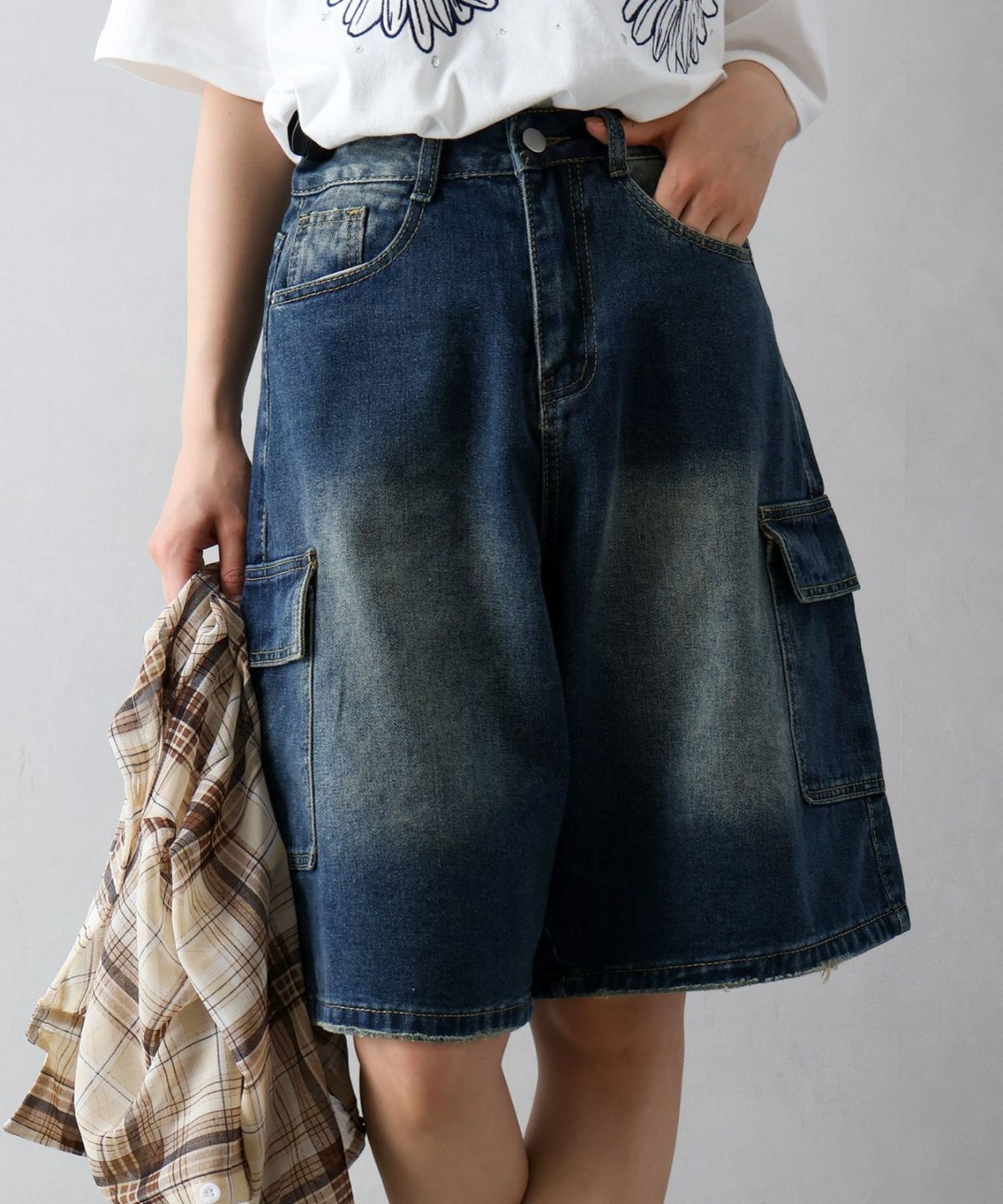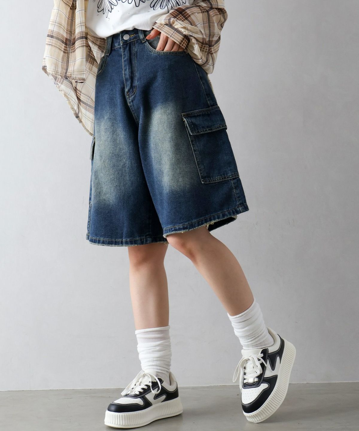 【Lサイズ、LLサイズ登場】すそフリンジデニムワイドパンツ