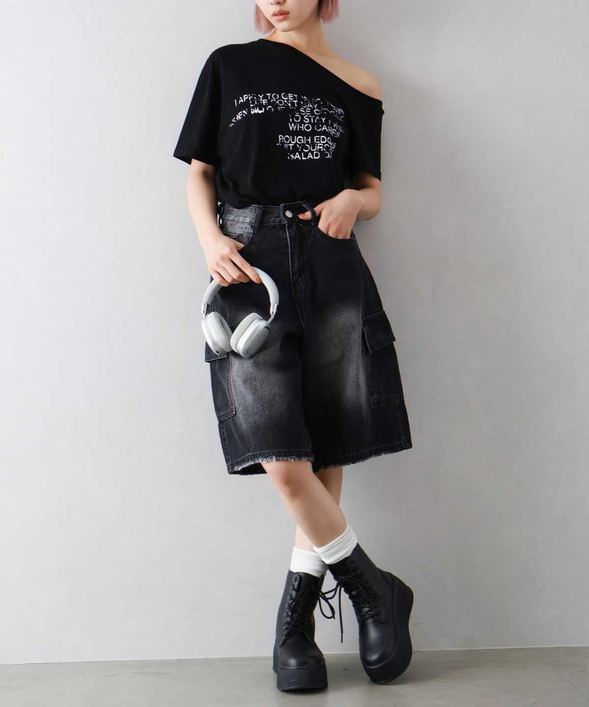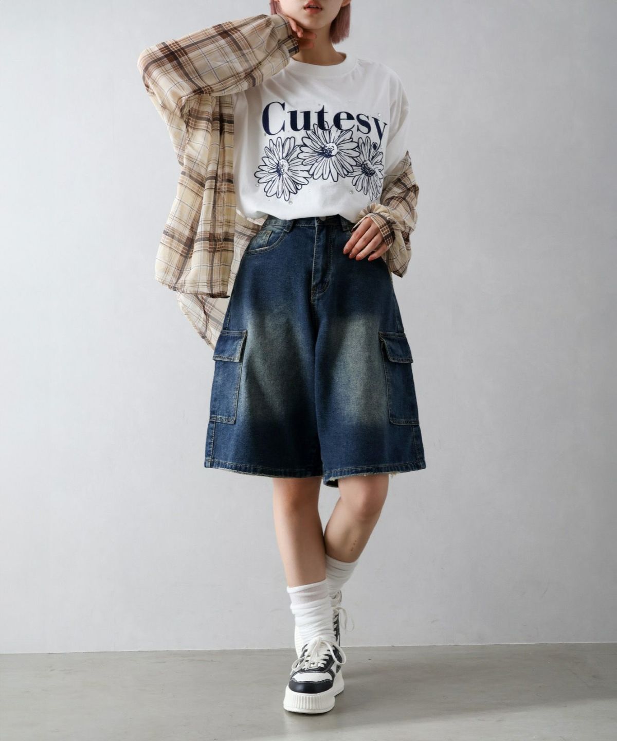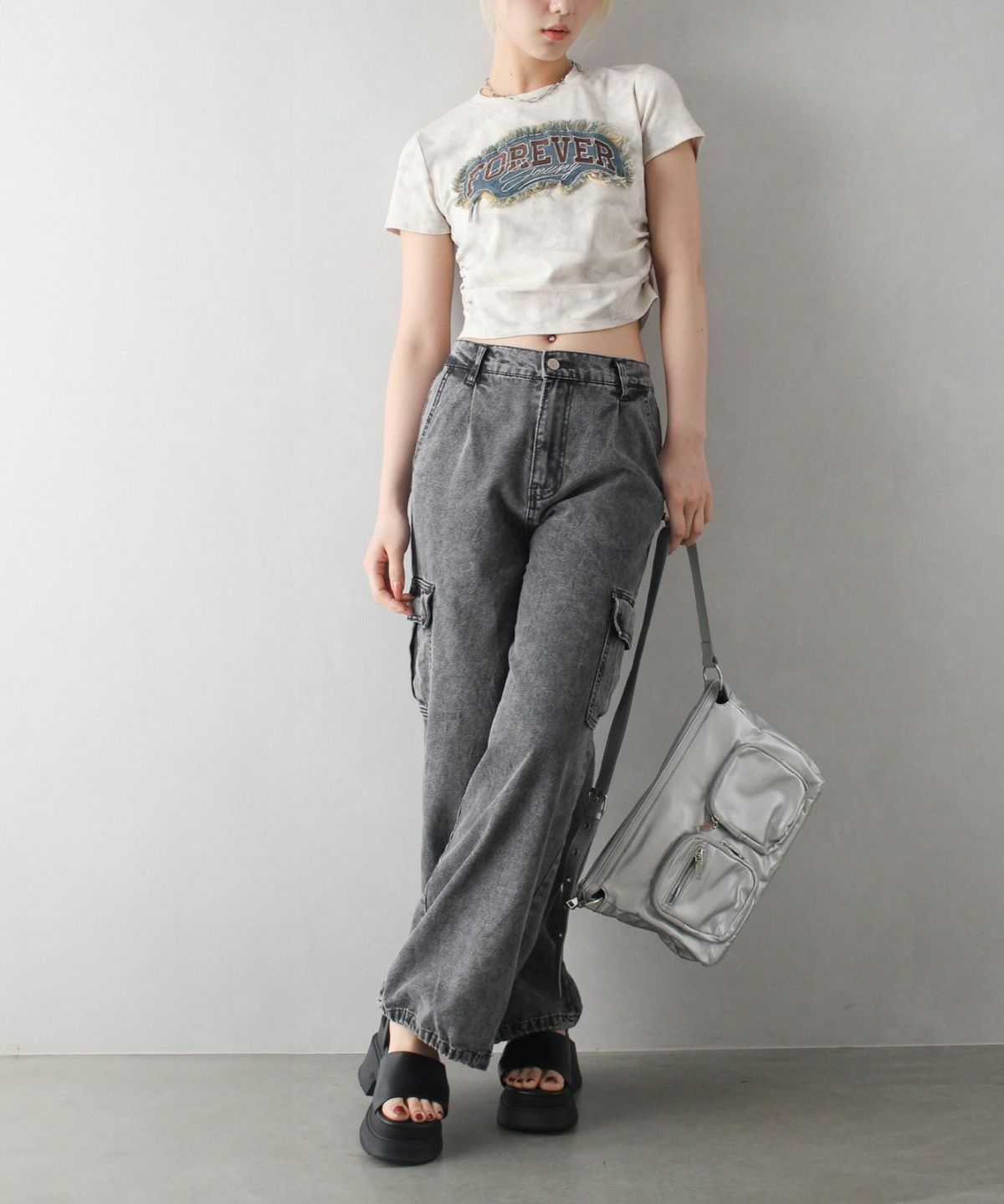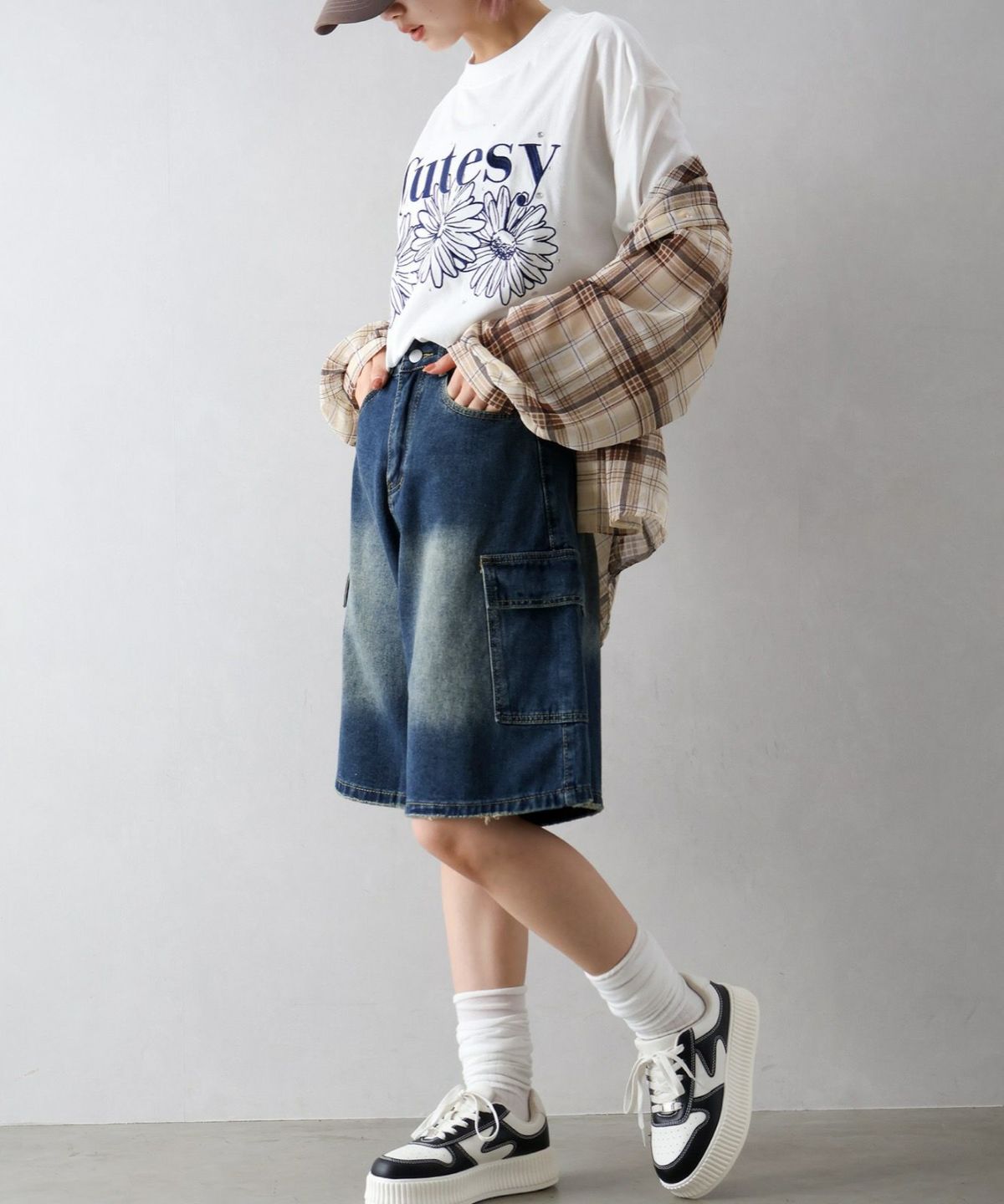 【Lサイズ、LLサイズ登場】すそフリンジデニムワイドパンツ