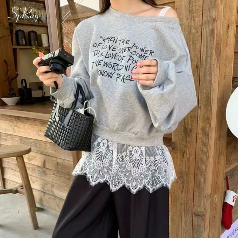 BIGスウェットにレースが肩や裾から
