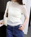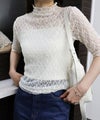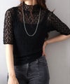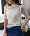 繊細な総レースが上品な5分袖トップスは、実は前後どちらでも着用可能な2way仕様!