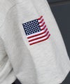 袖には星条旗のワッペンがあしらわれ、細部までこだわったアメカジテイストな一着です。