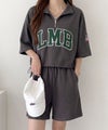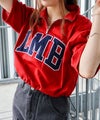 フロントに施された貼り付けロゴが、クラシックなスポーツMIXスタイルを演出するハーフジップトップス。