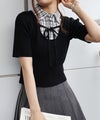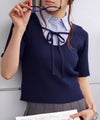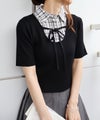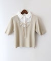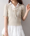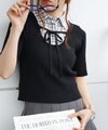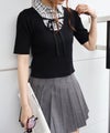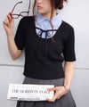 シャツをレイヤードしたようなデザインが1枚で完成する、ドッキング;ニットトップスです。