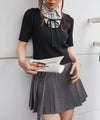 フロントにあしらわれたレースアップのリボンが、胸元にフェミニンなアクセントをプラスします。