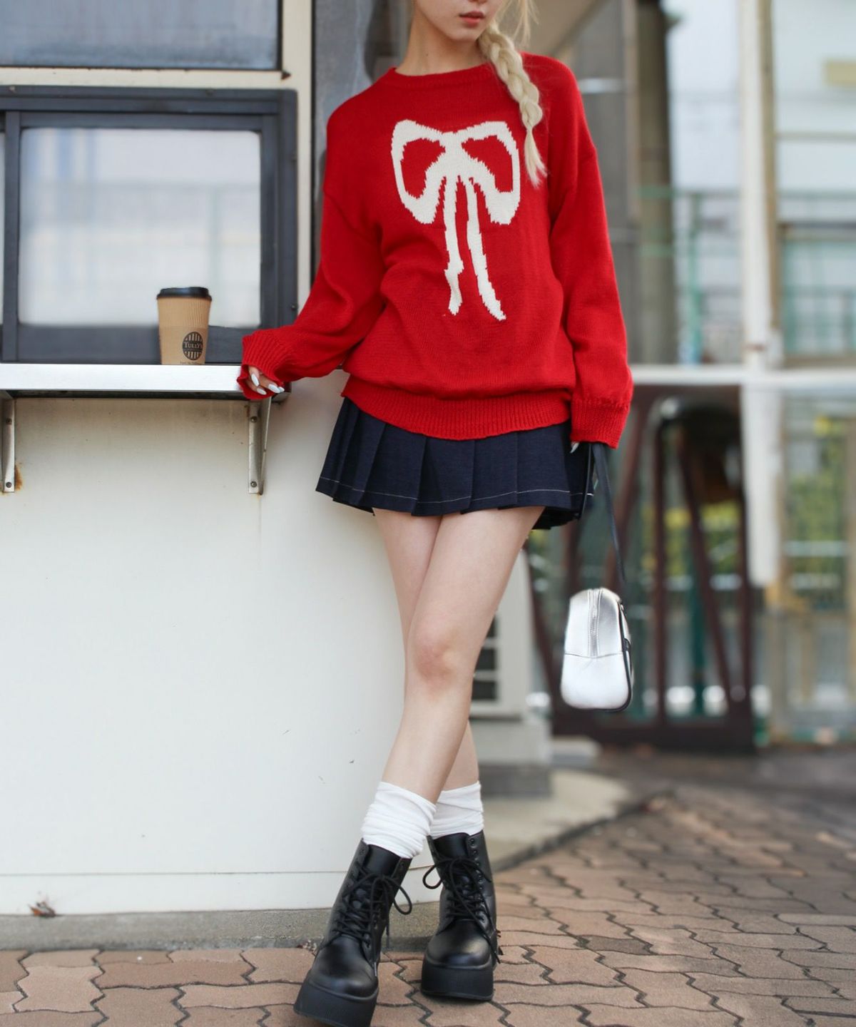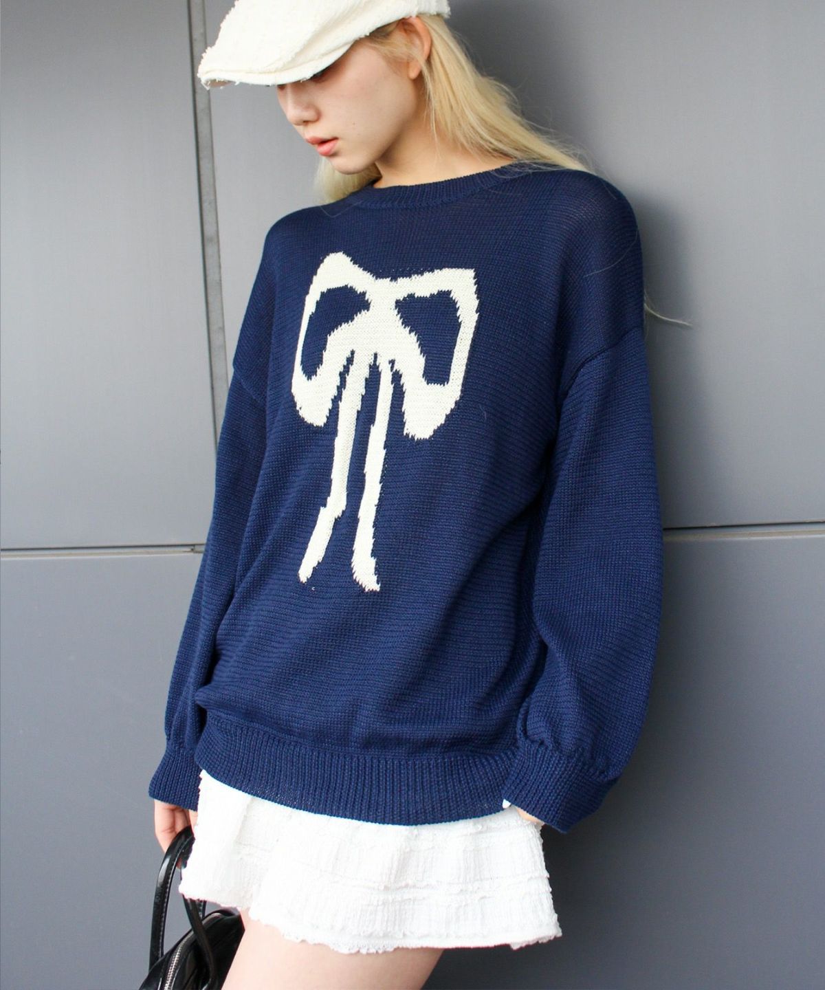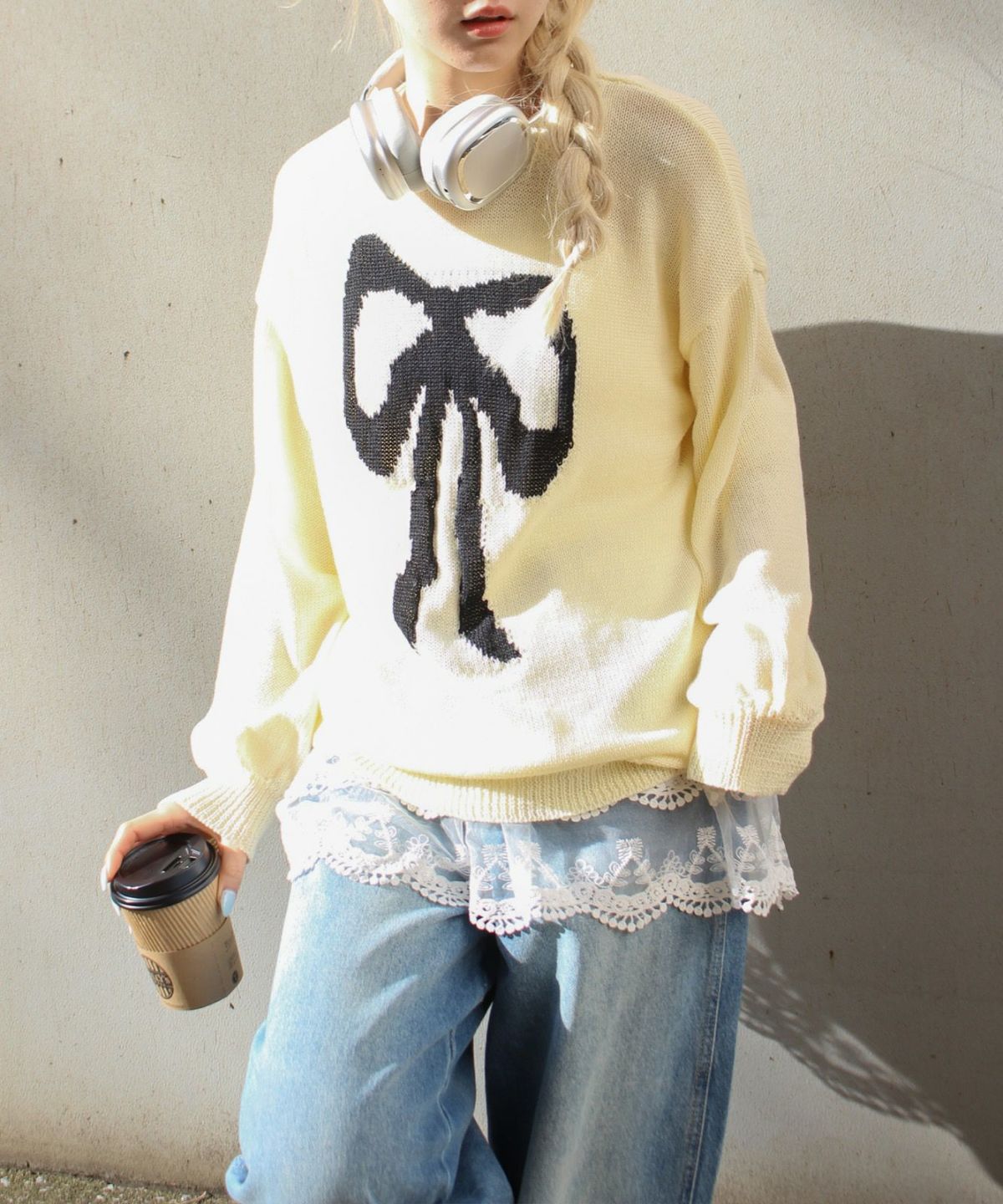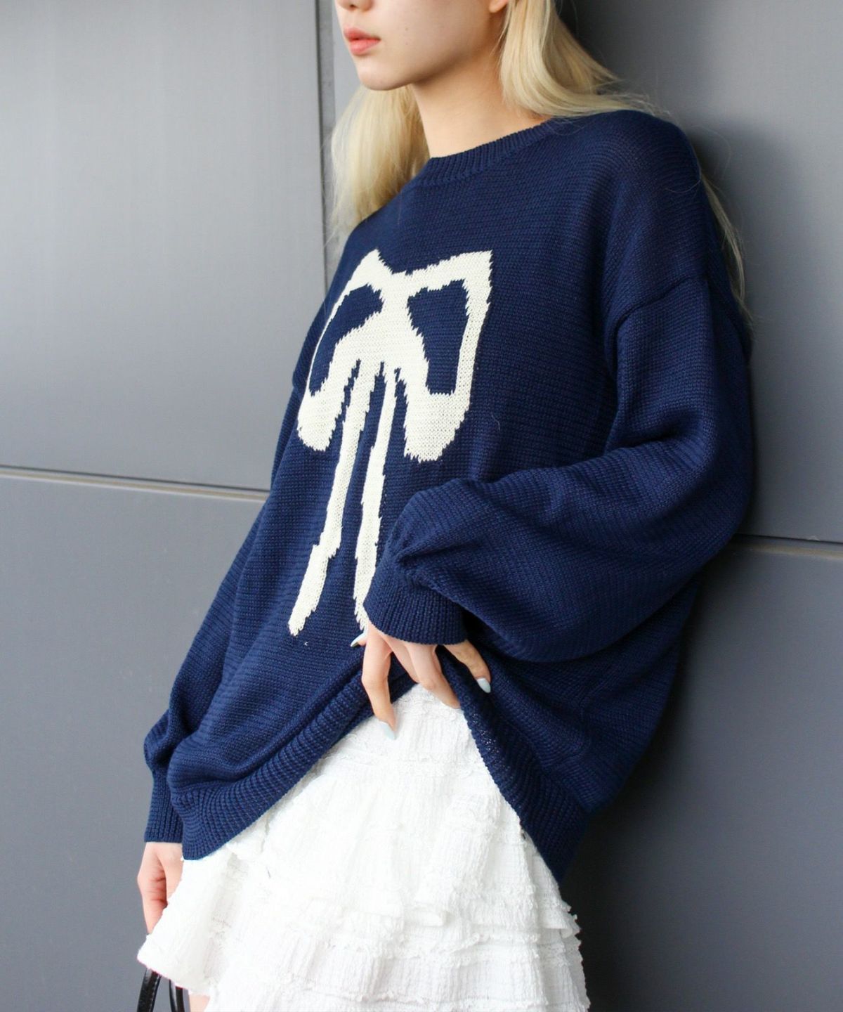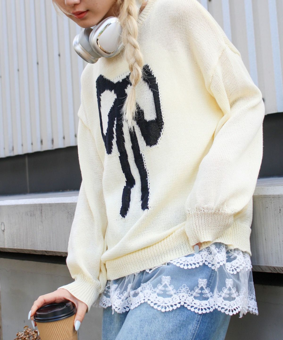 リボンジャガードニット