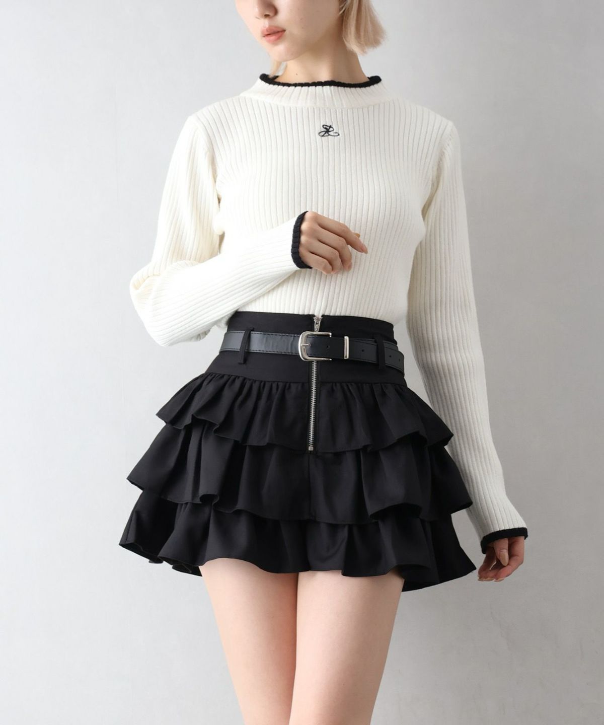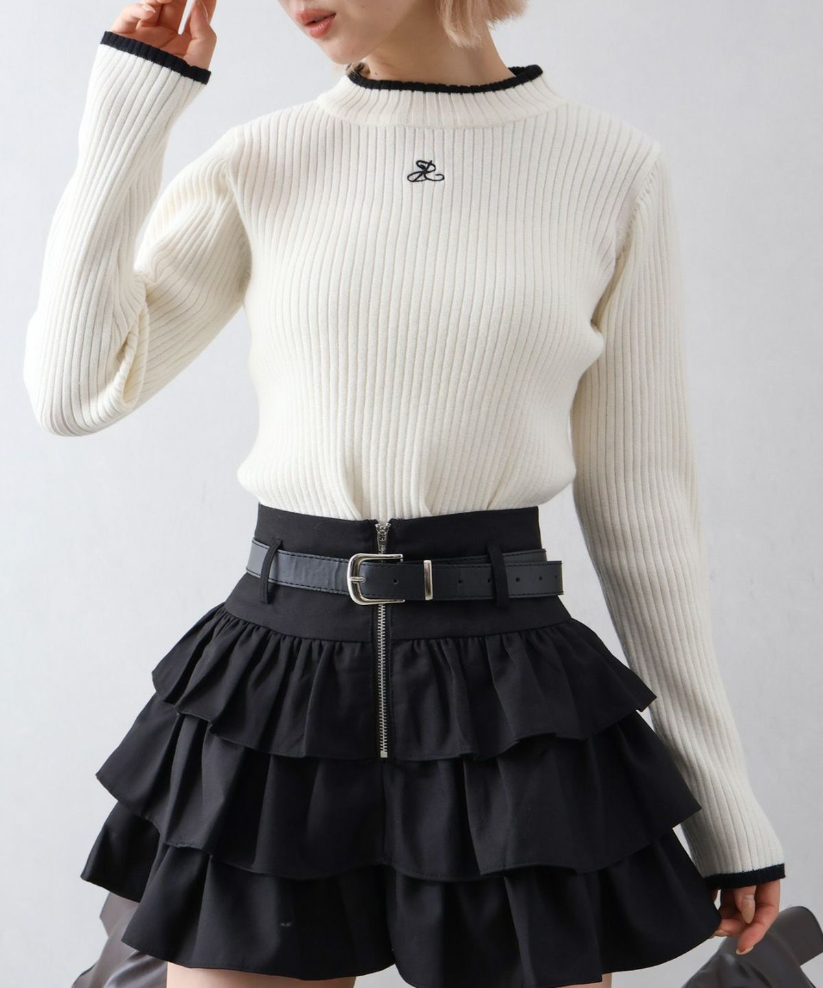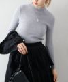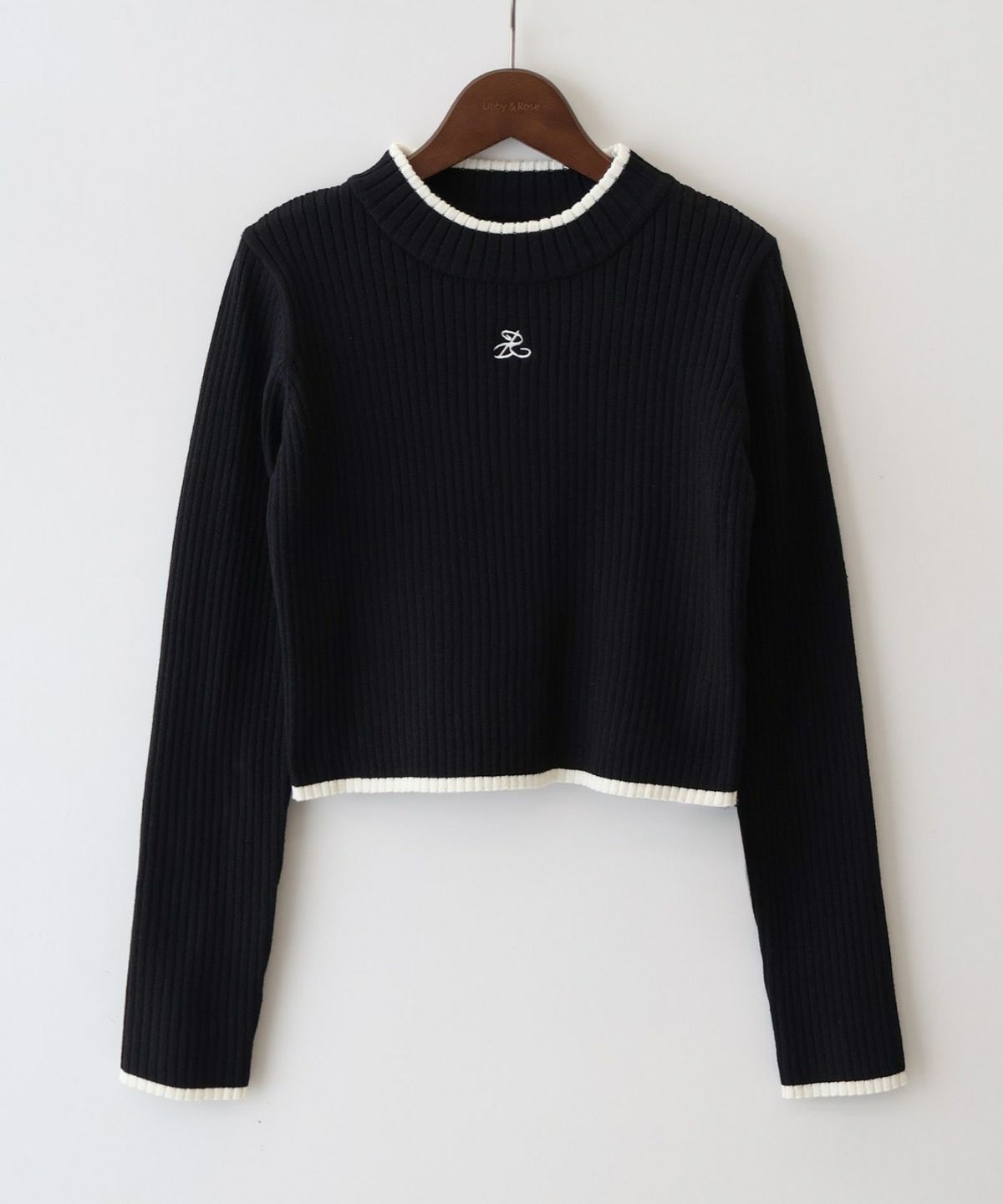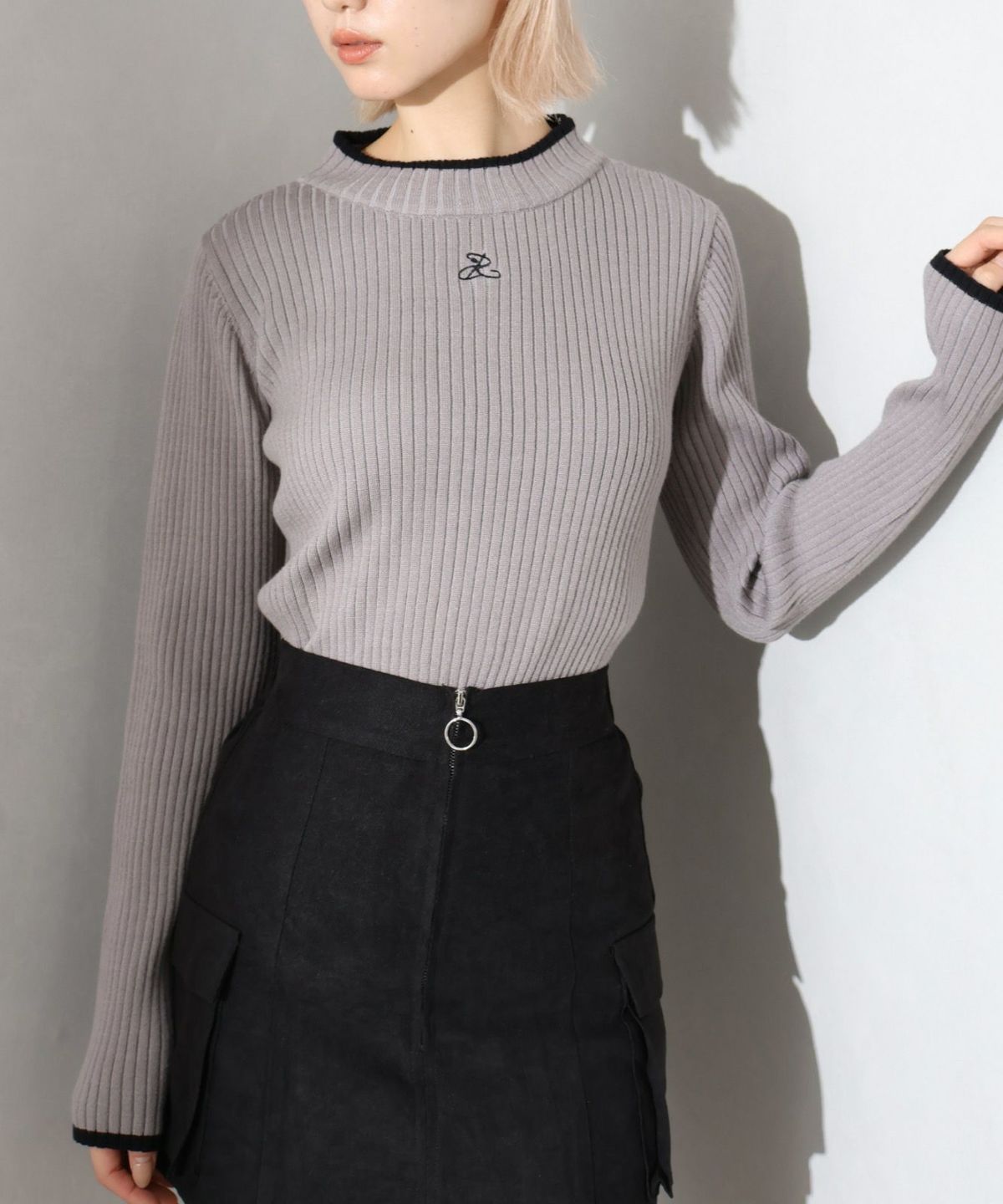 バイカラーリブ刺繍プチハイネックニット