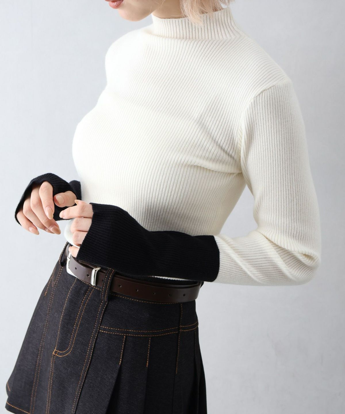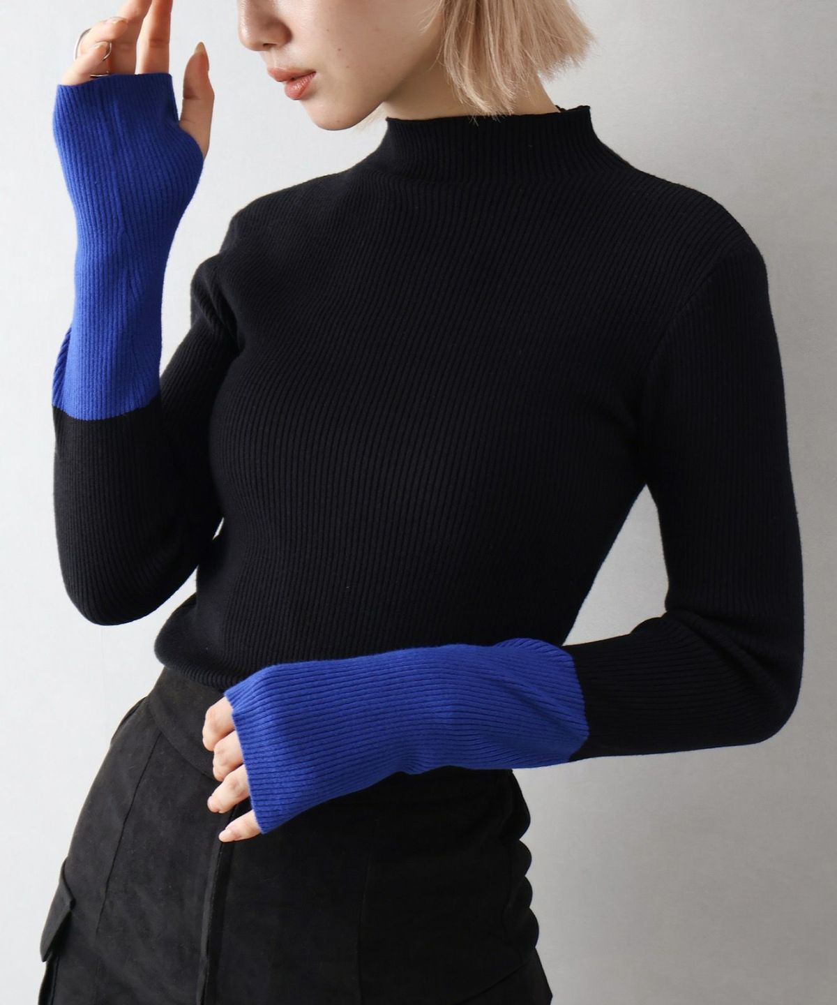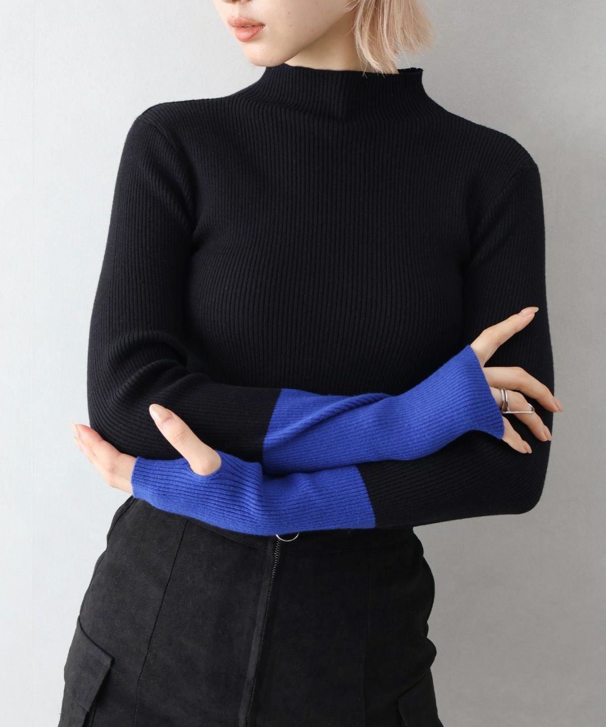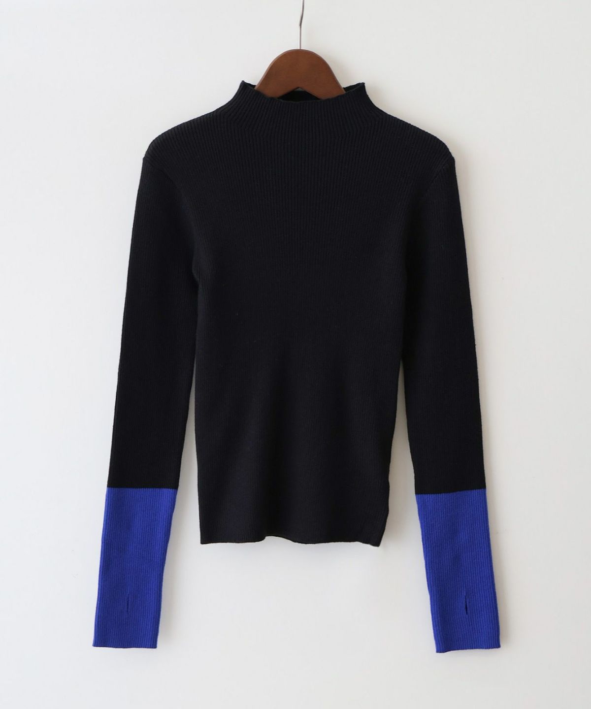 リブバイカラーハイネックニット