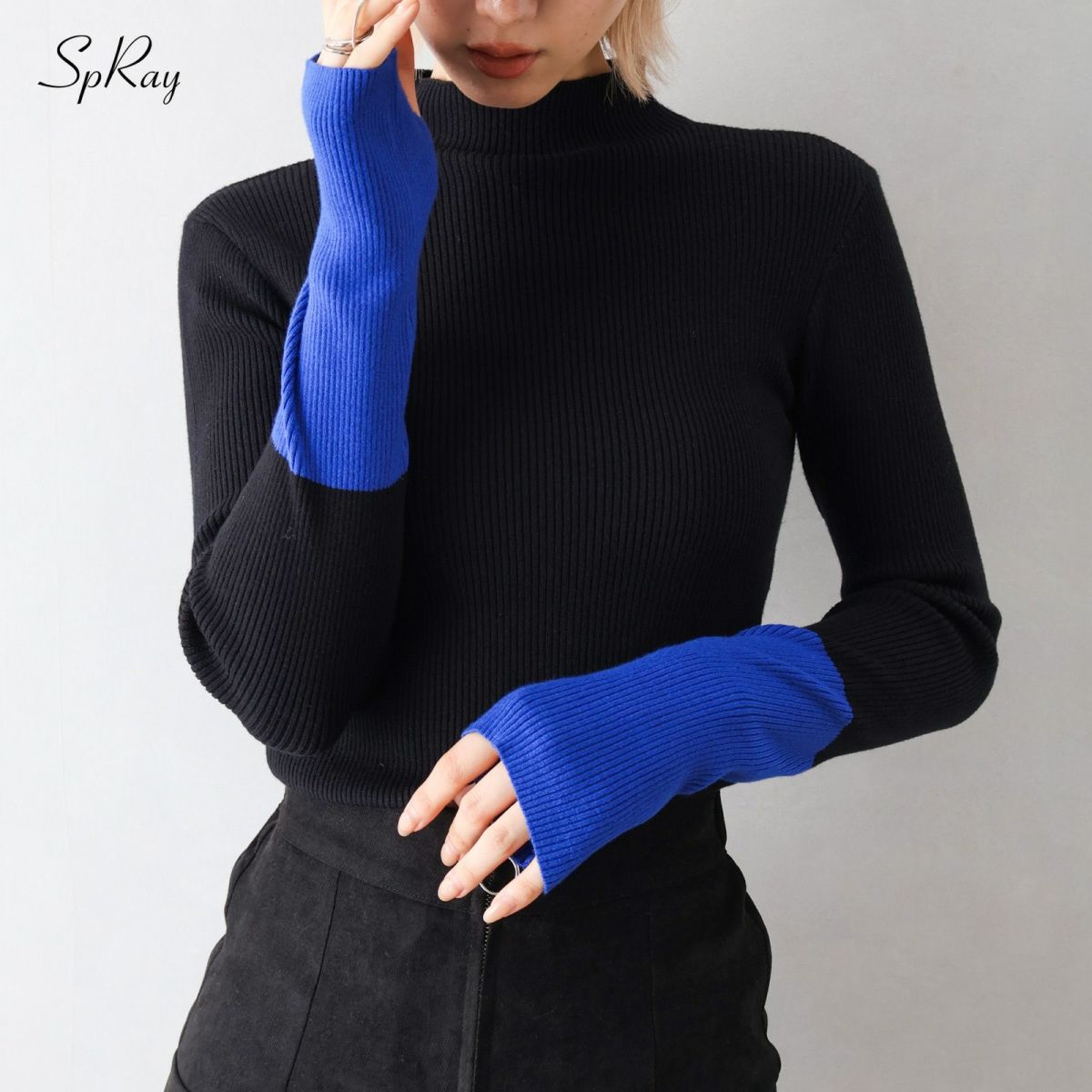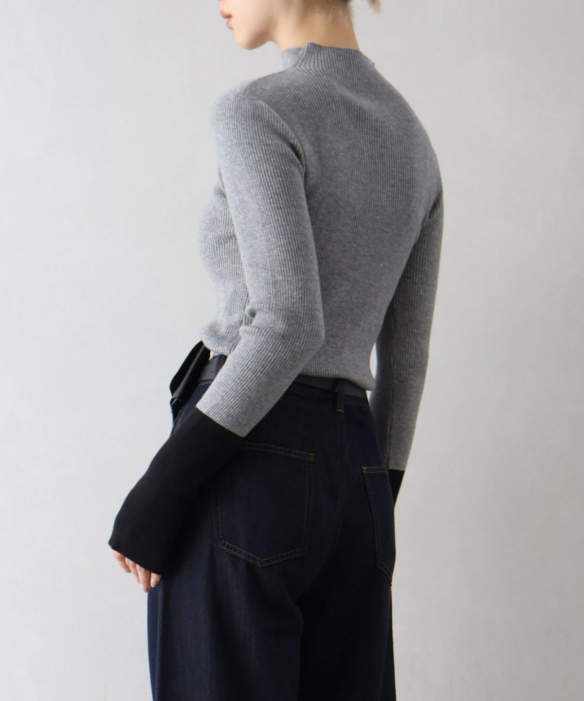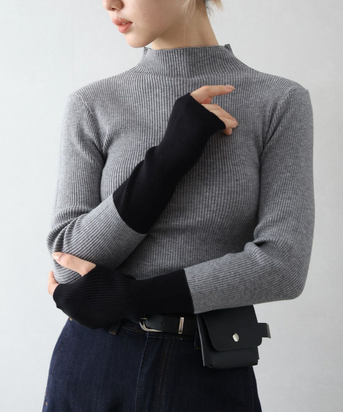 リブバイカラーハイネックニット