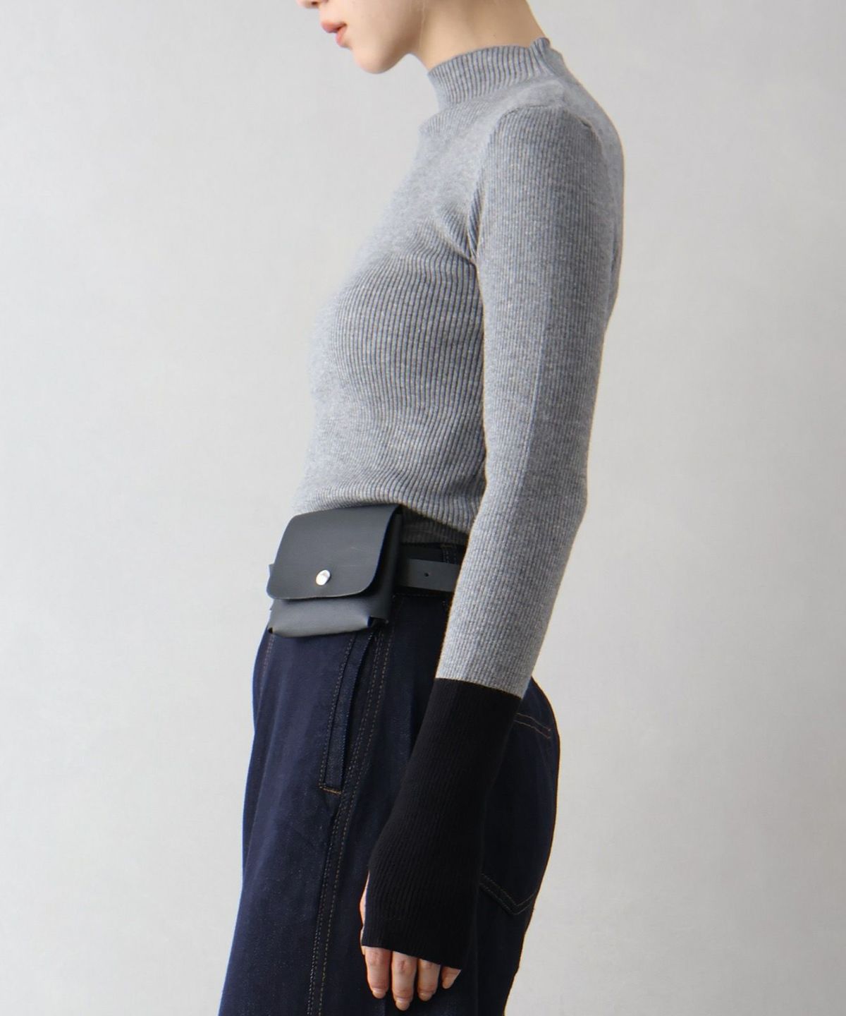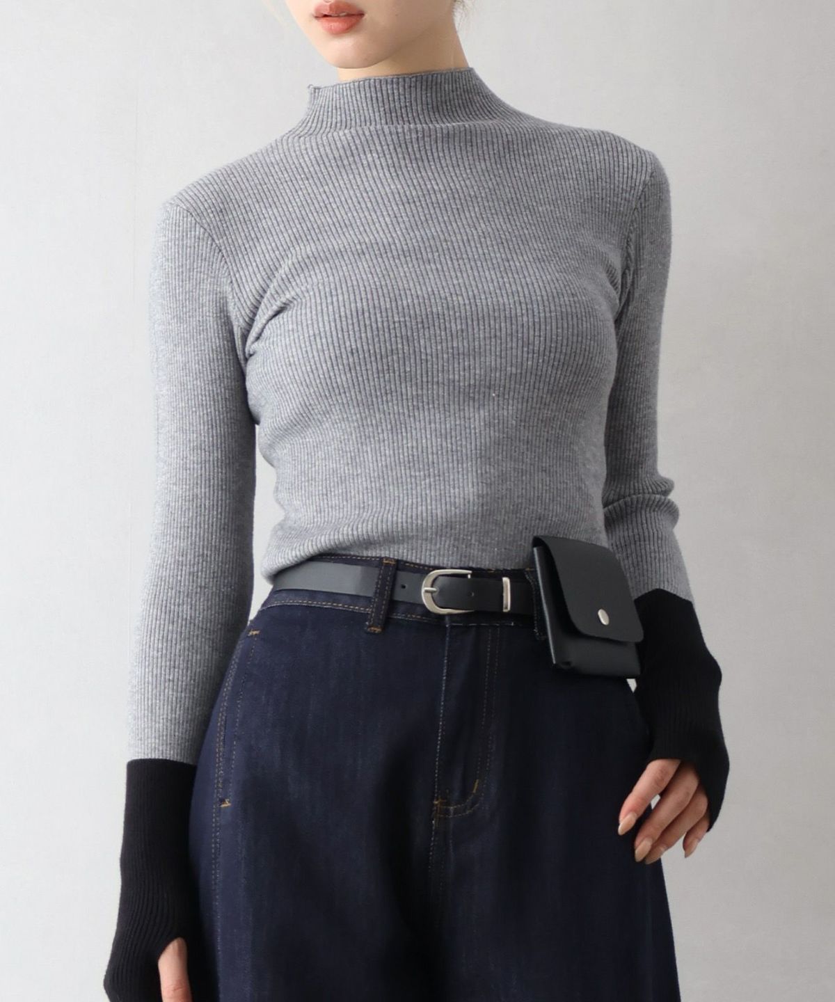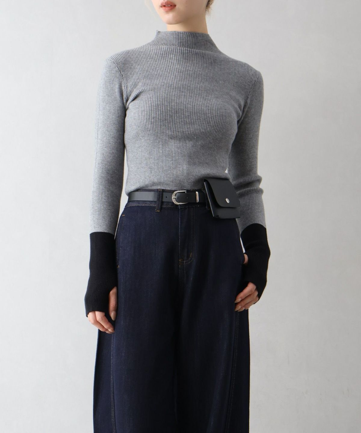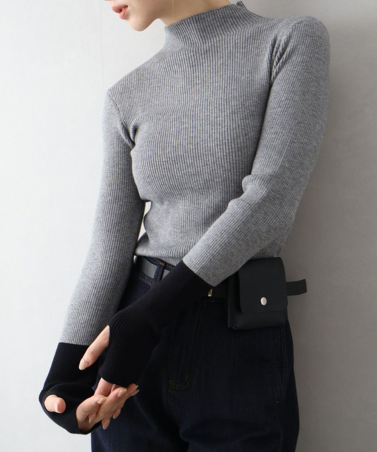 リブバイカラーハイネックニット