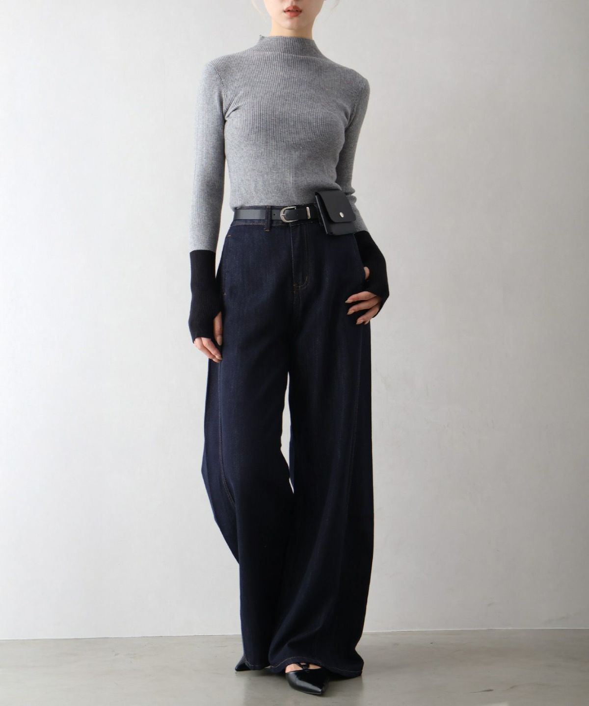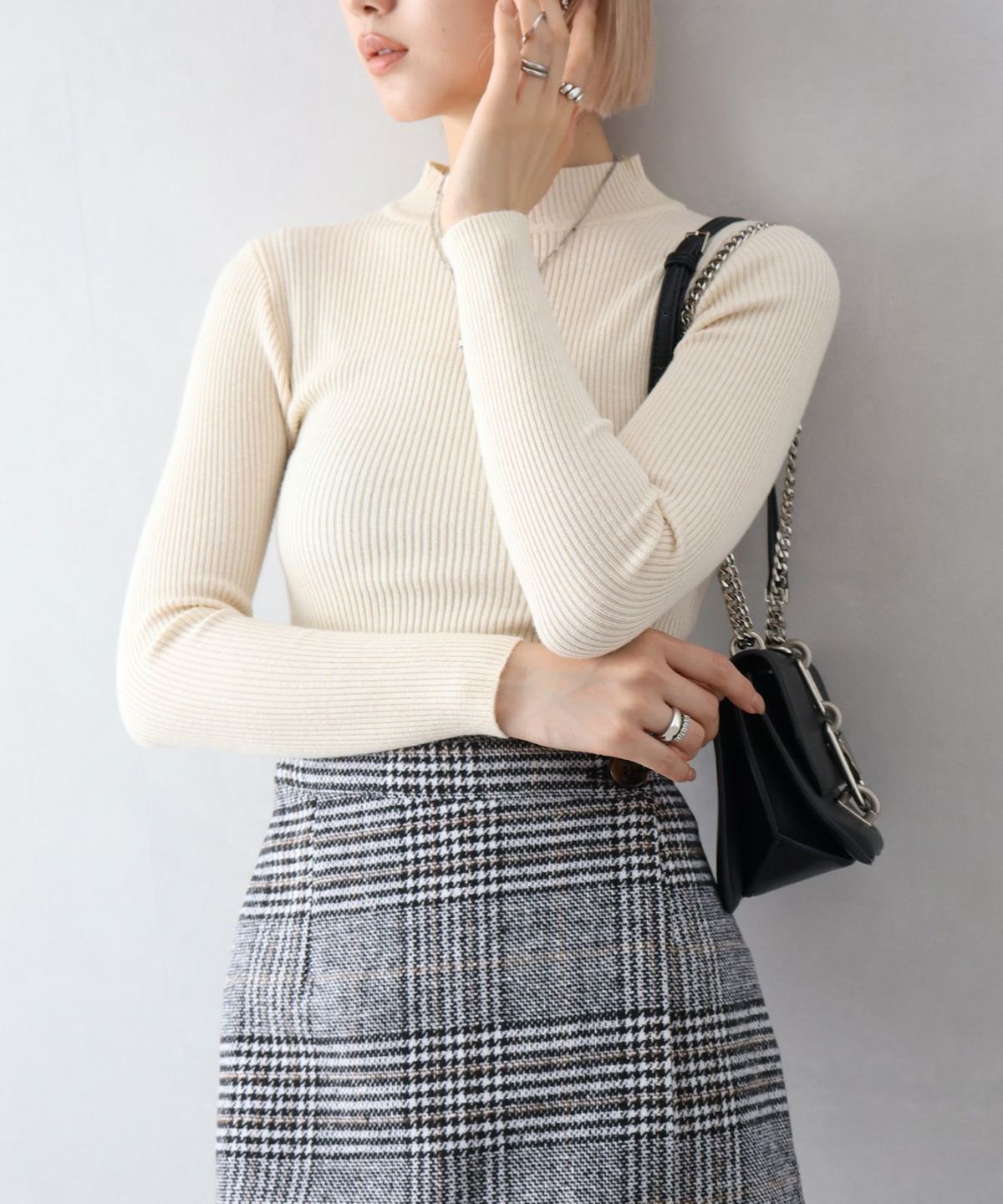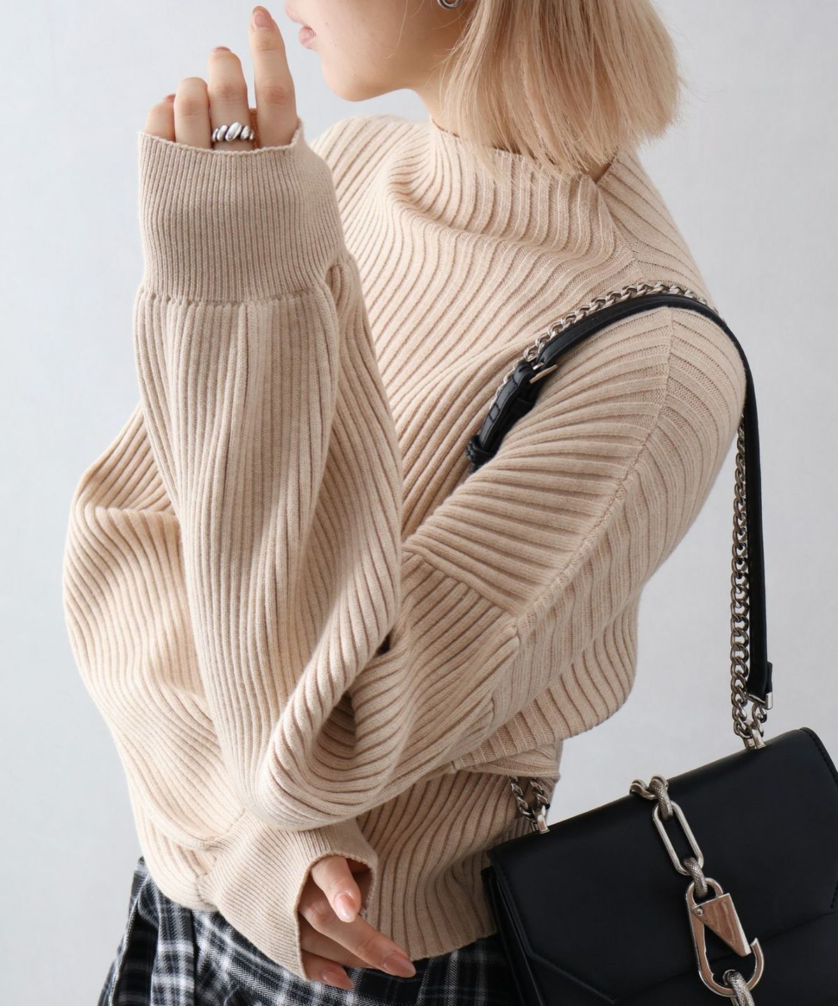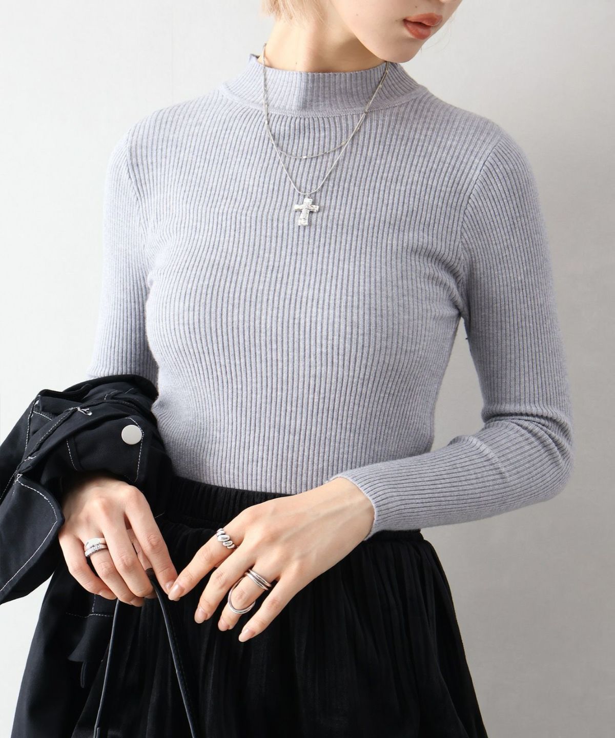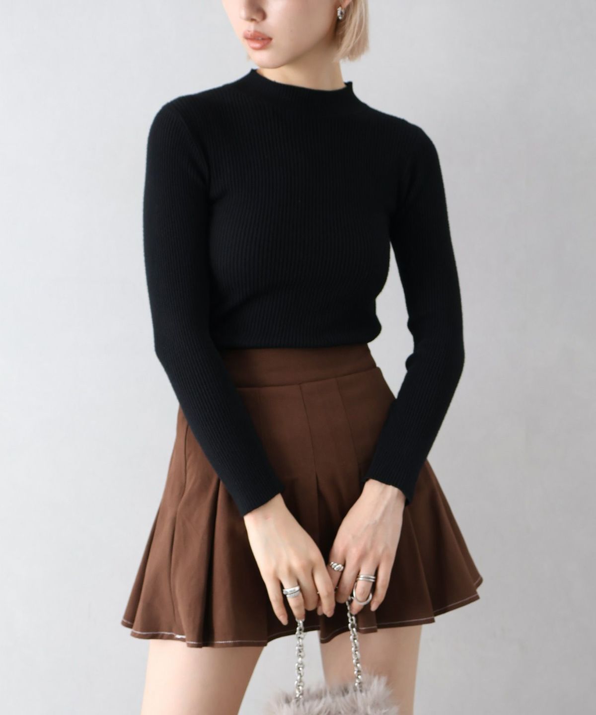 リブプチハイネックニット
