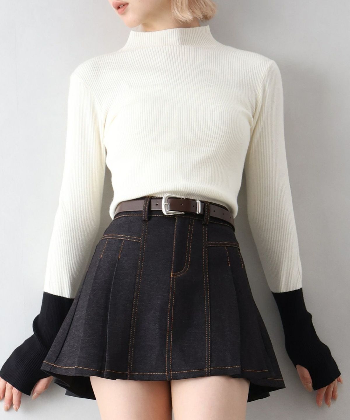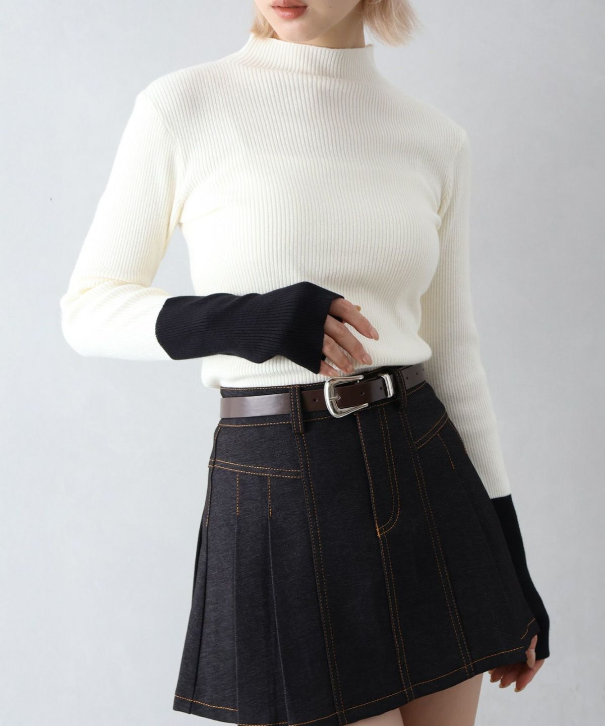 ベルト付きMIXオフタートル