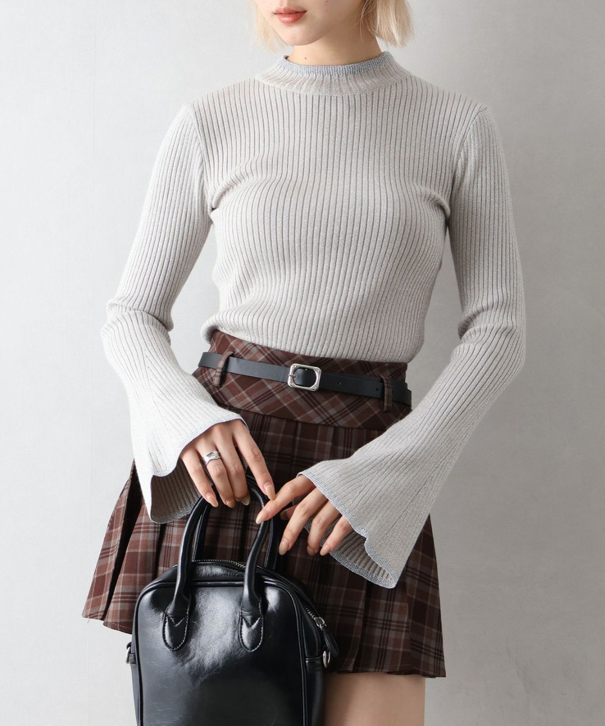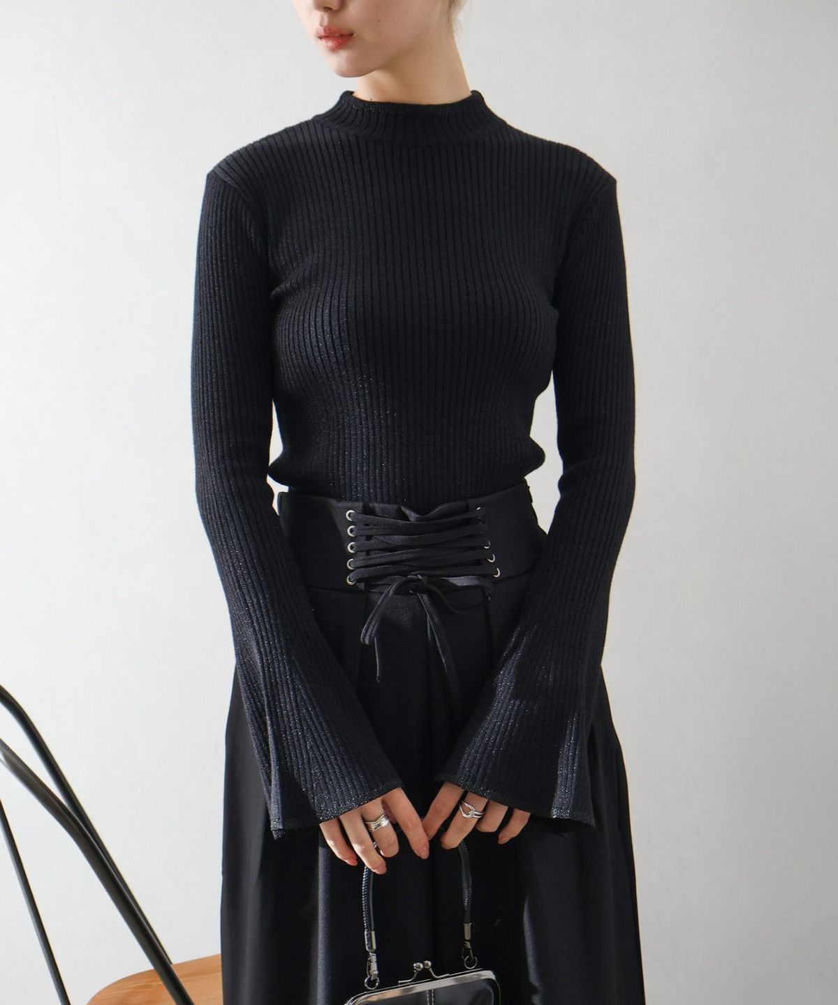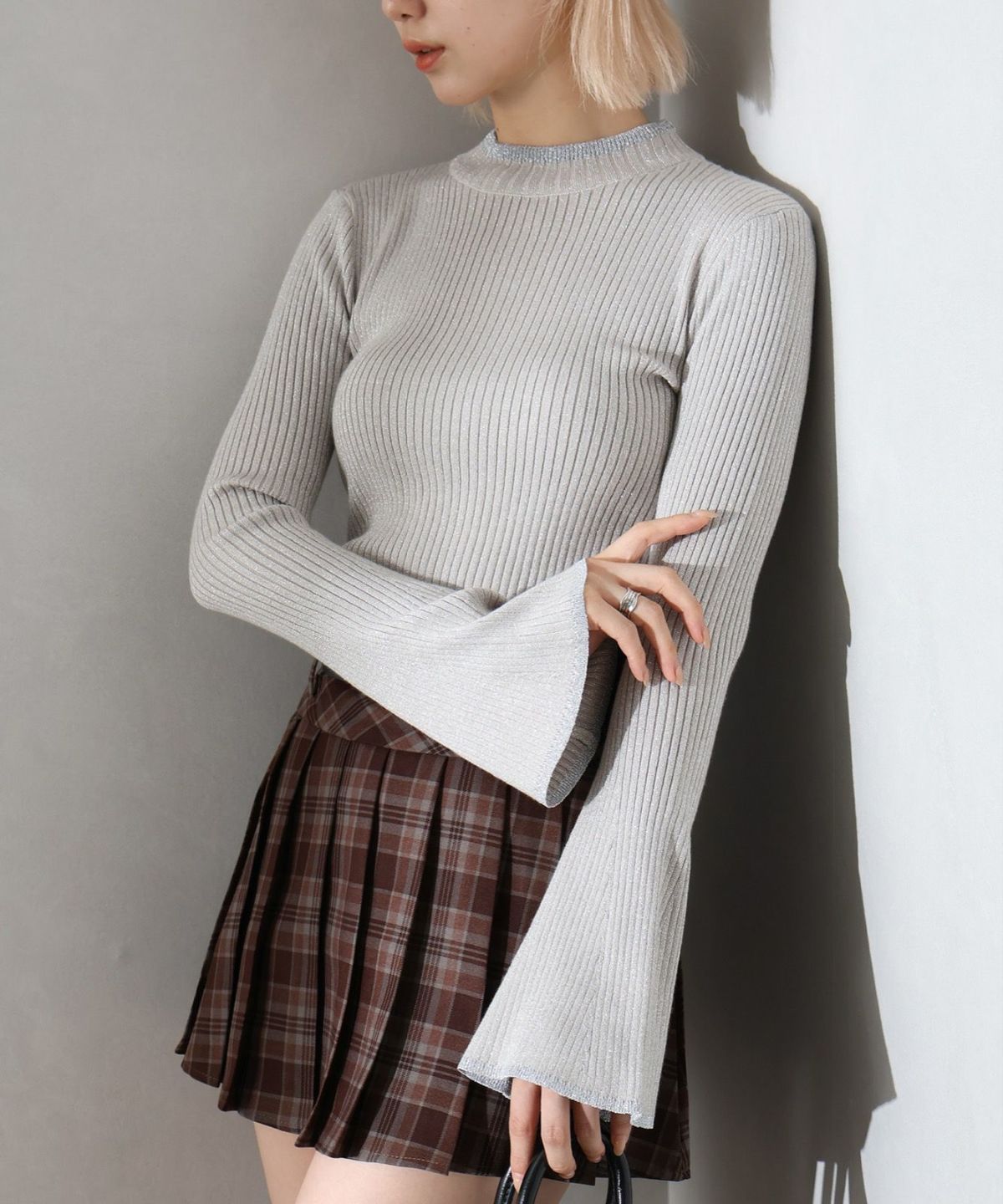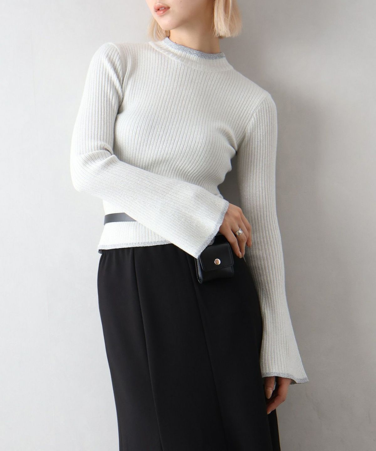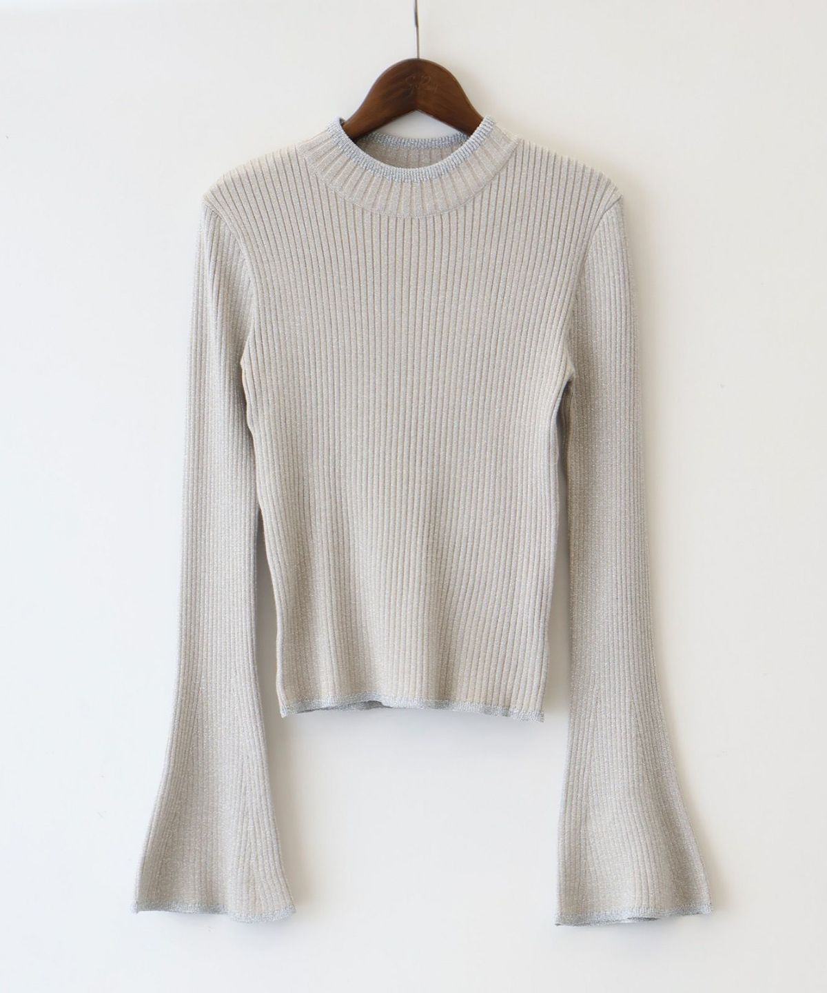 ラメフレアスリーブハイネックニット