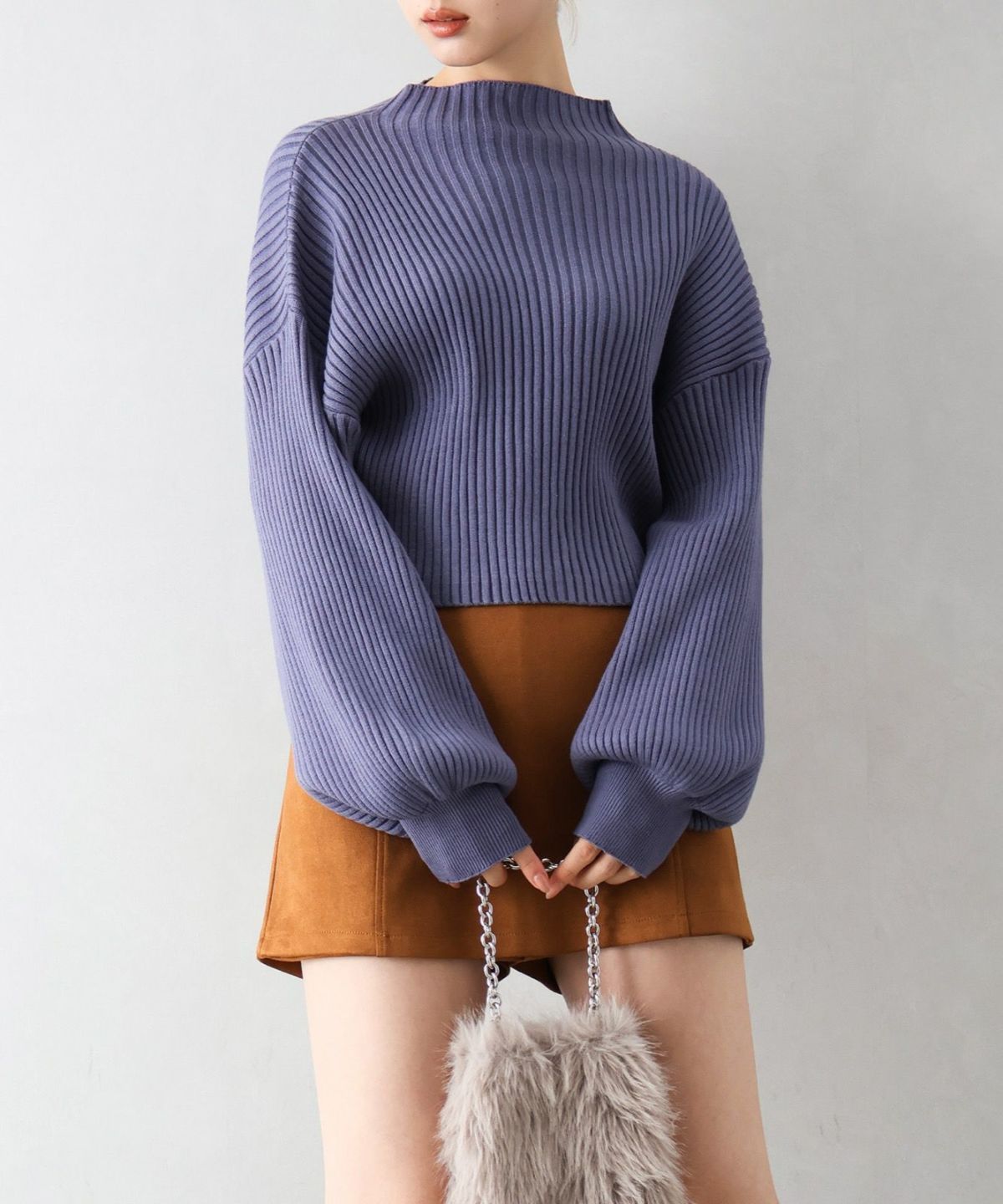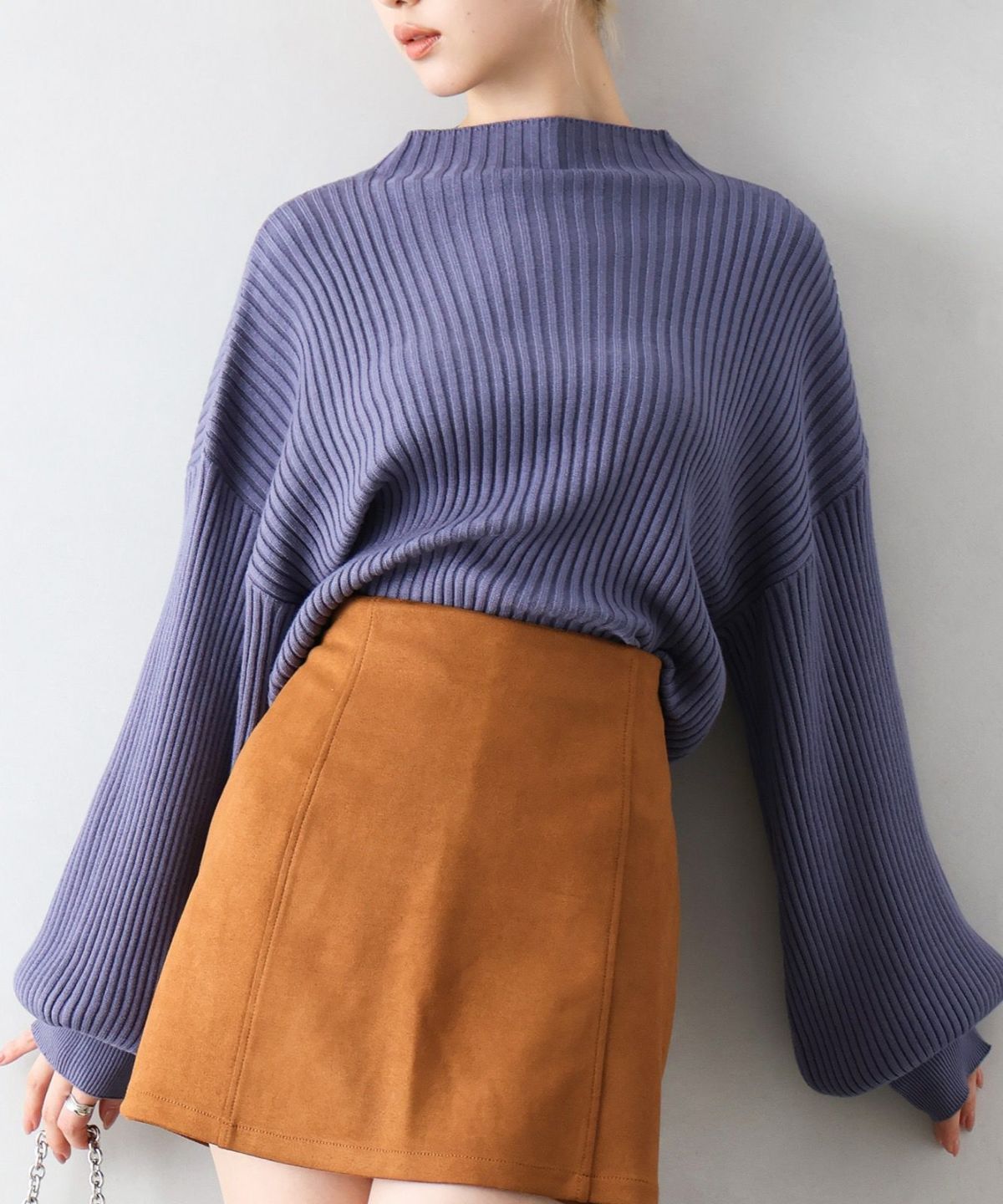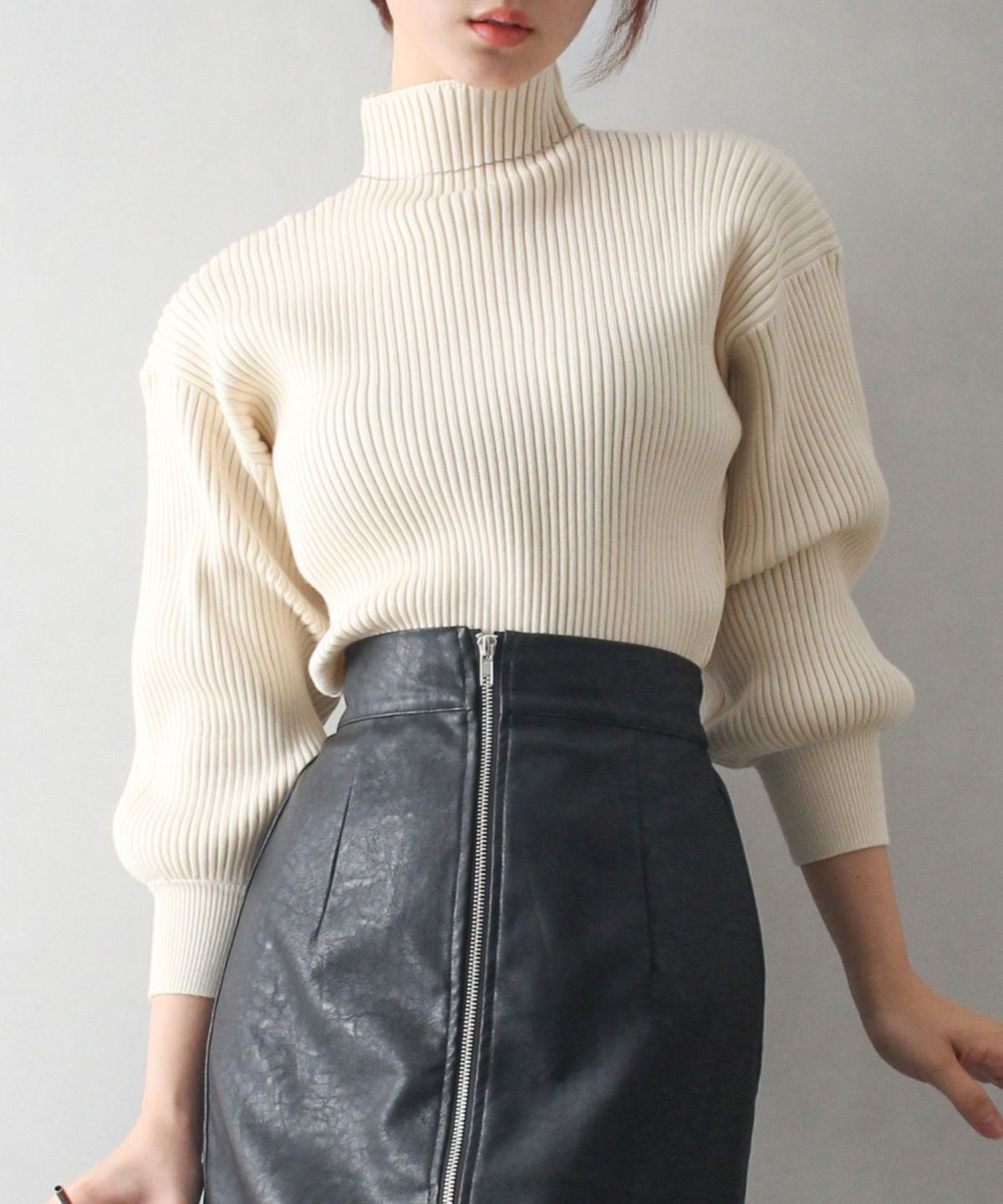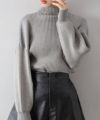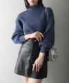 ボリューム袖ボトルネックニット