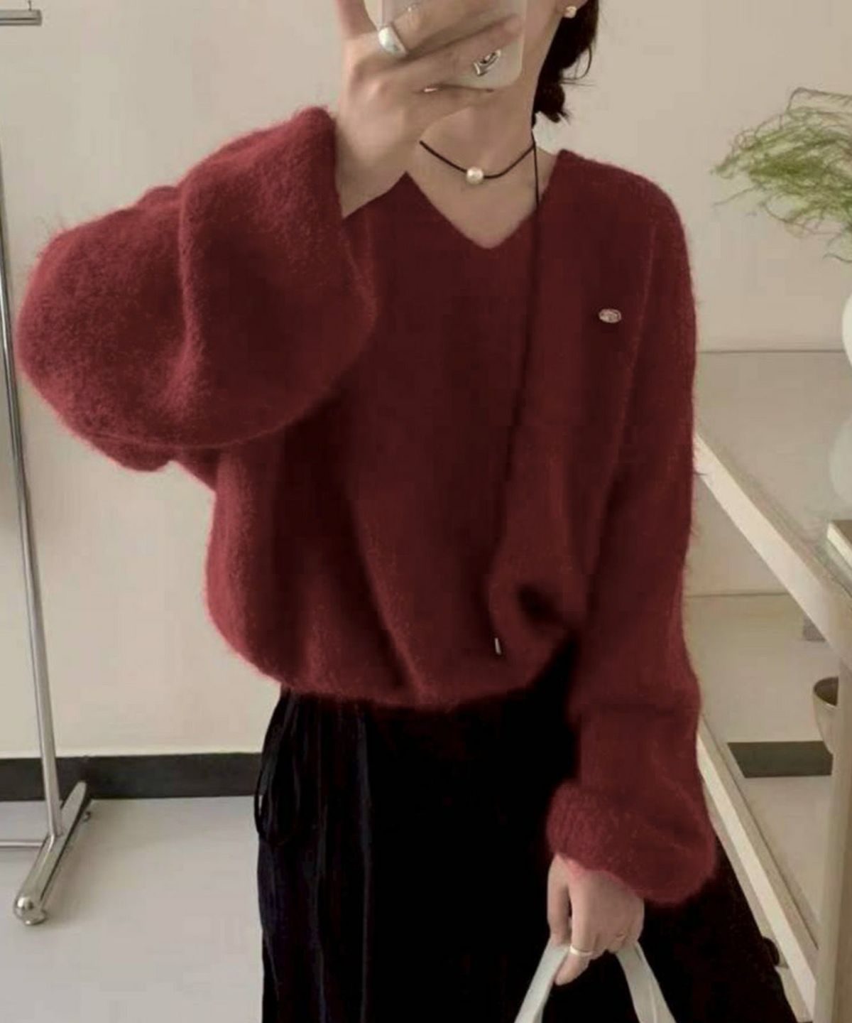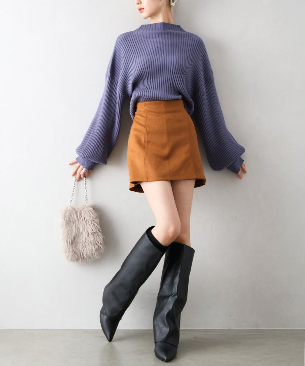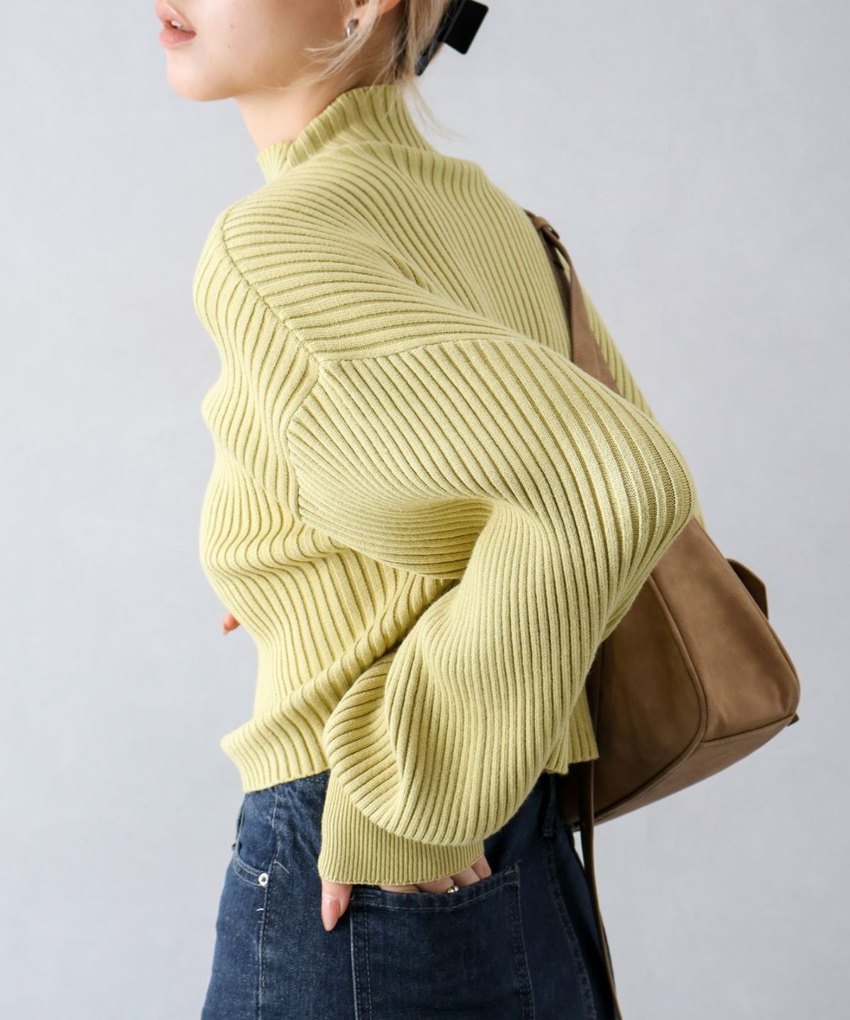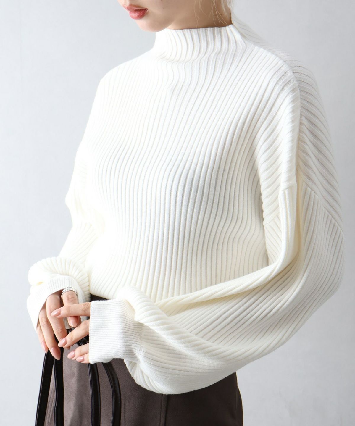 ボリューム袖ボトルネックニット