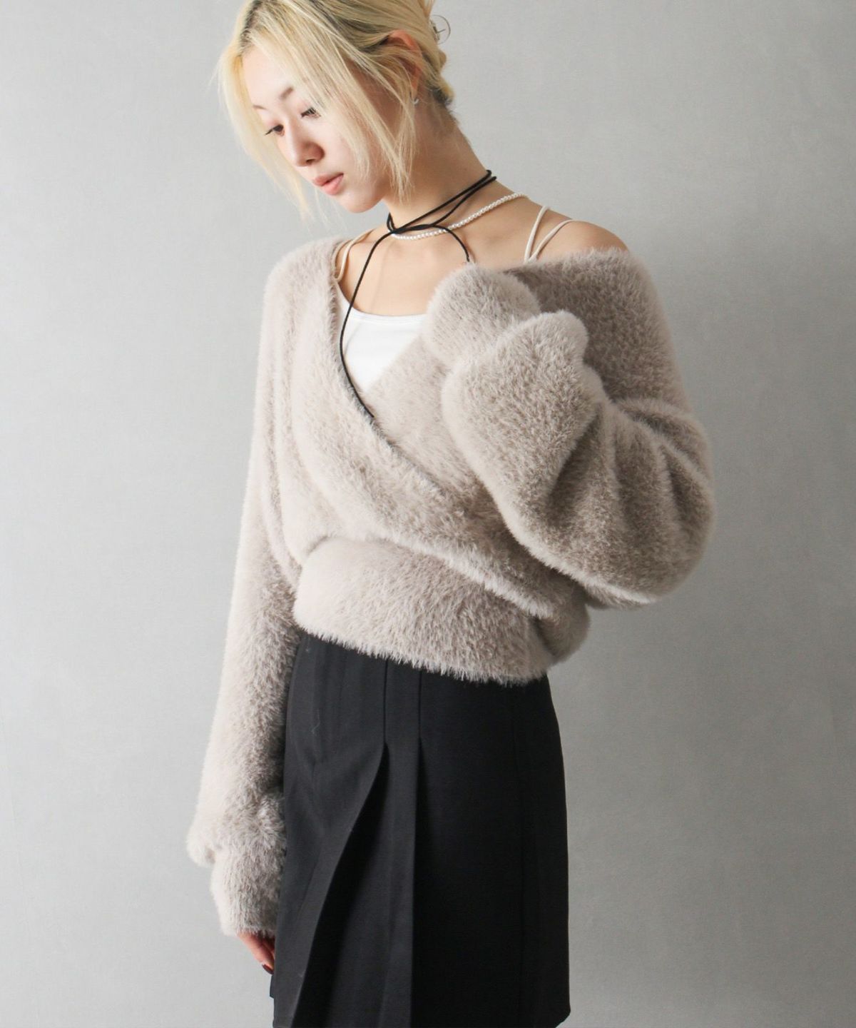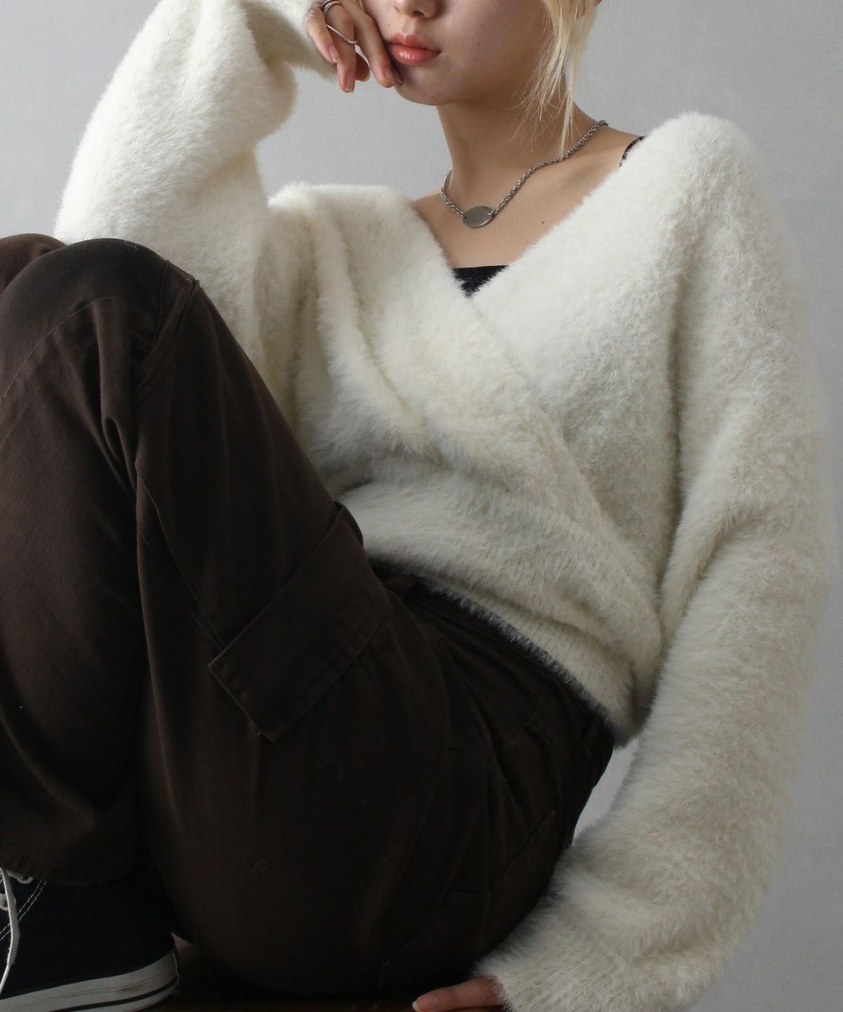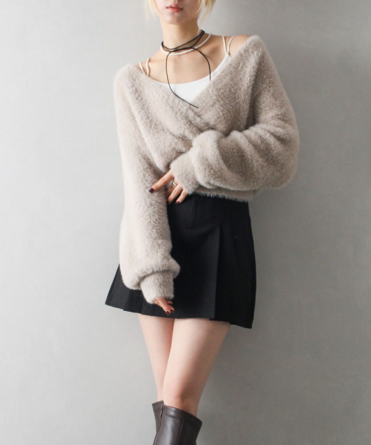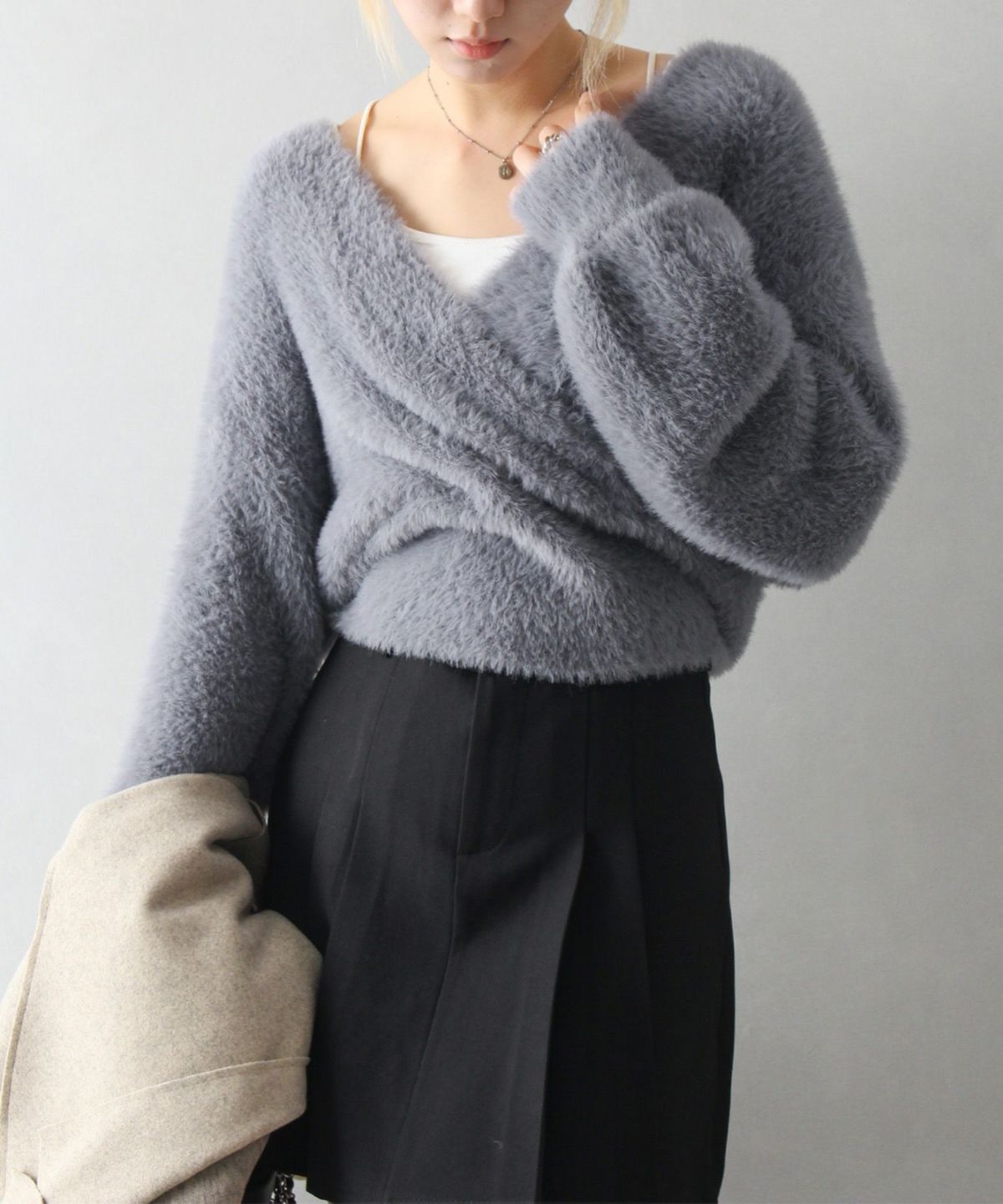 フェザーカシュクールニット