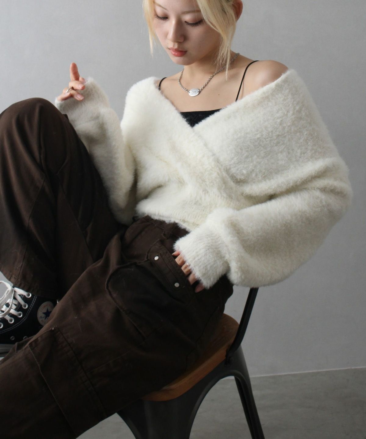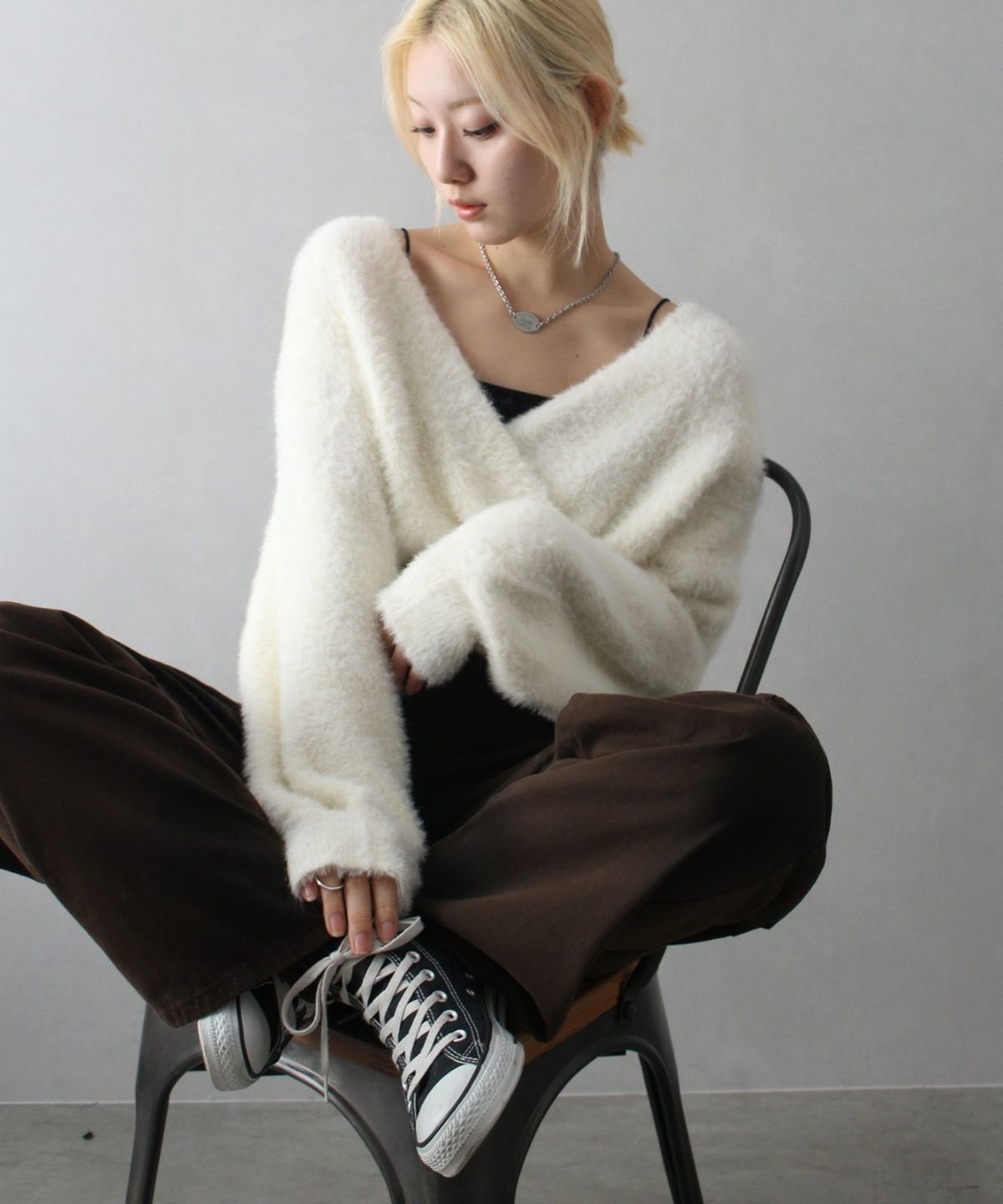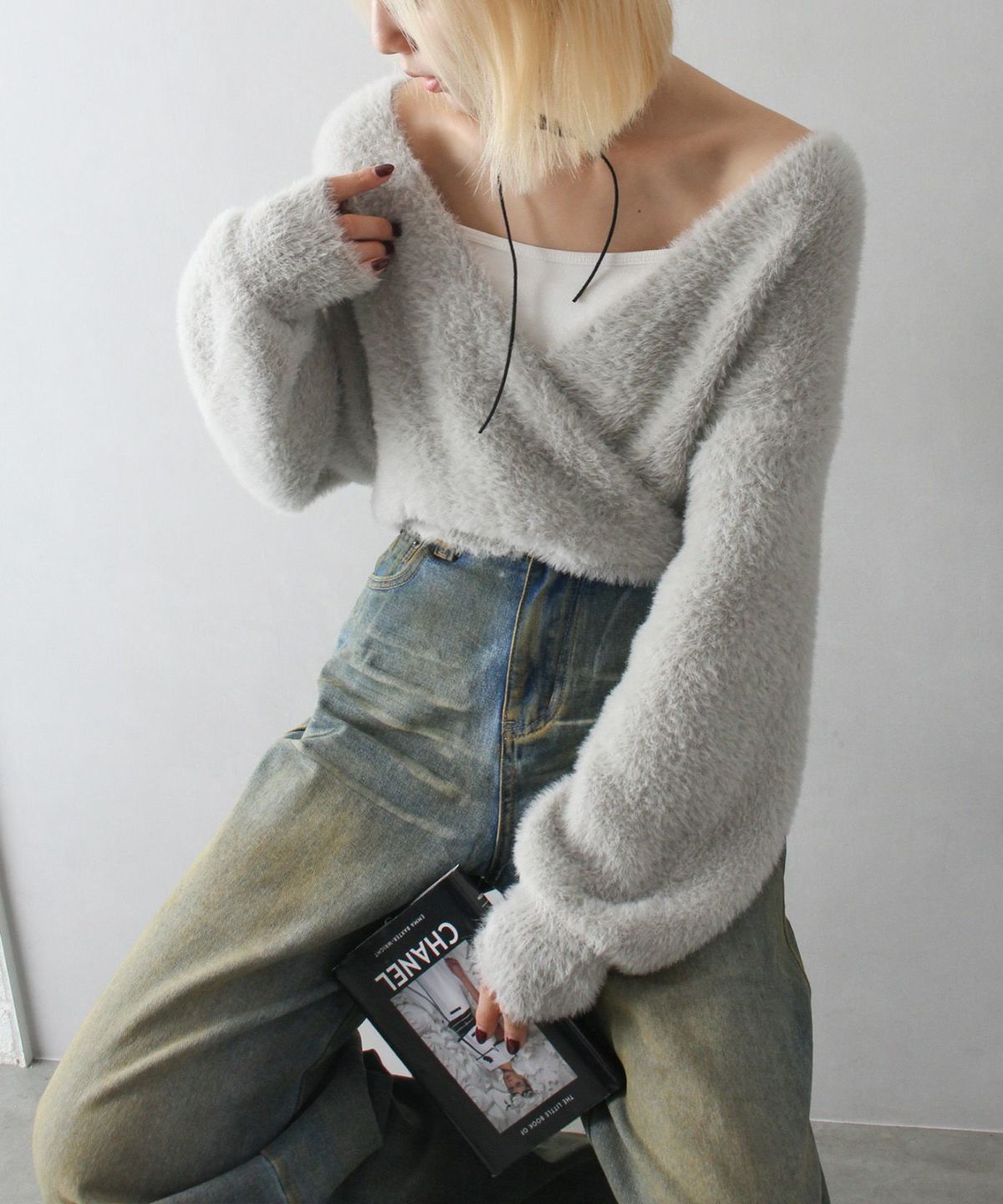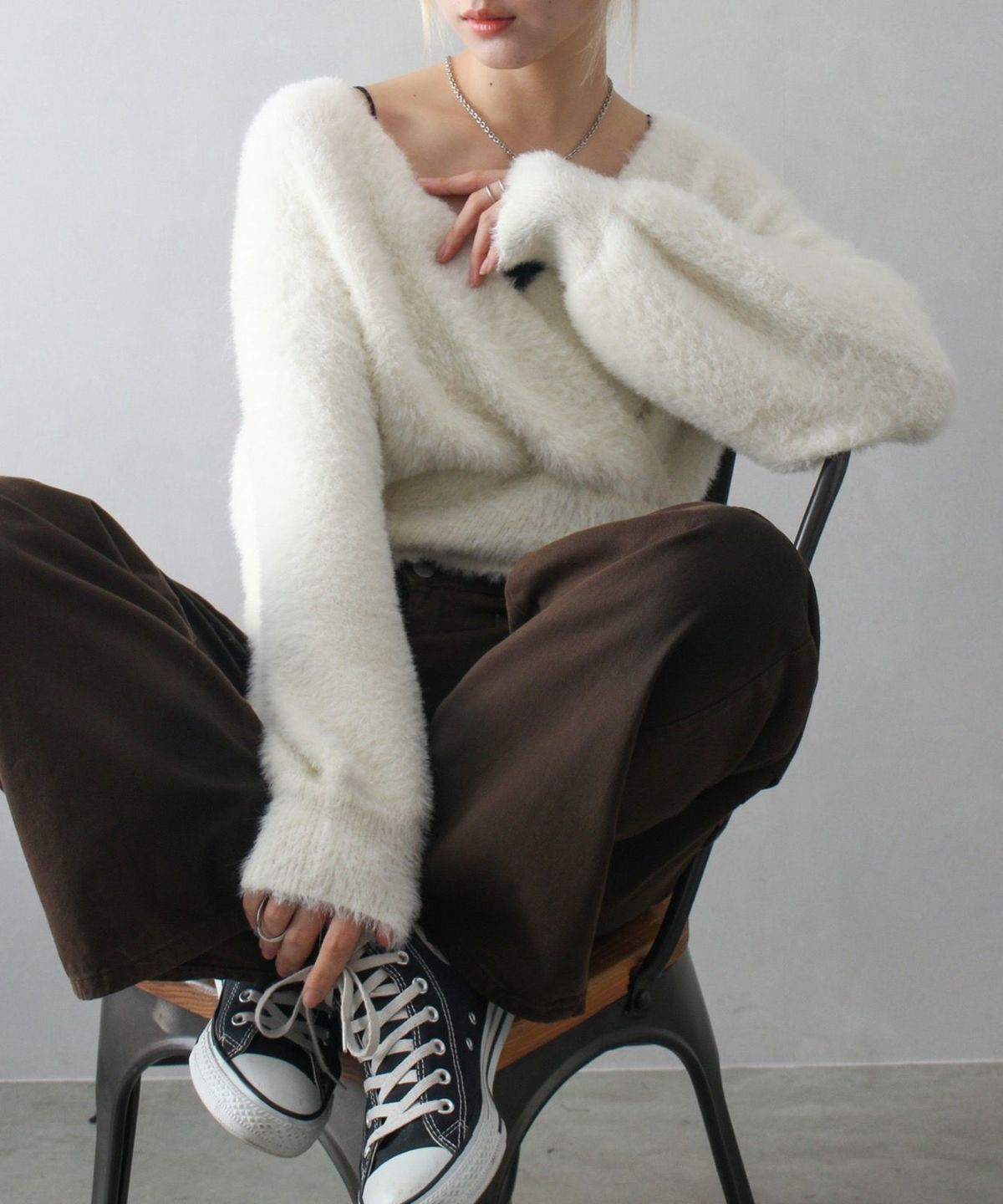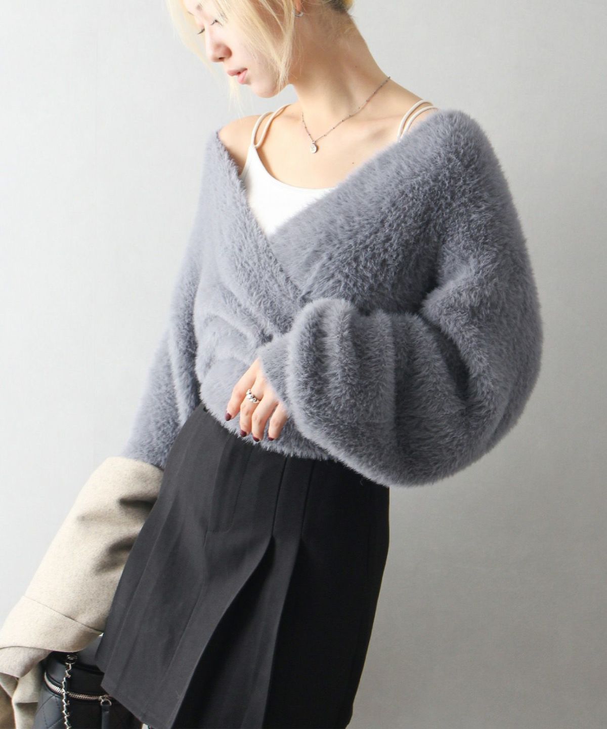 フェザーカシュクールニット