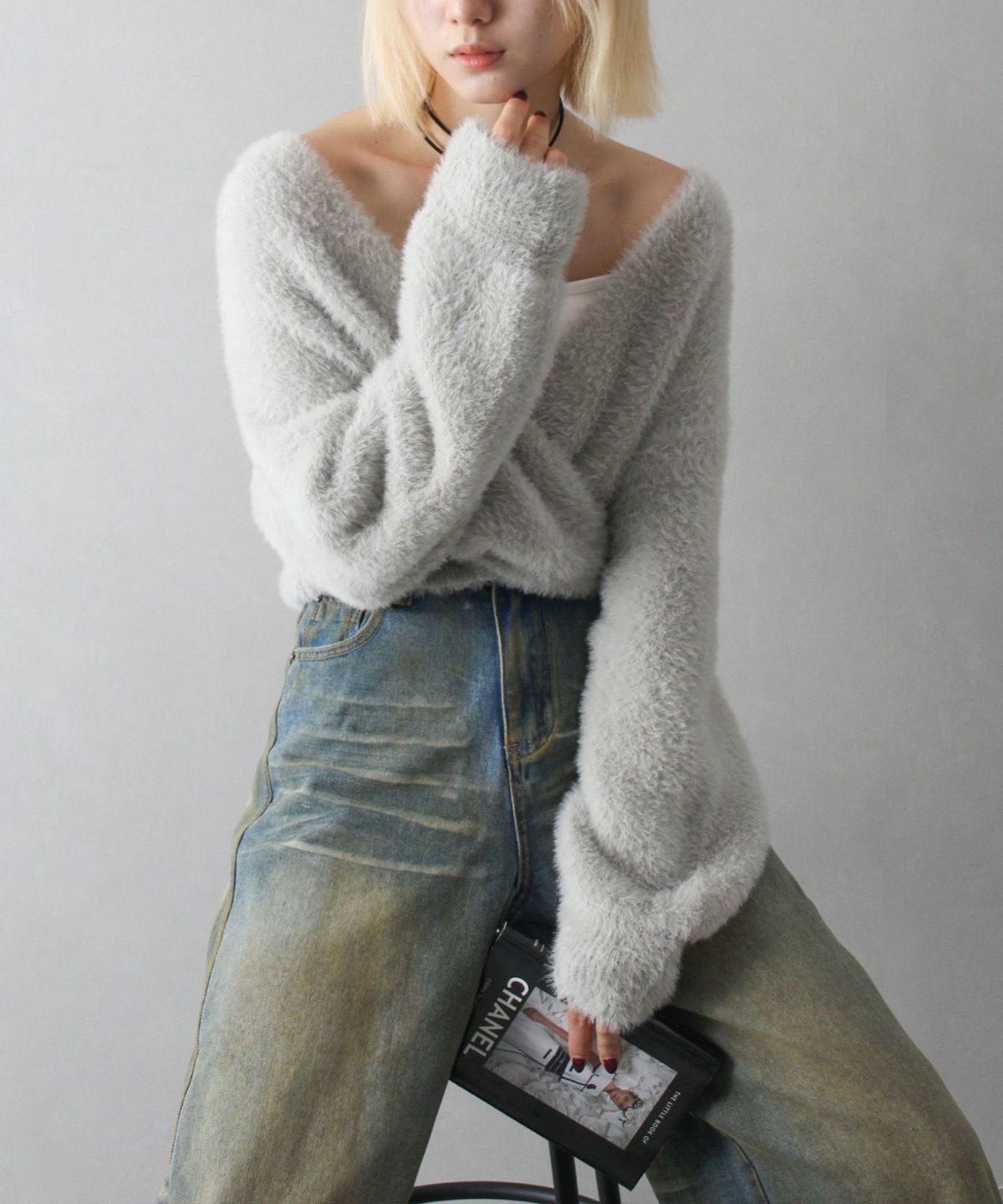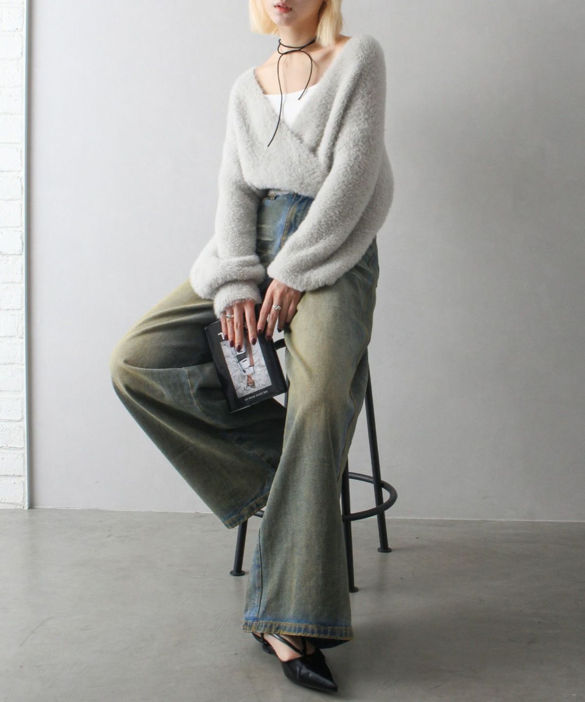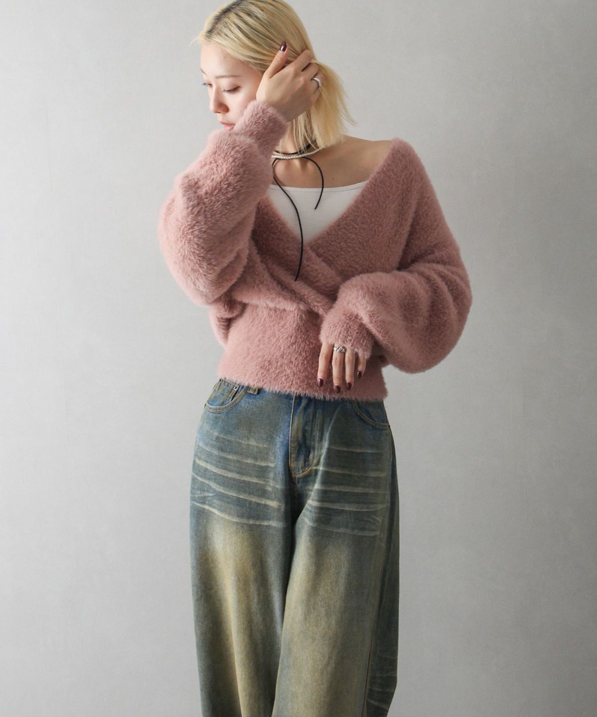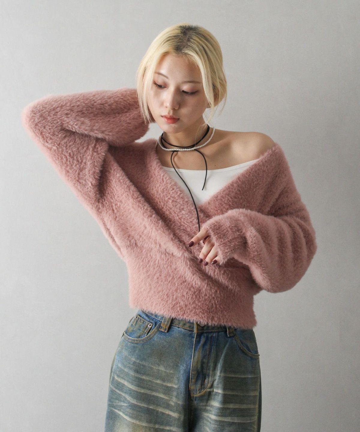 フェザーカシュクールニット