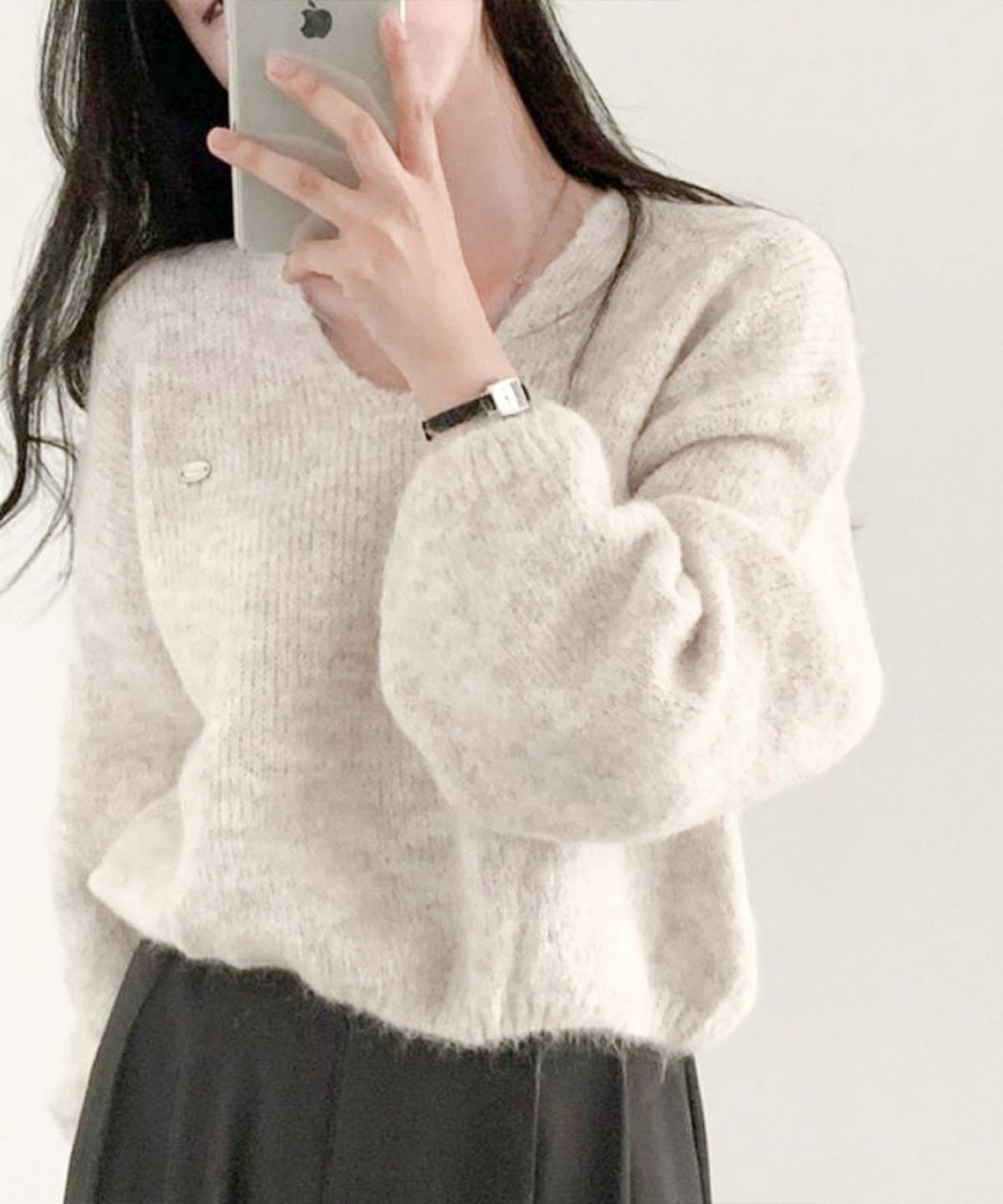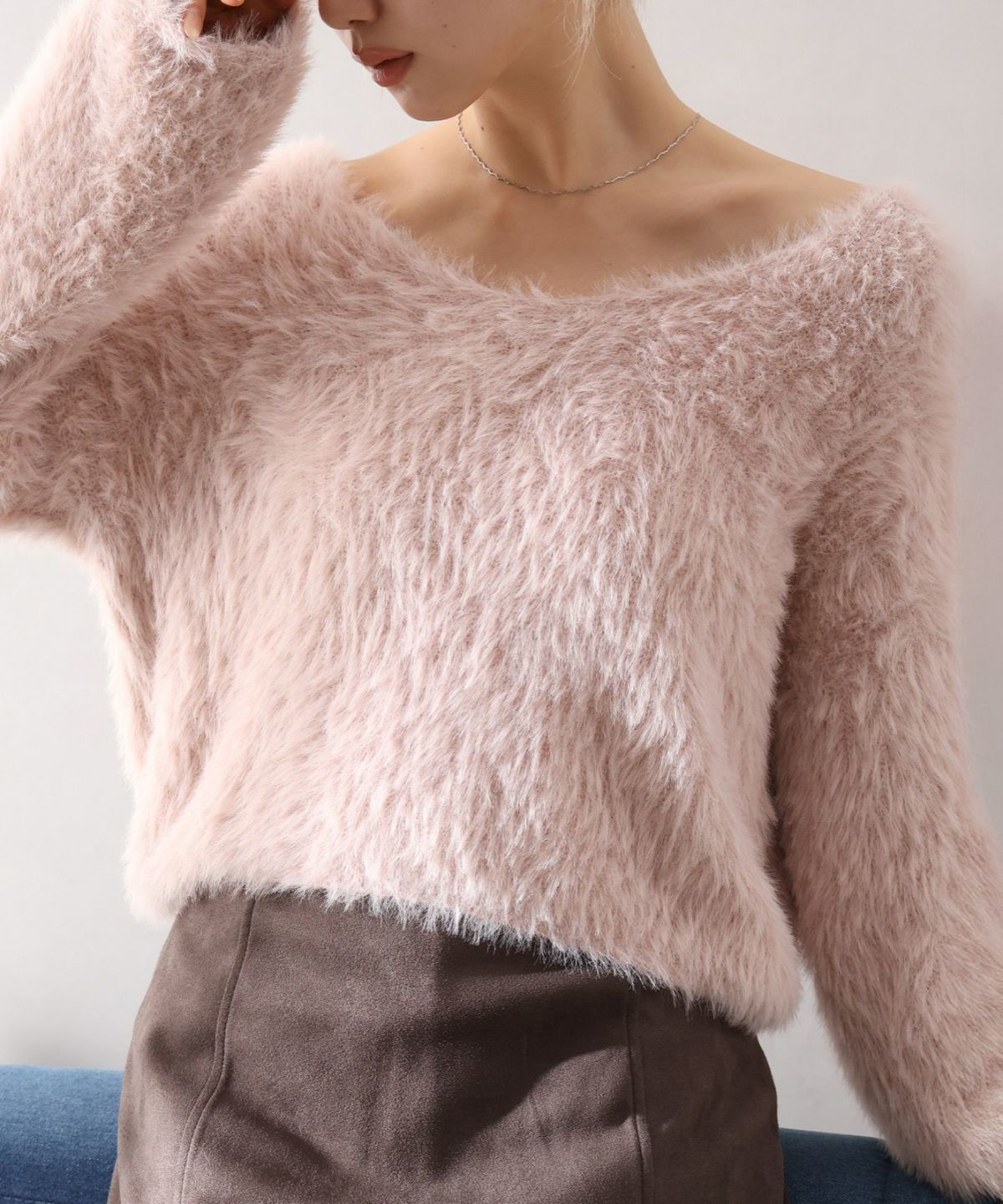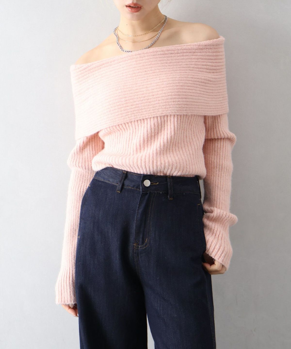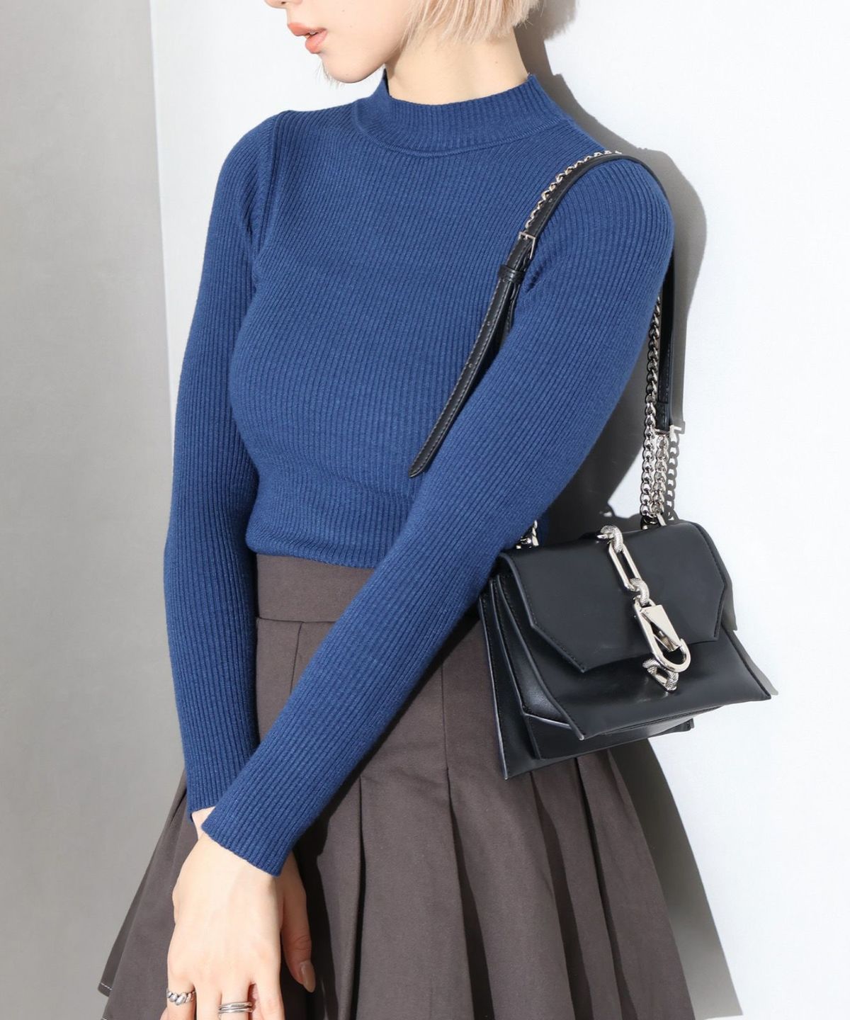 モチモチクロップドボトルネックニット