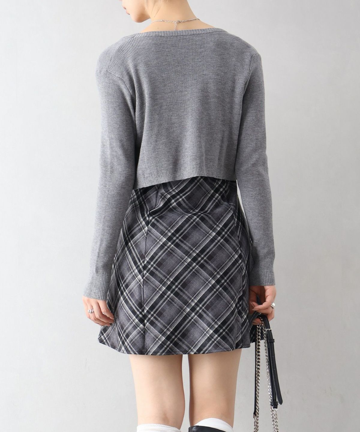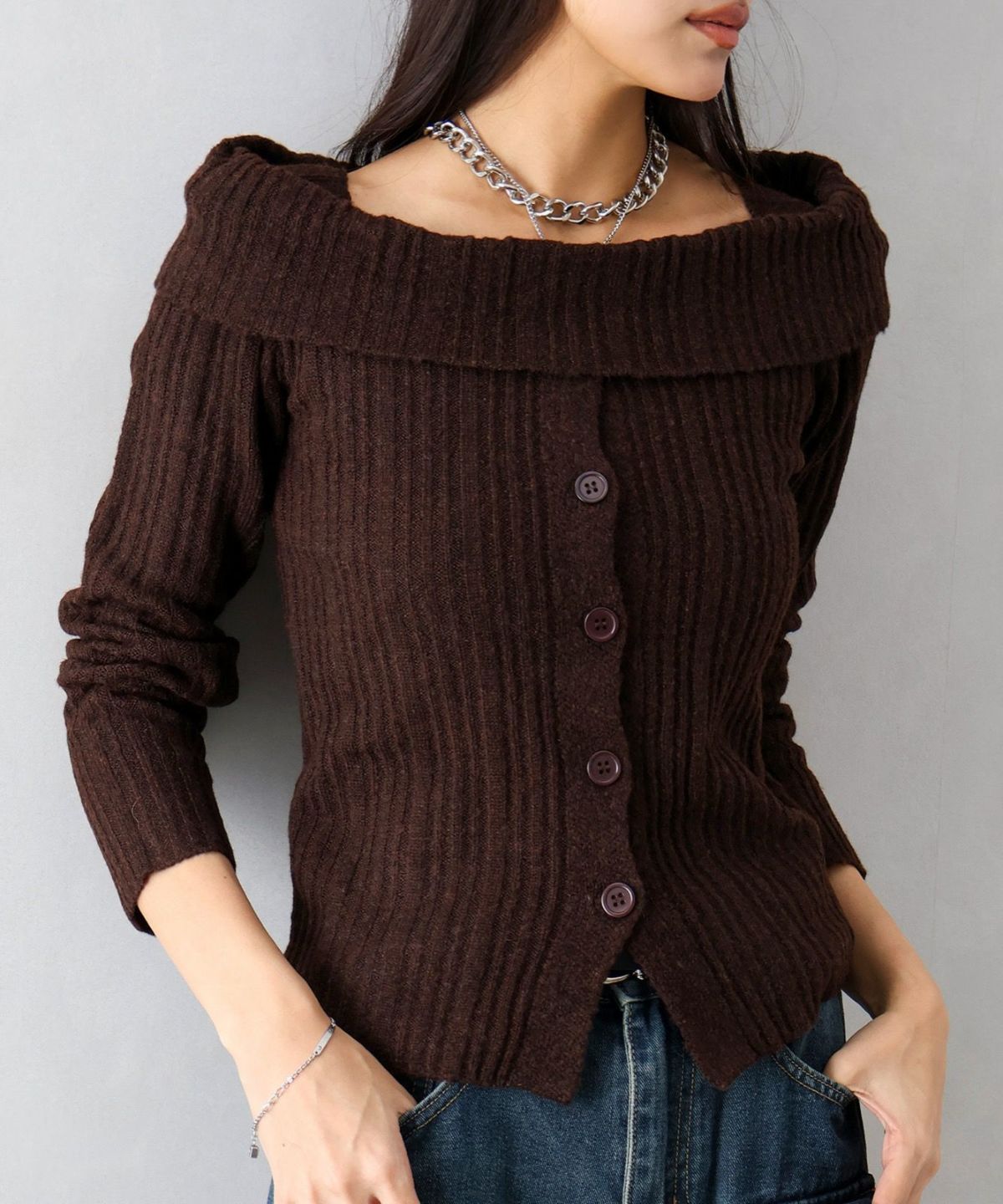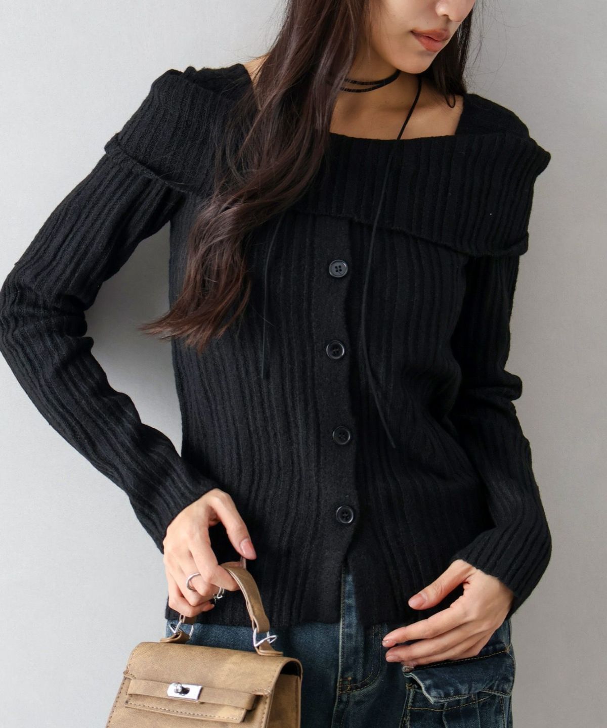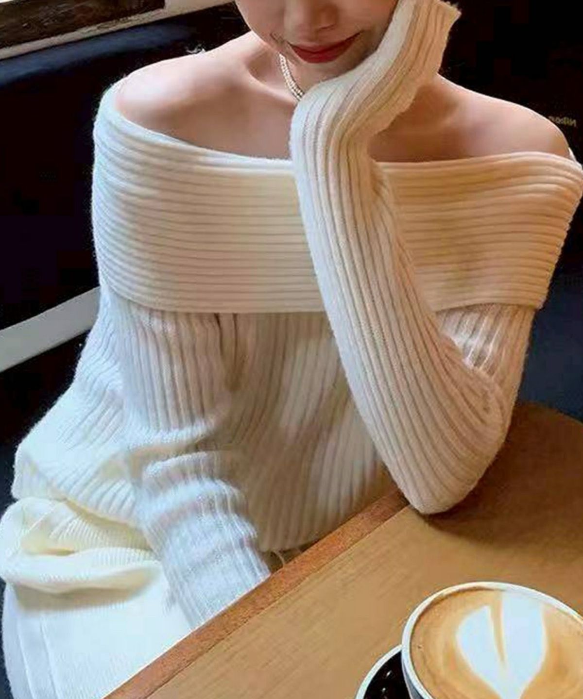 モチモチクロップドボトルネックニット
