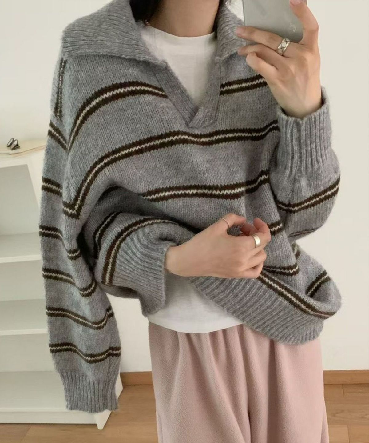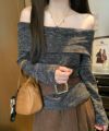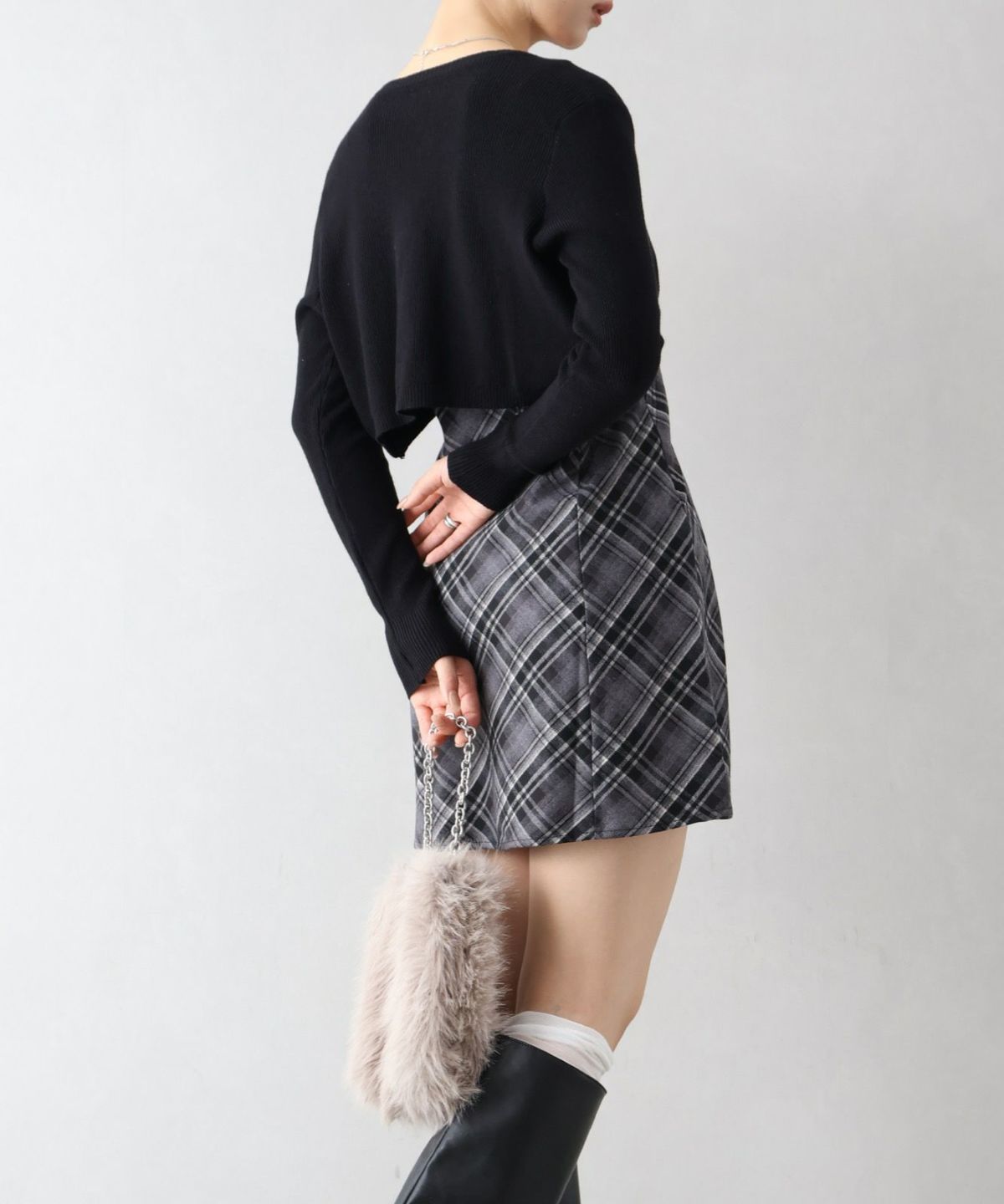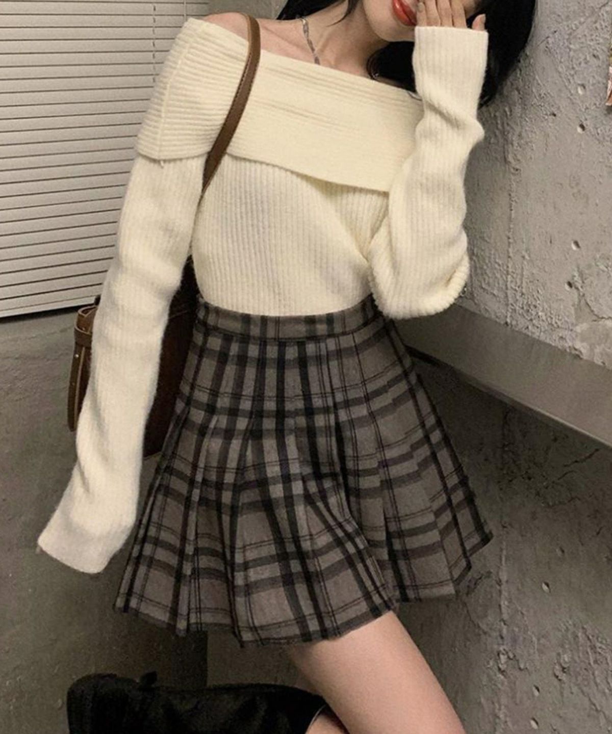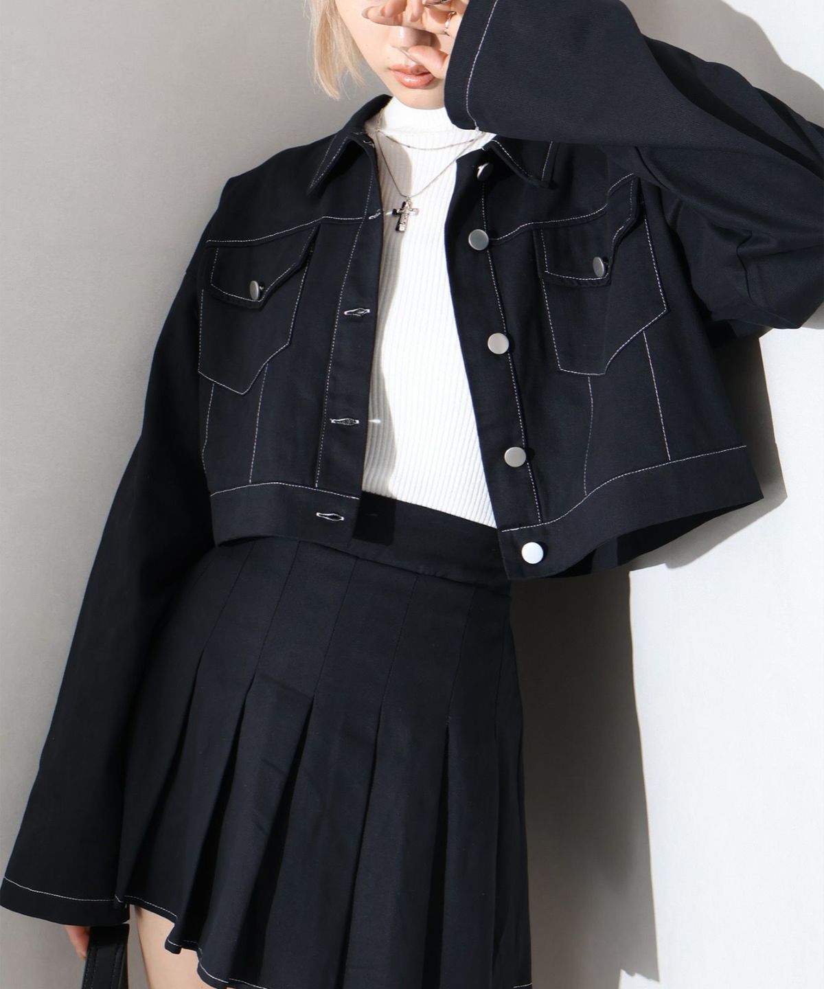 モチモチクロップドボトルネックニット