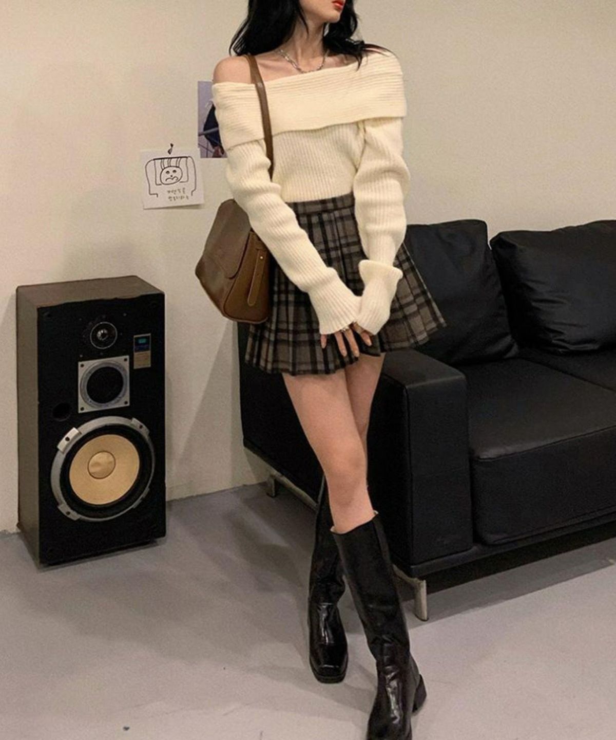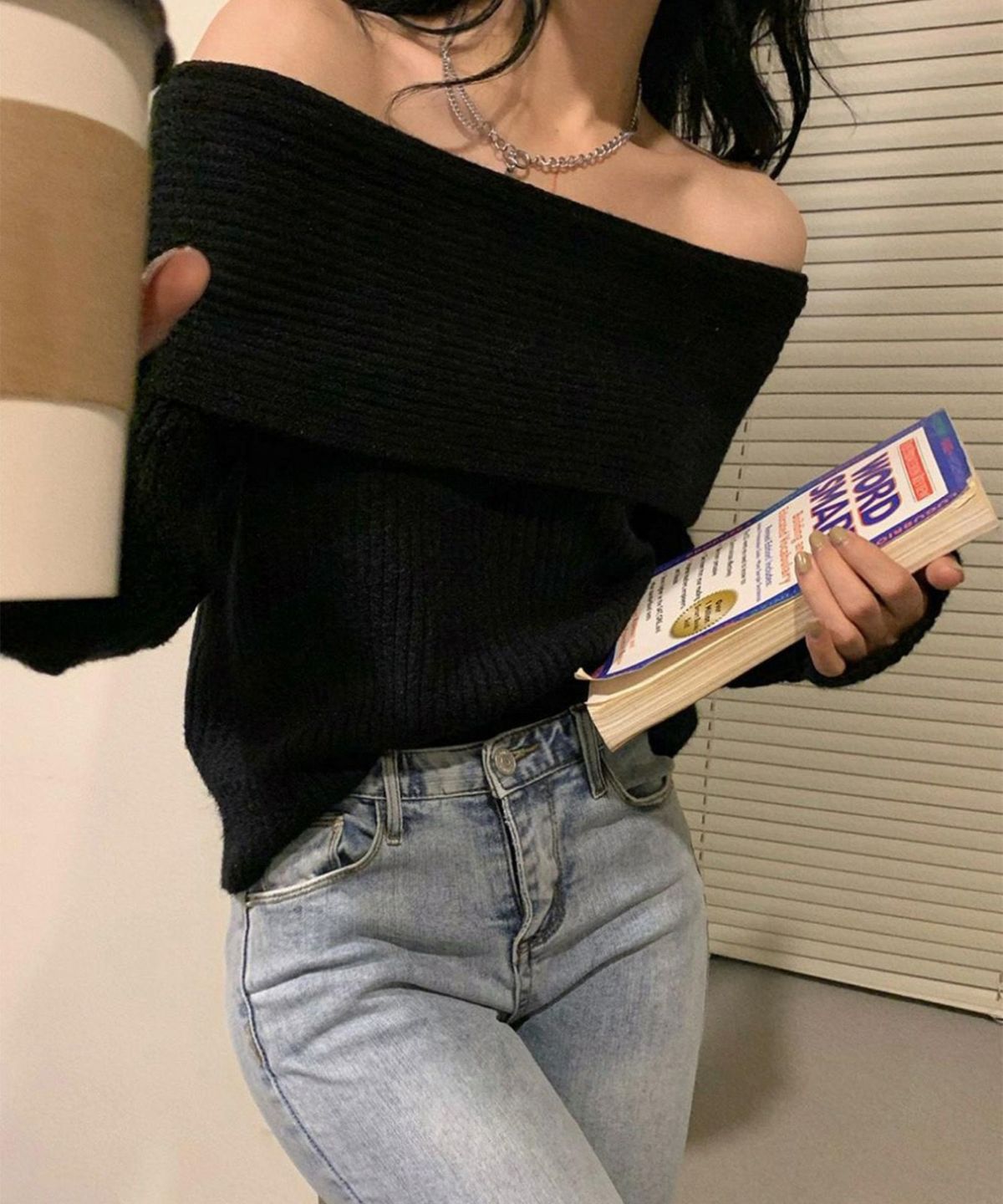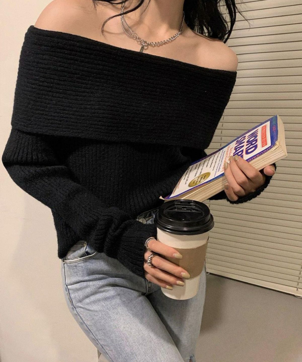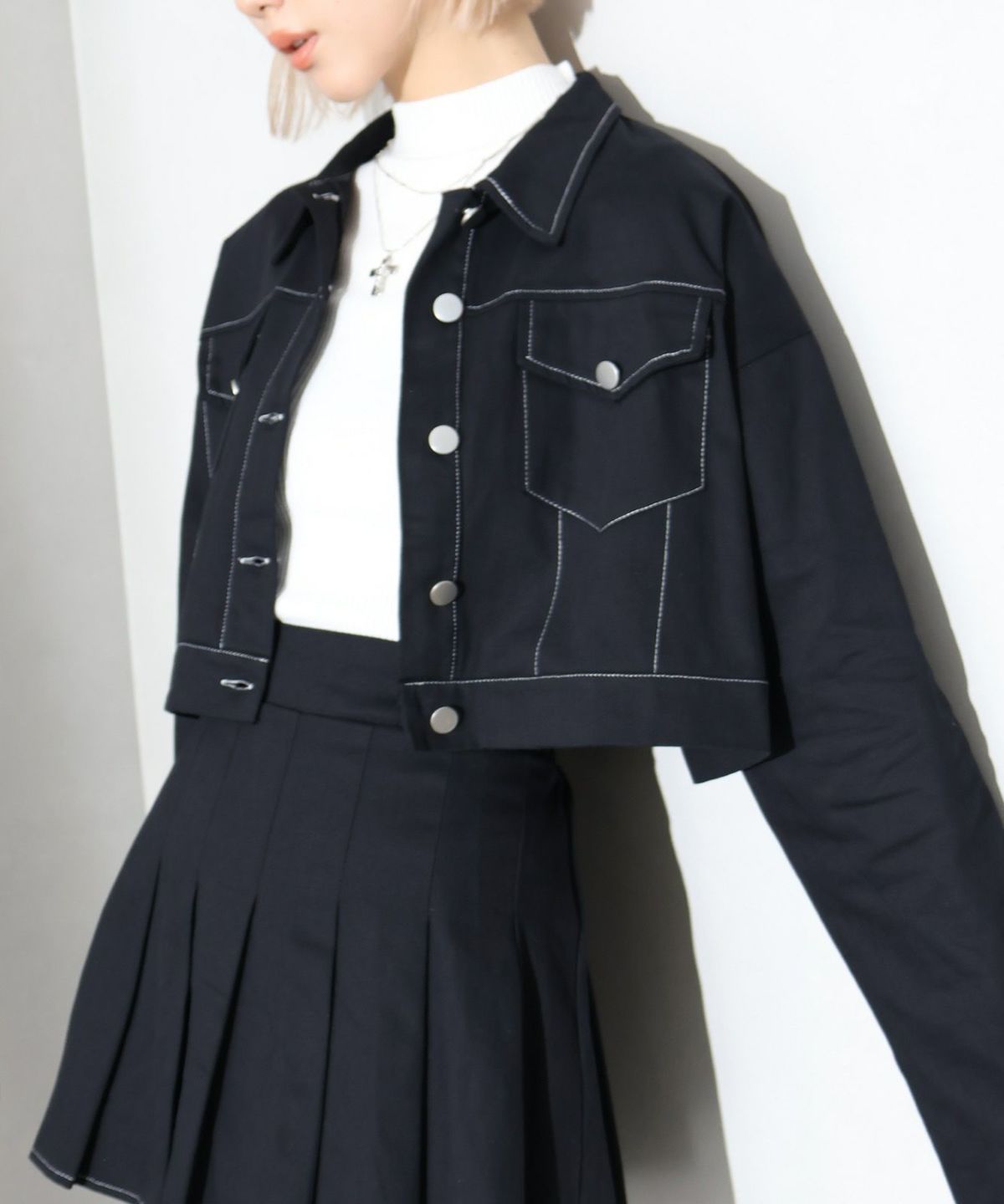 モチモチクロップドボトルネックニット