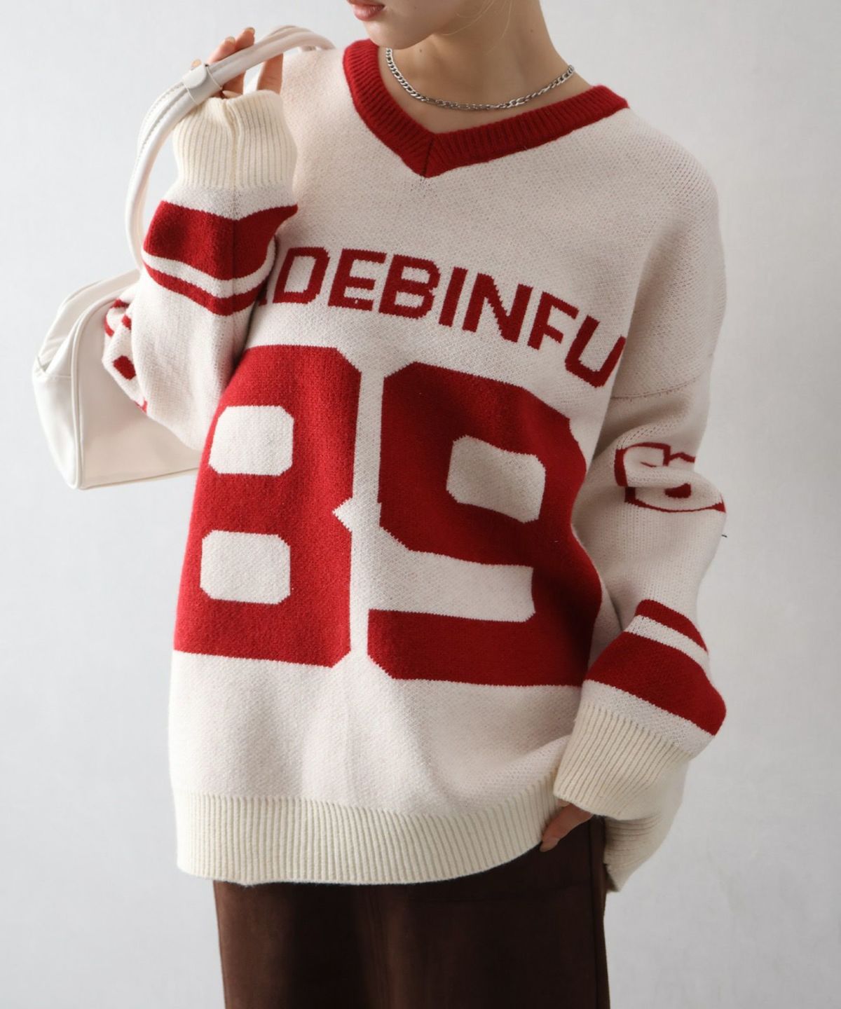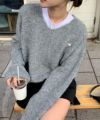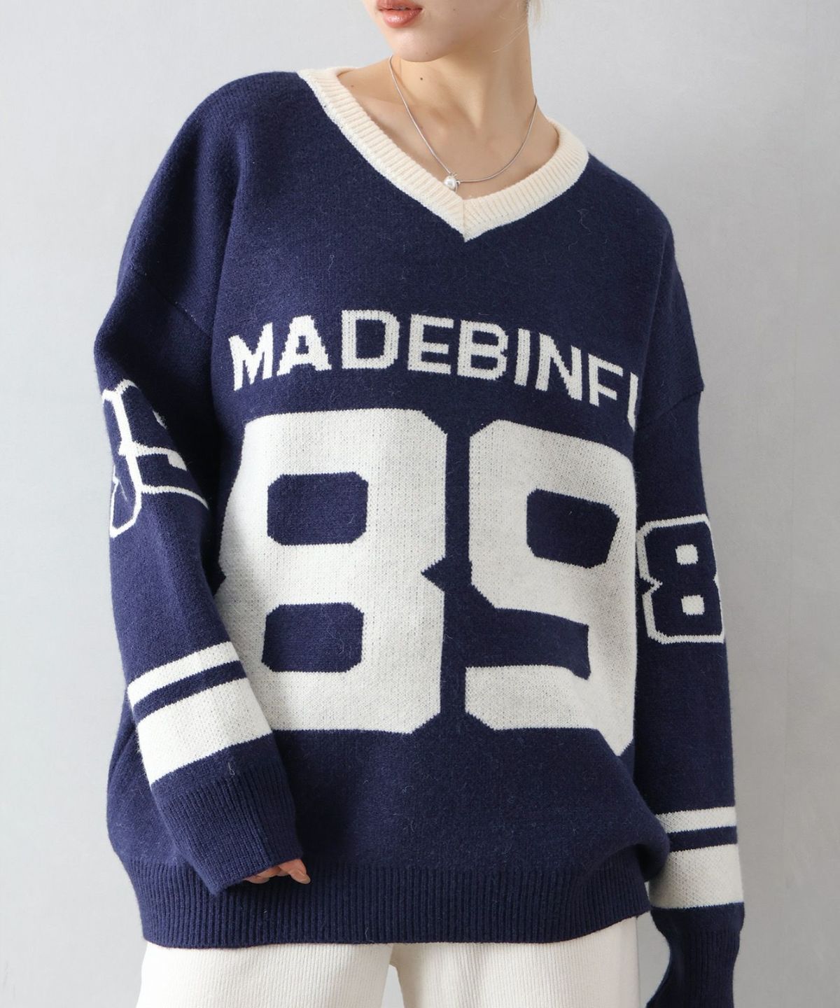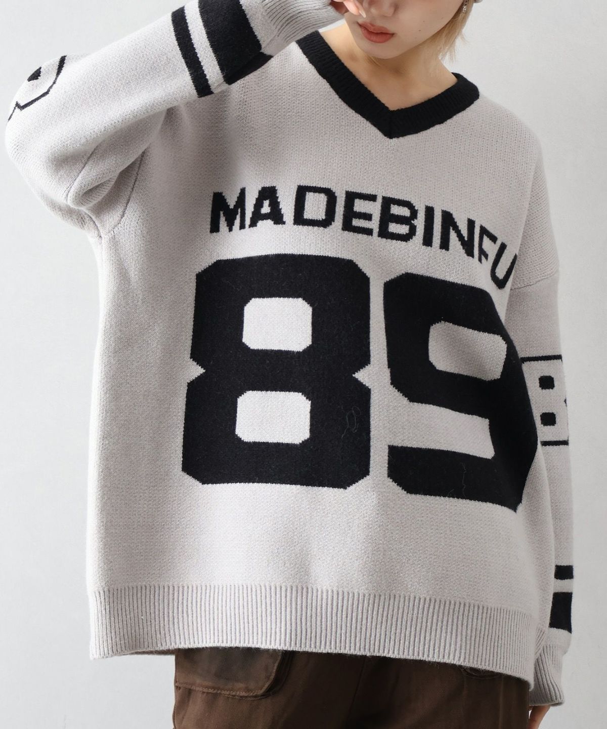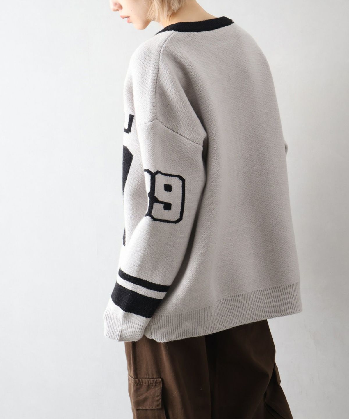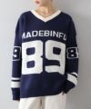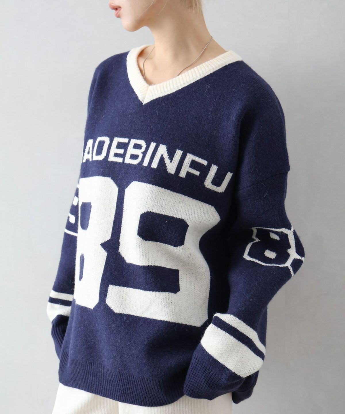 ナンバリングジャガードVネックニット