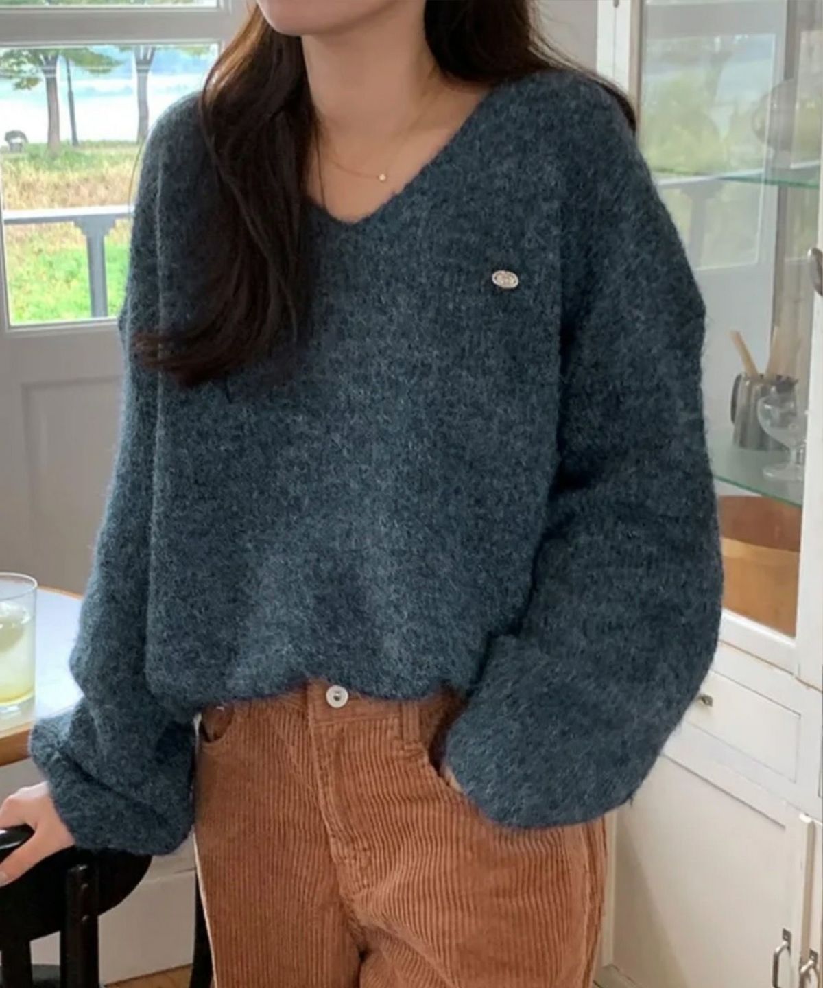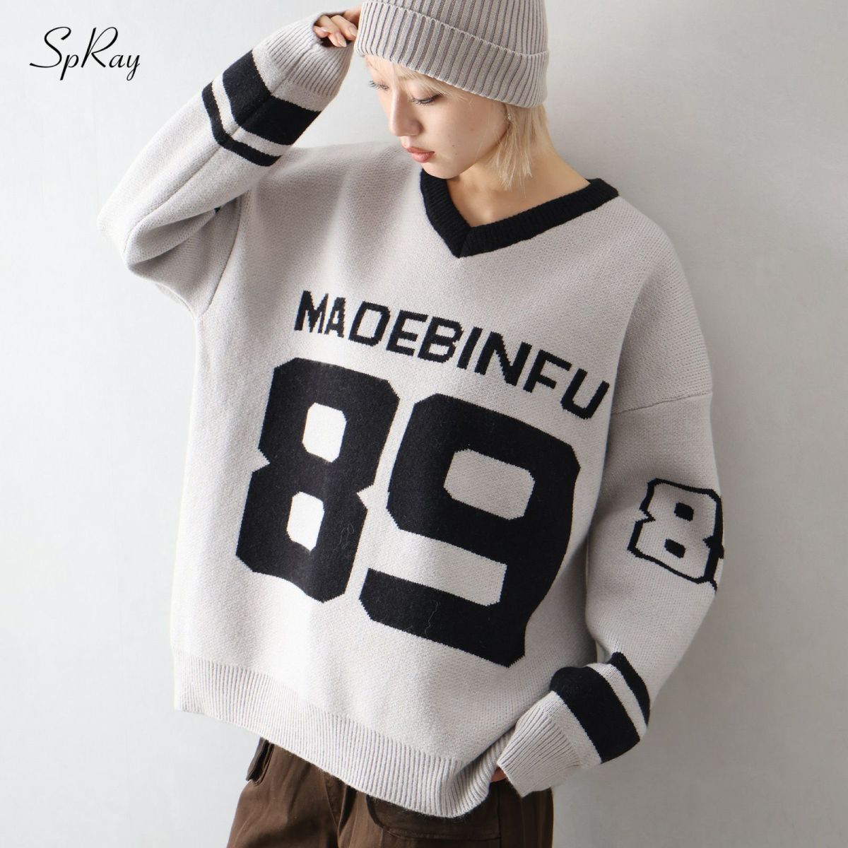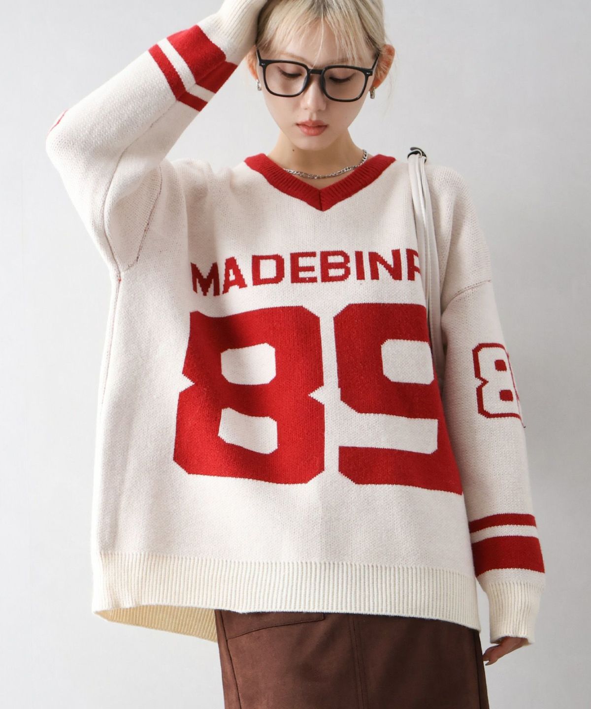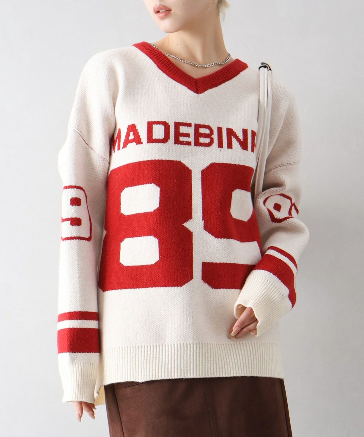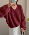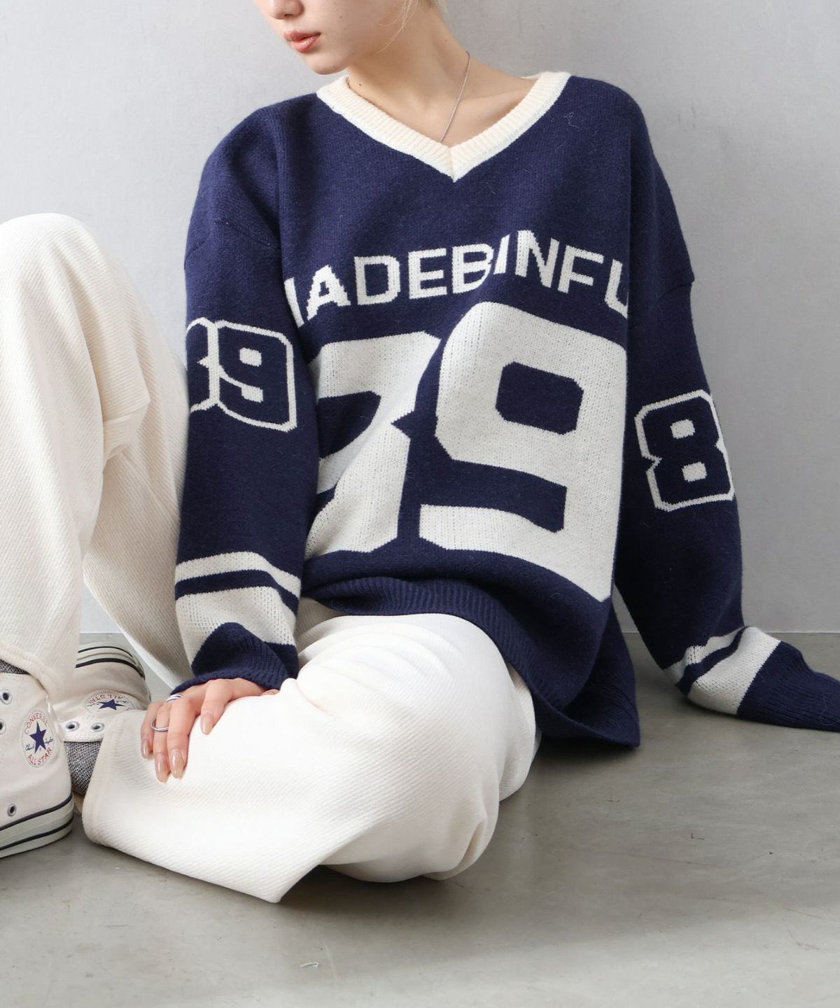 ナンバリングジャガードVネックニット