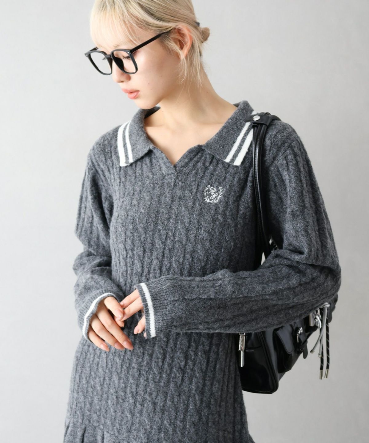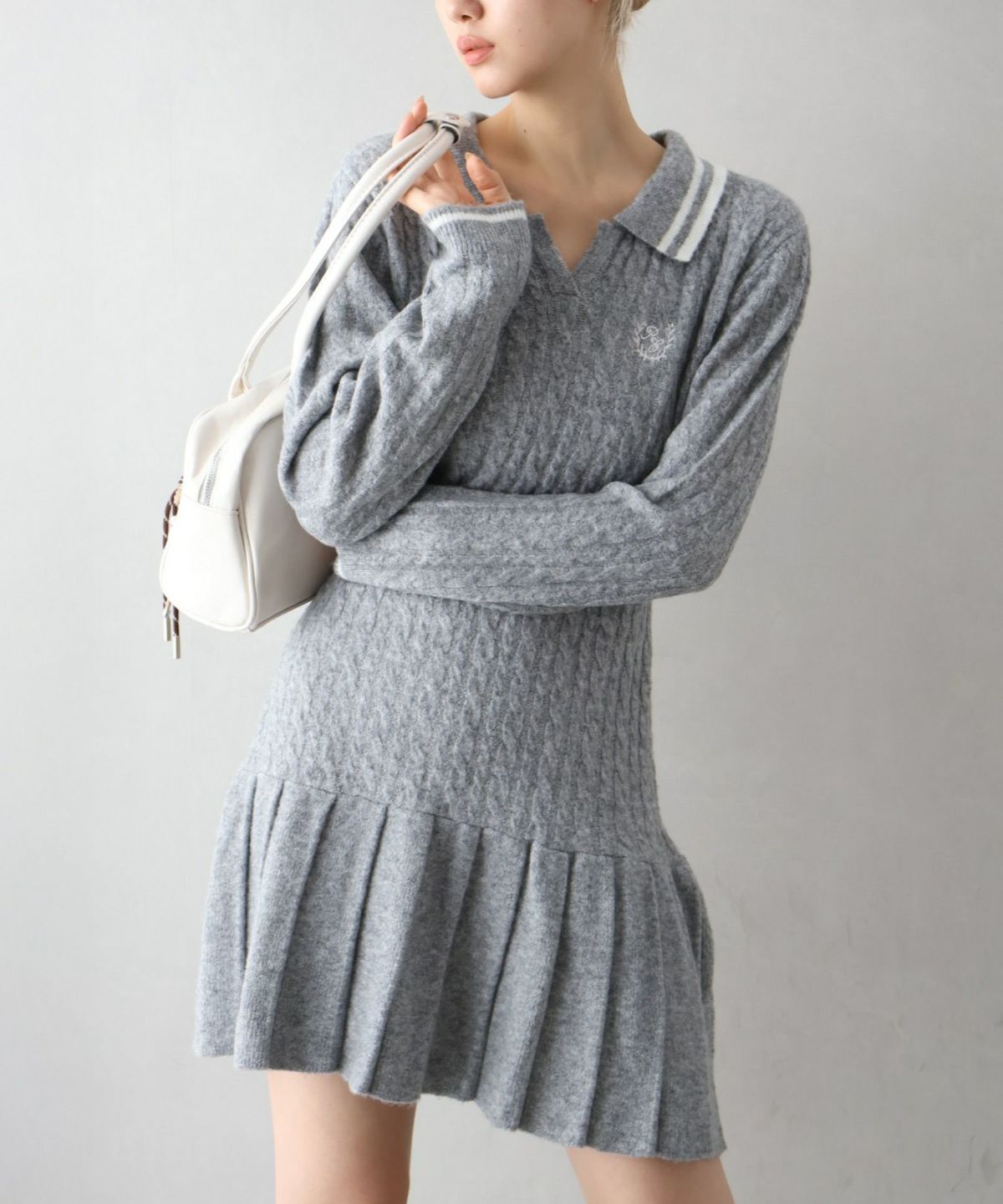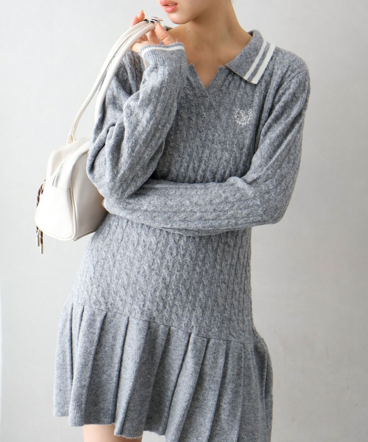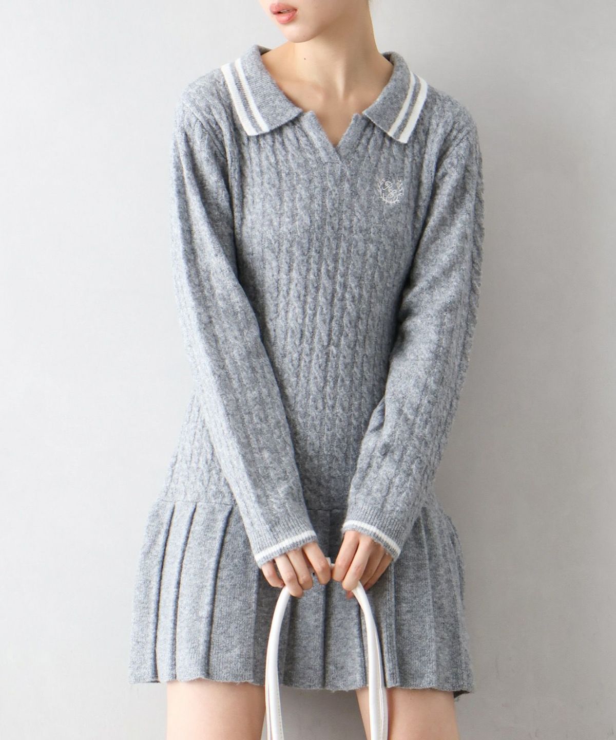 ケーブルニットポロミニワンピース