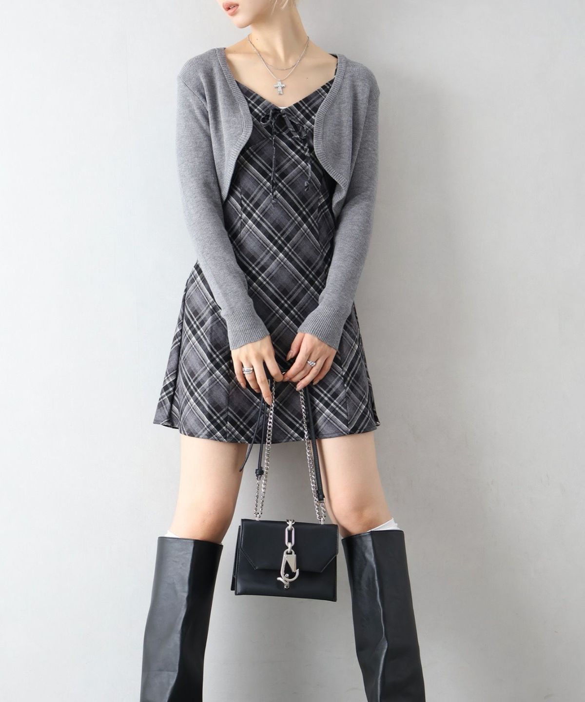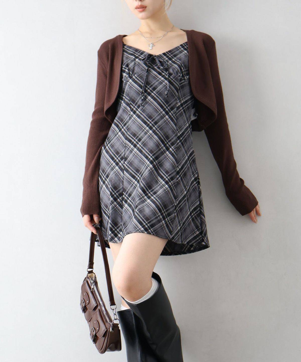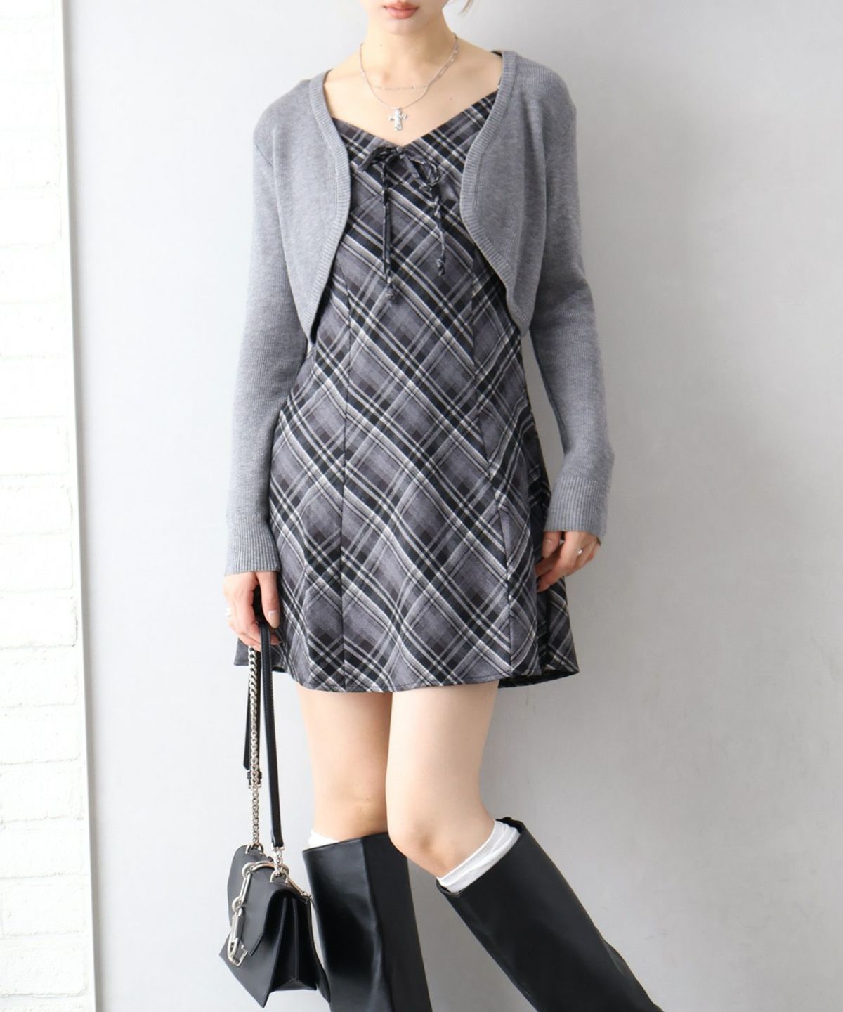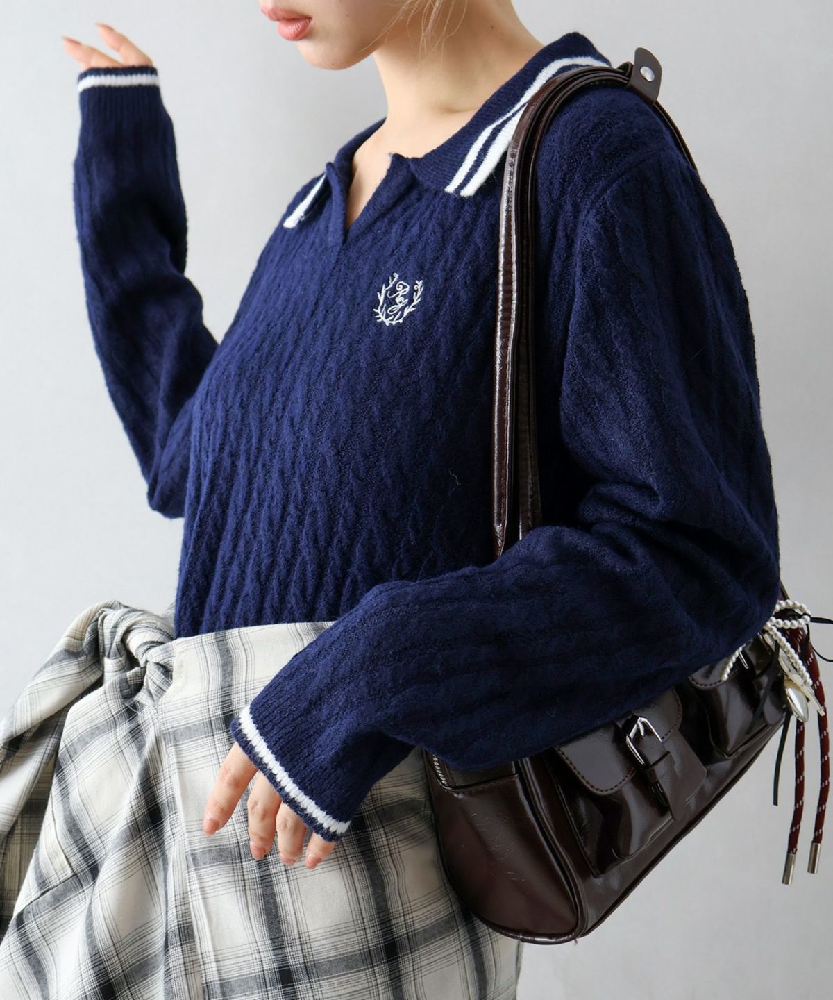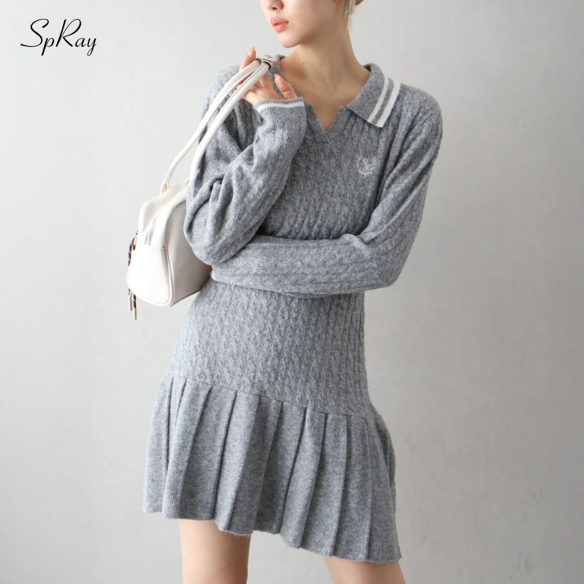 ケーブルニットポロミニワンピース