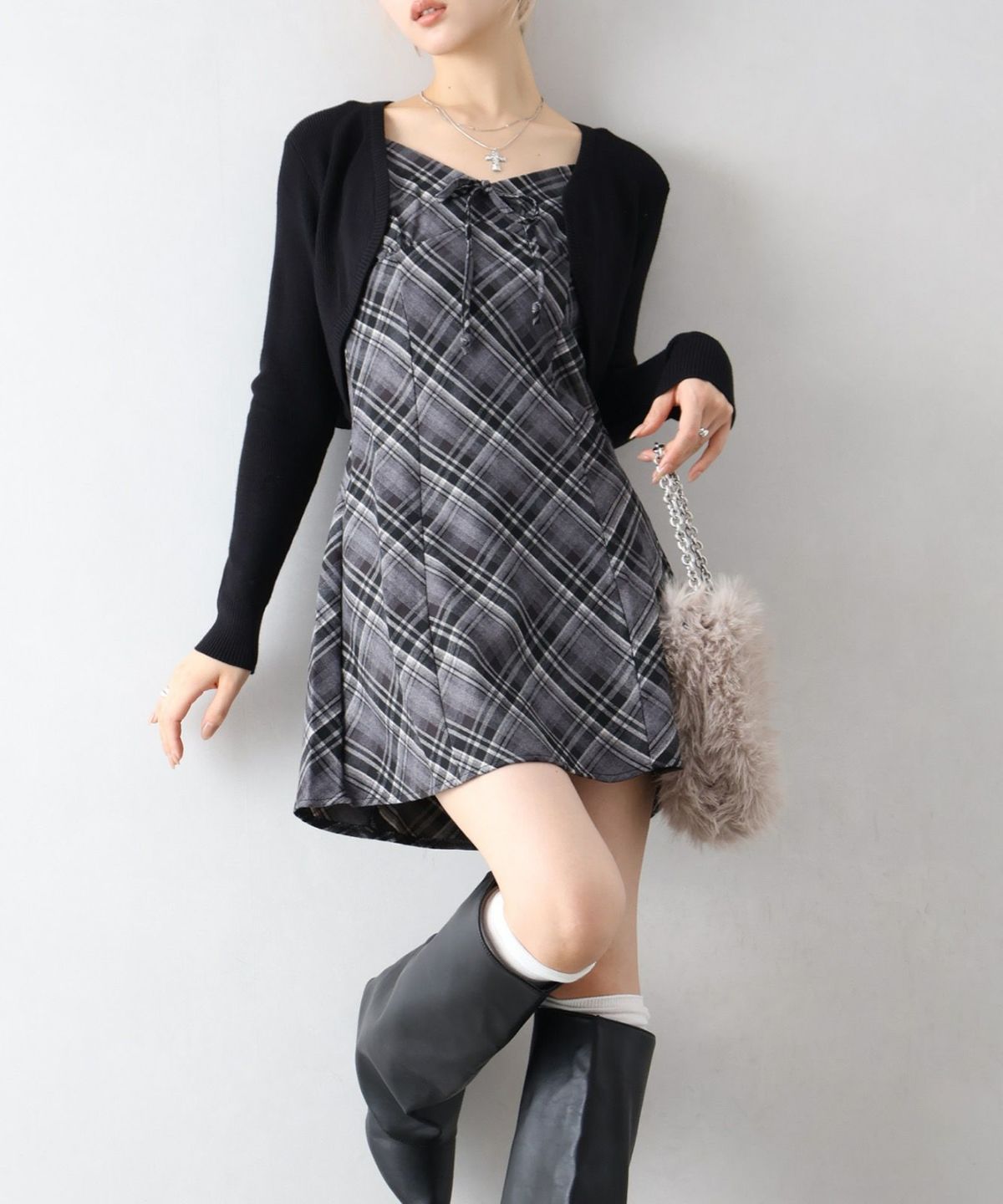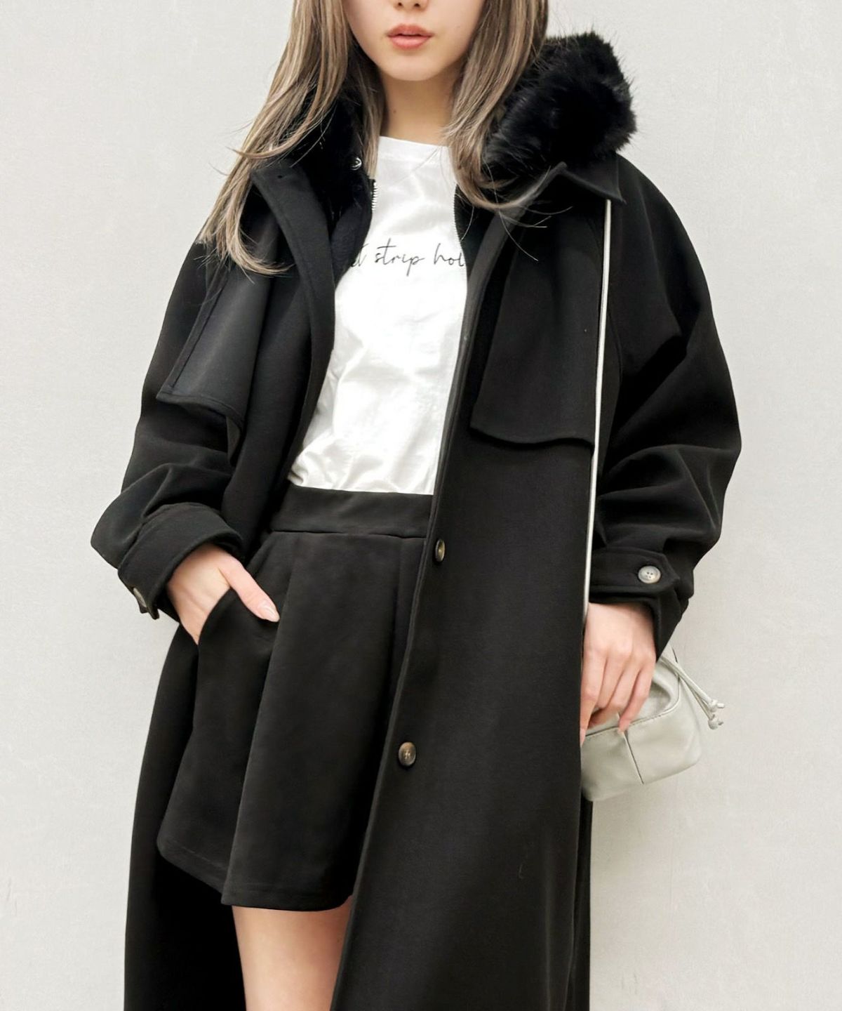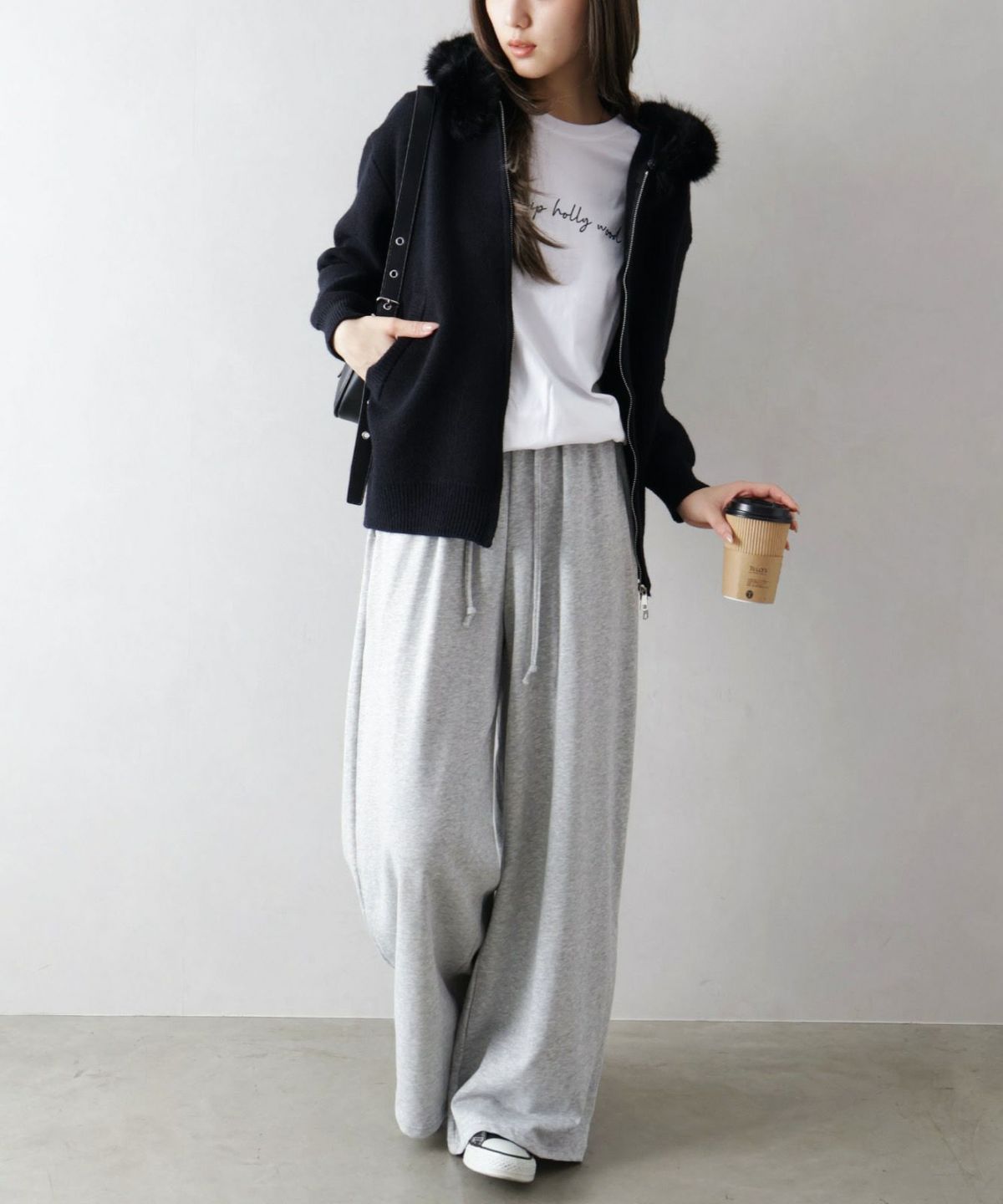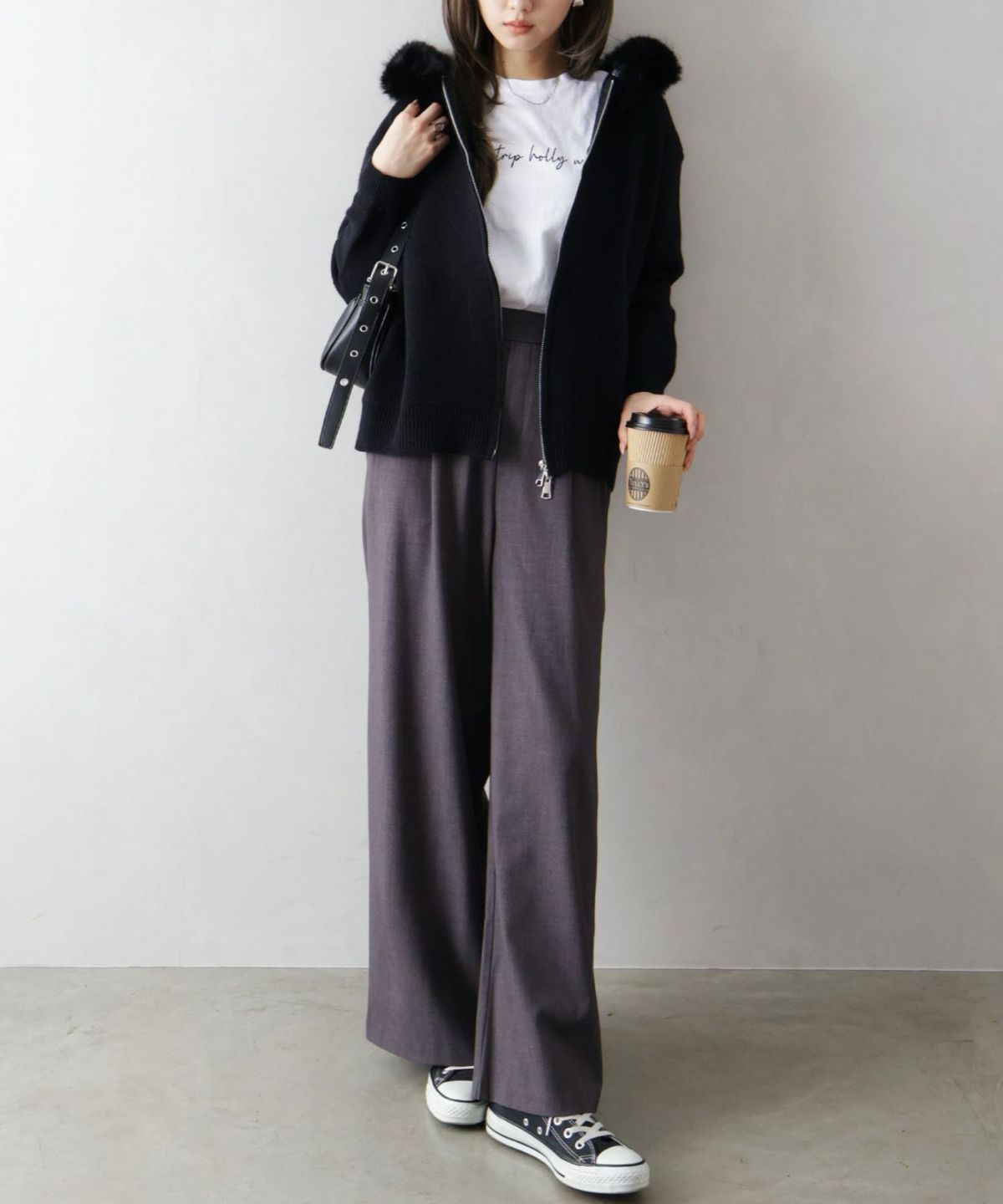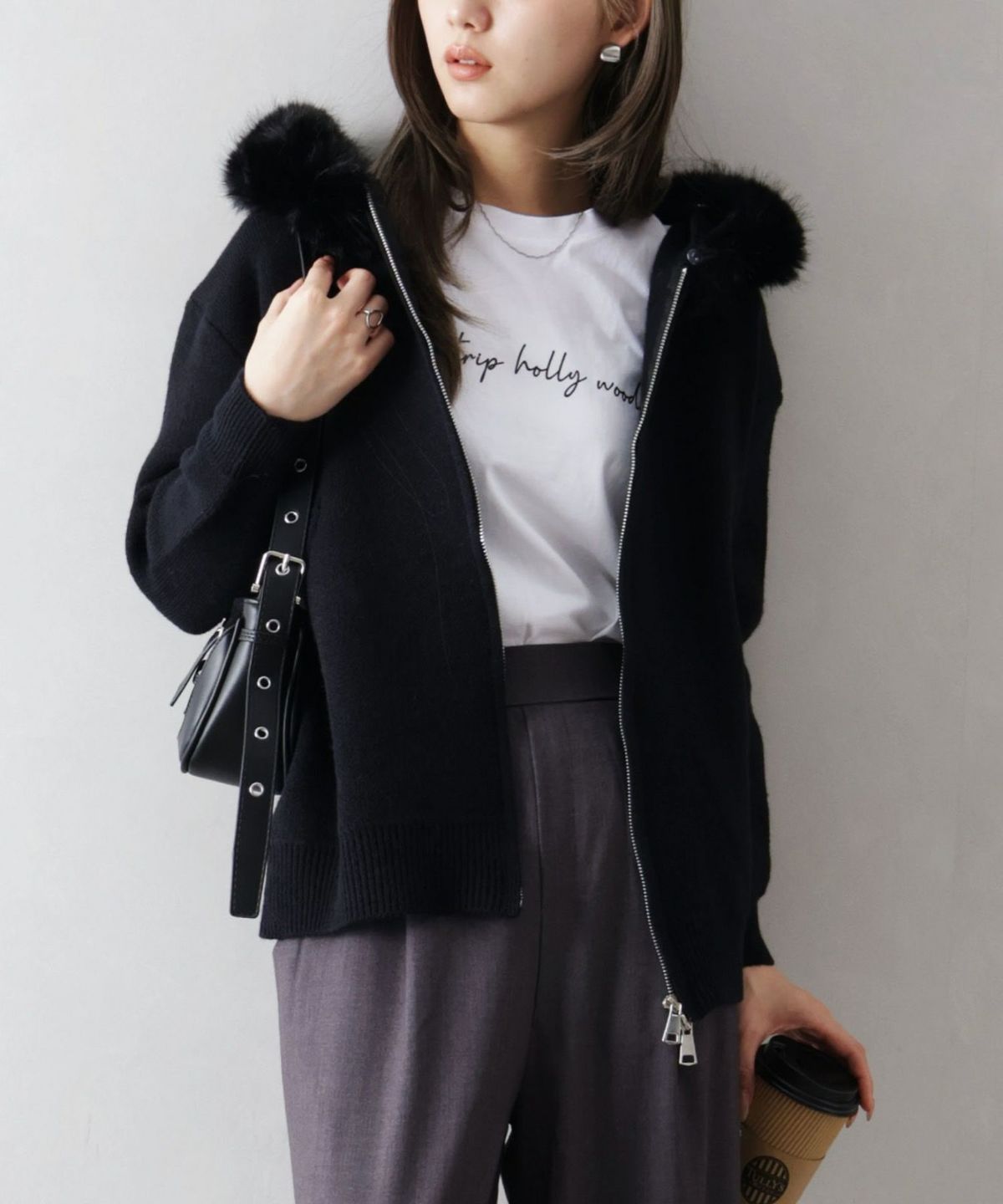 ファー付ニットロングジップパーカー