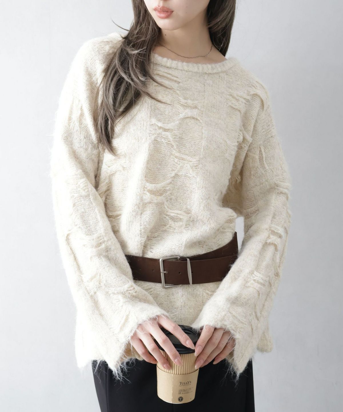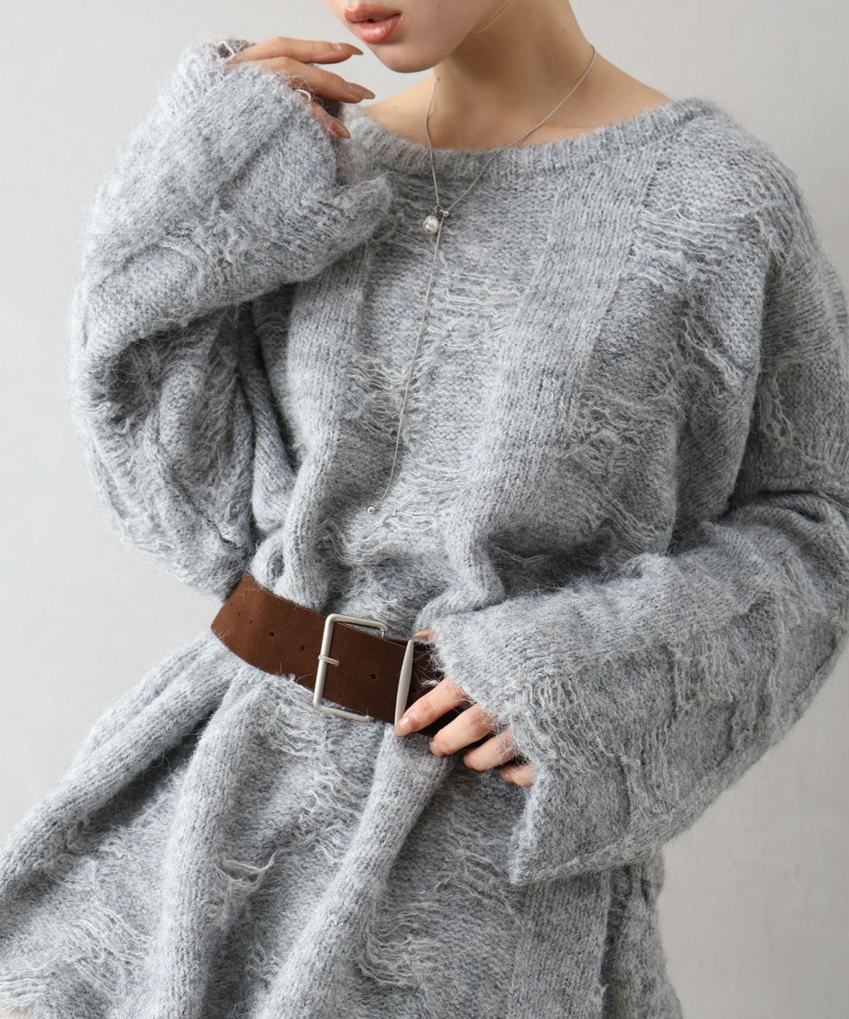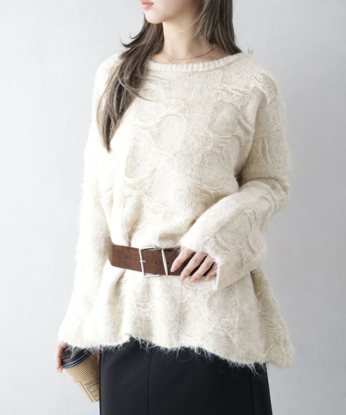 ベルト付フェザーBIGニット
