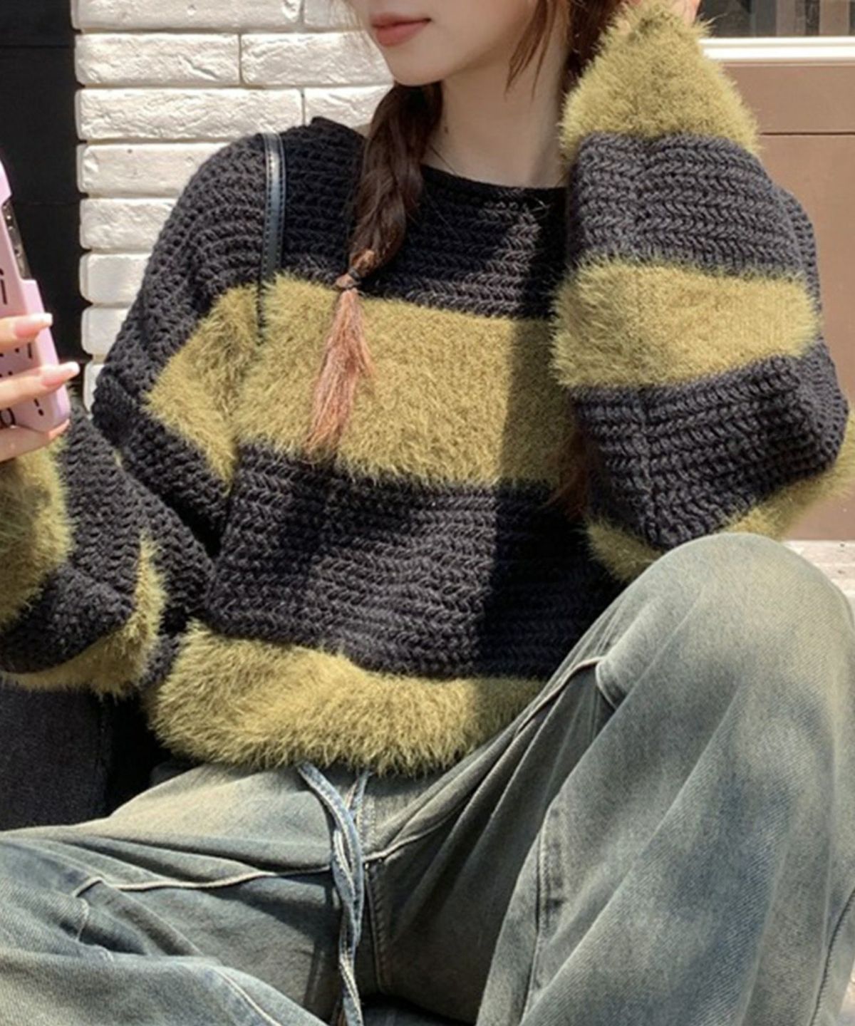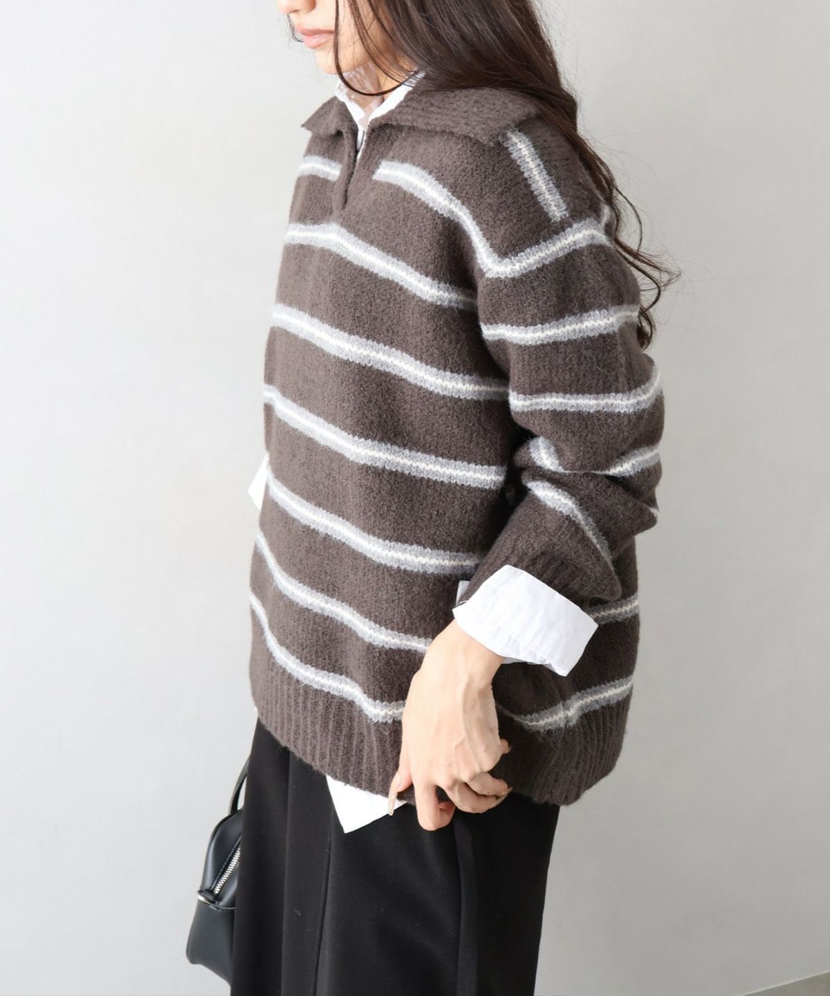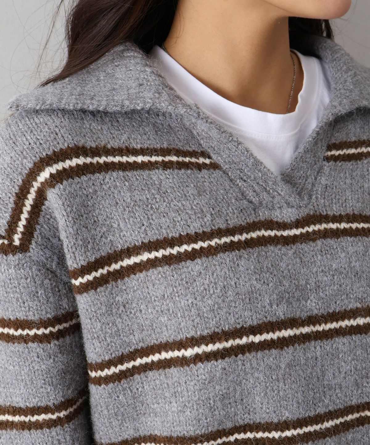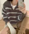 シャギーボーダークロップドニット
