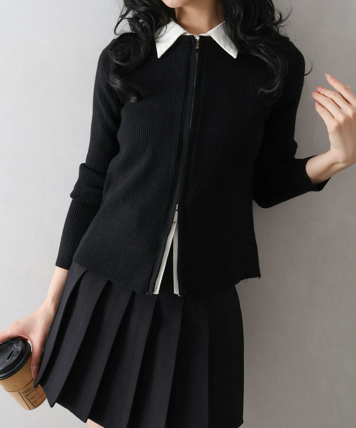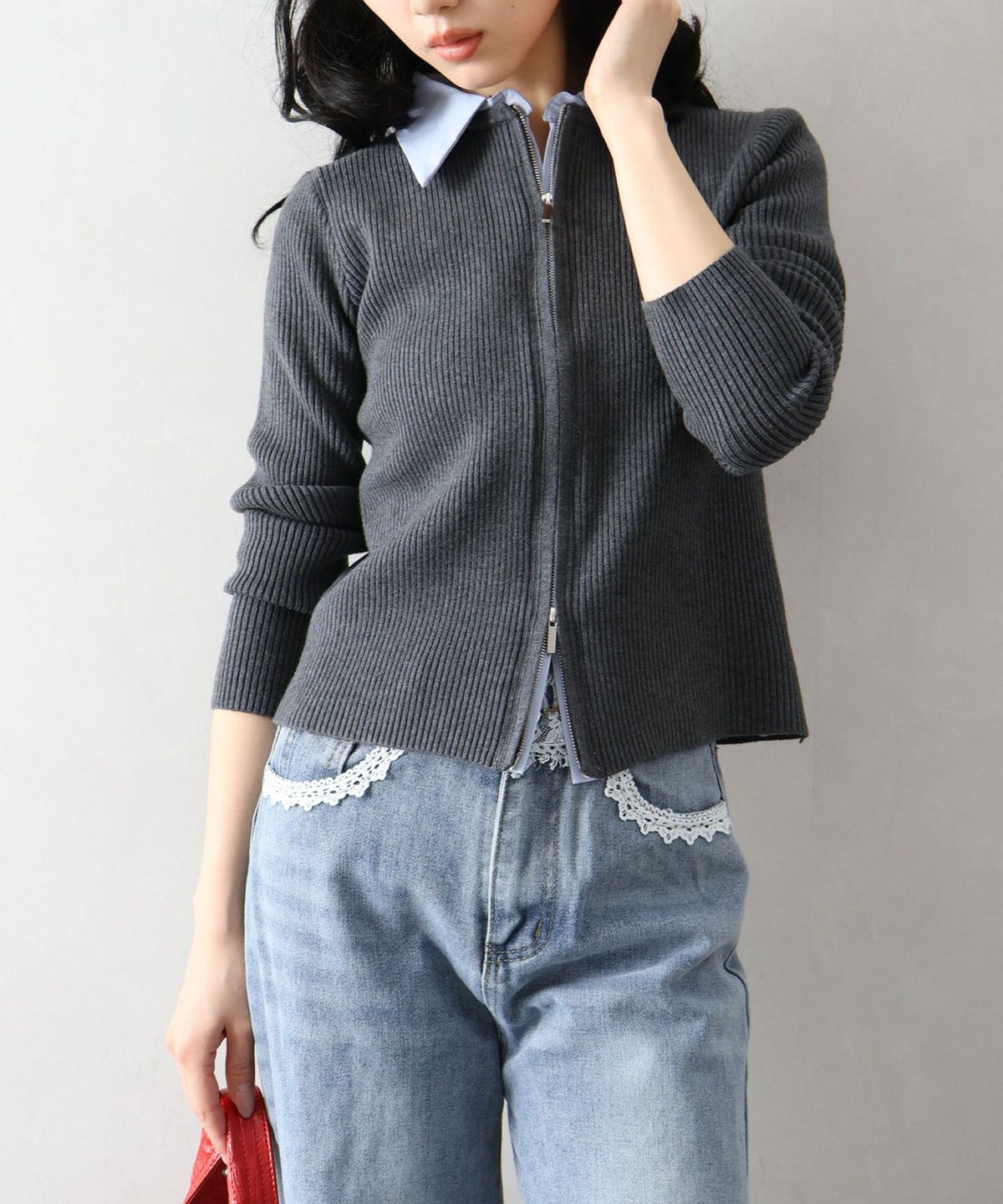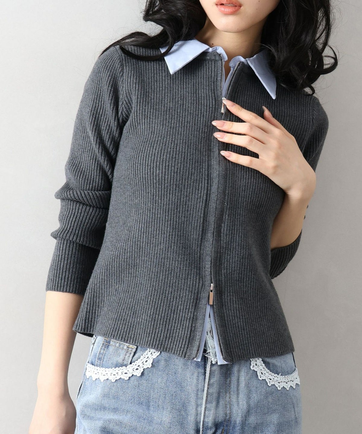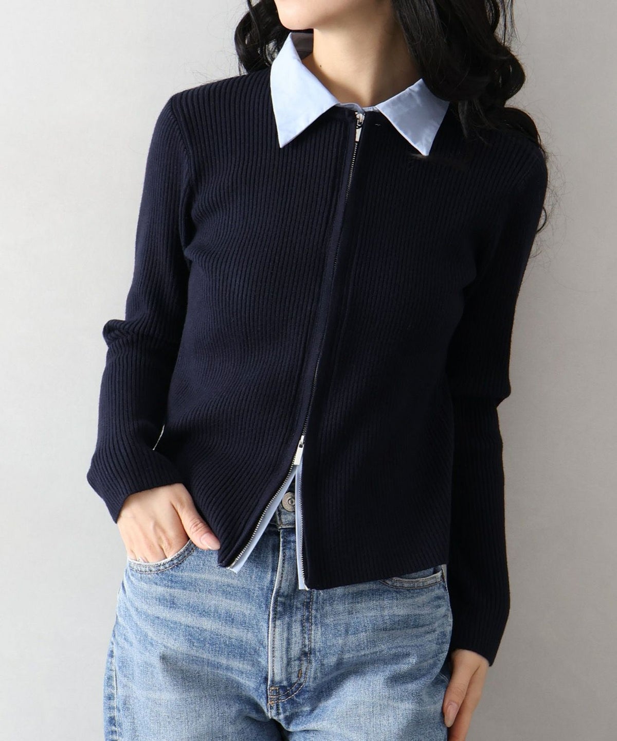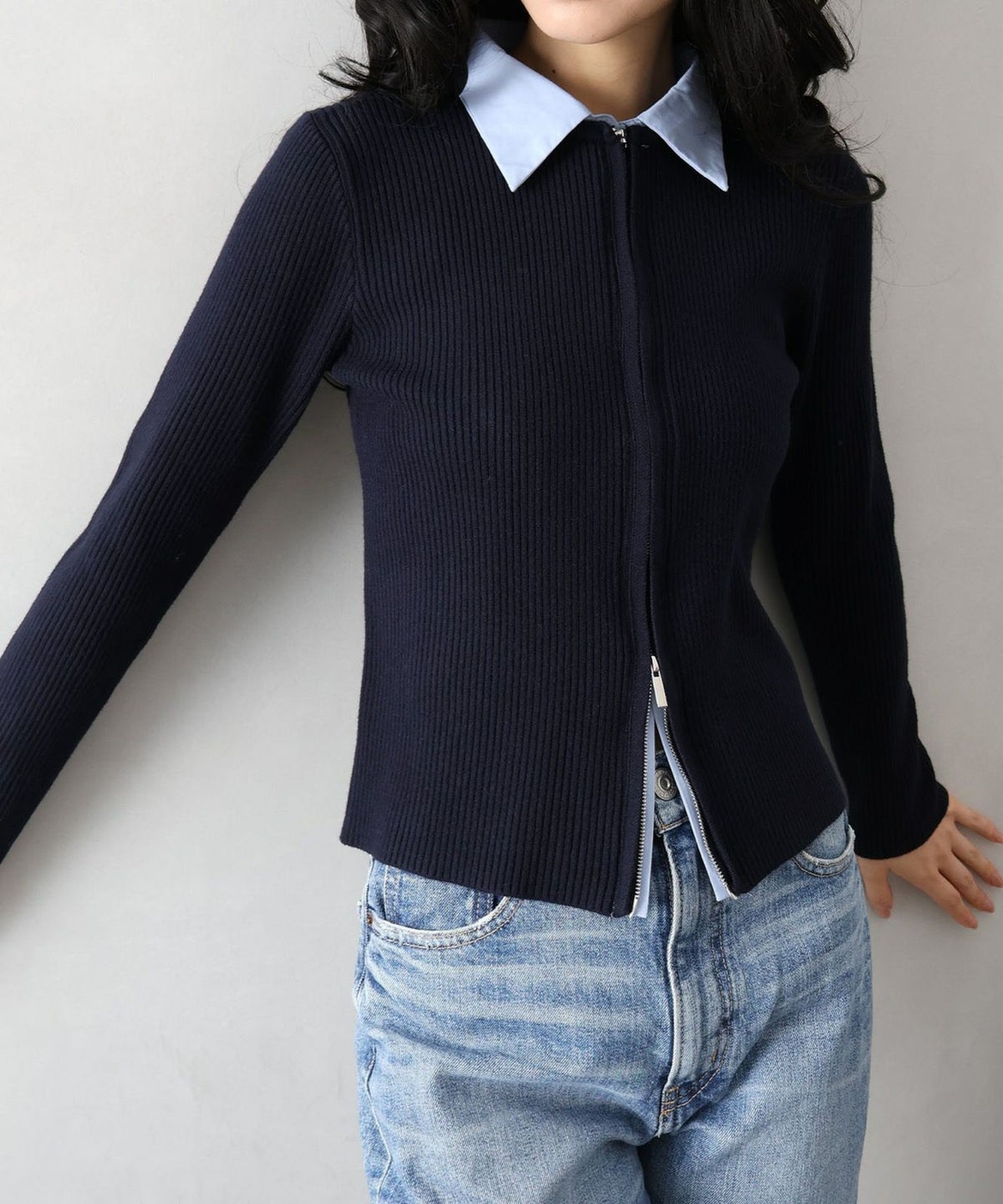 フェイクレイヤードジップカーディガン