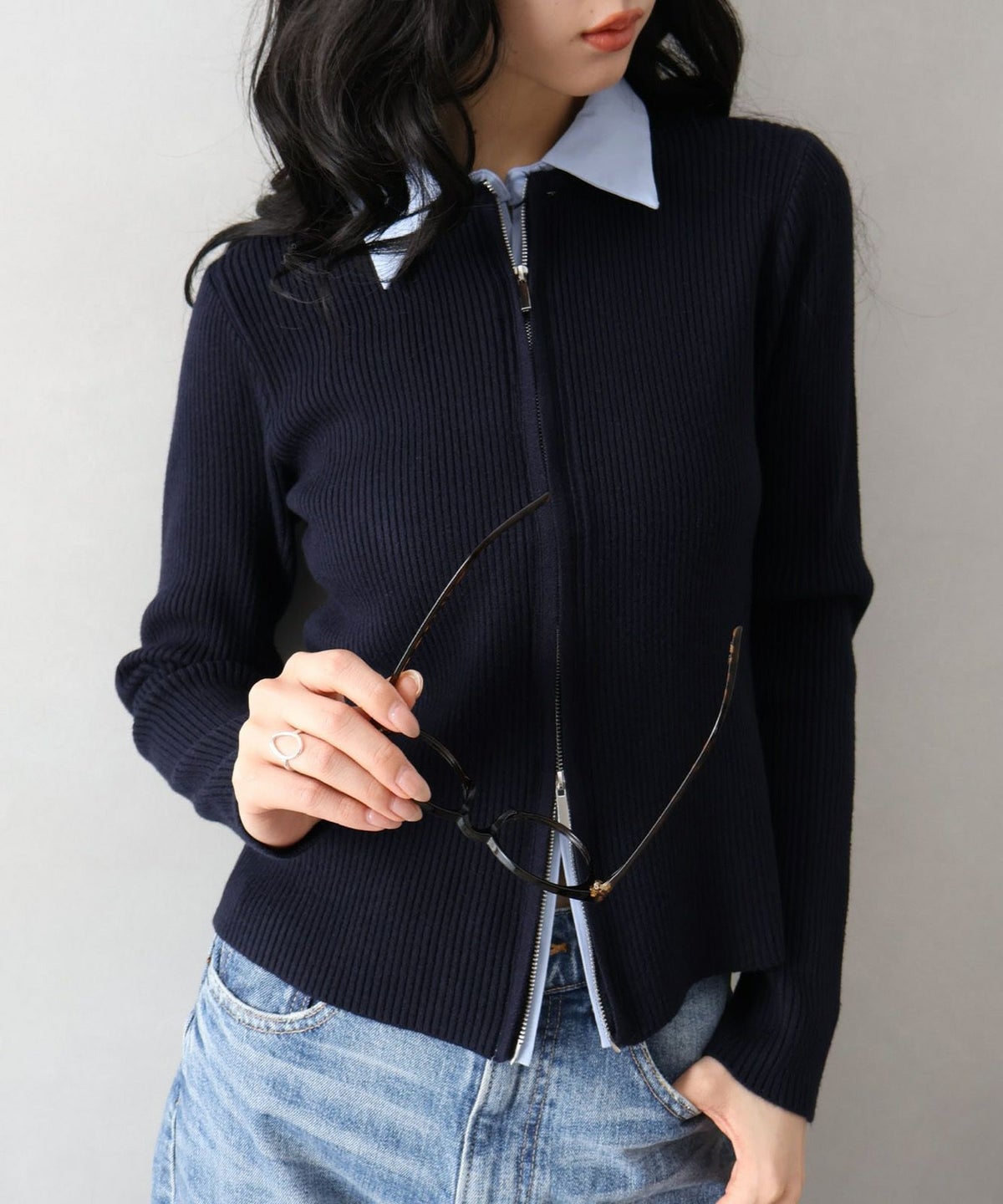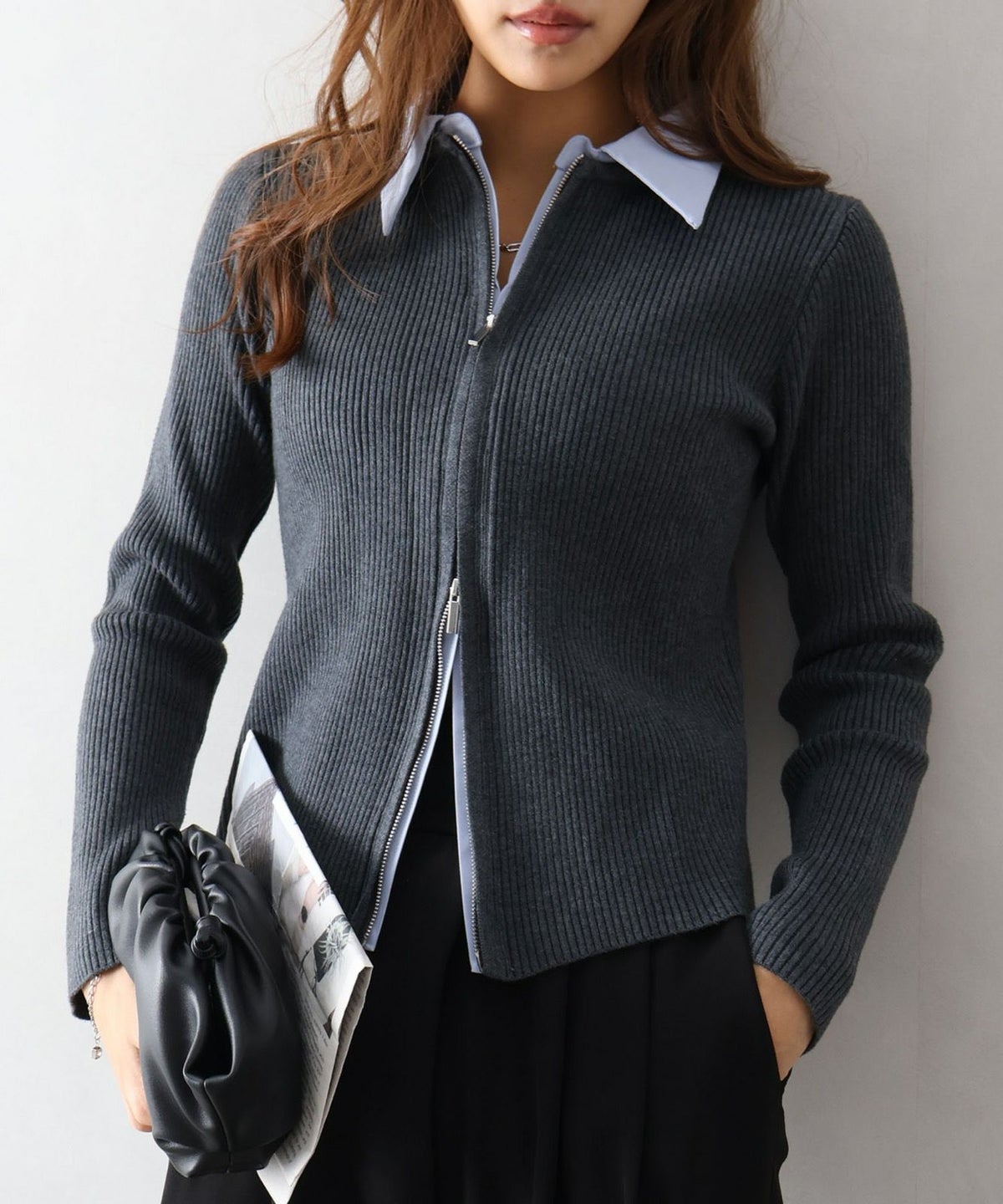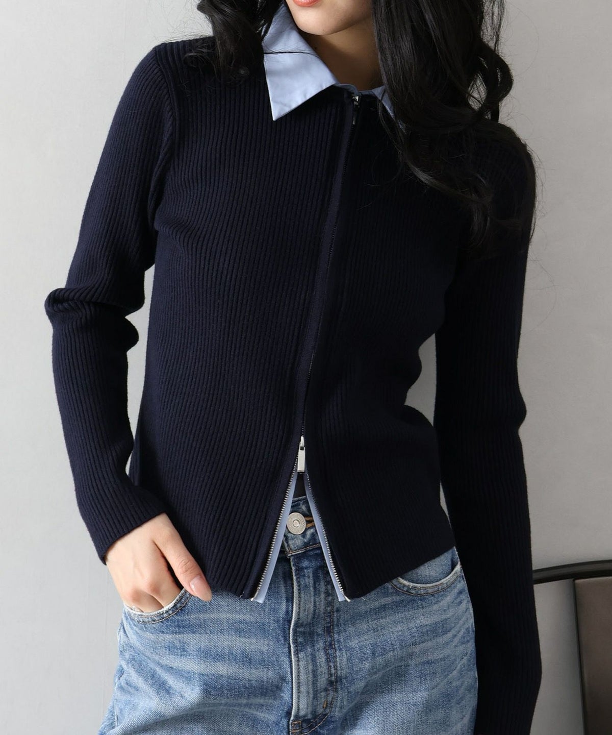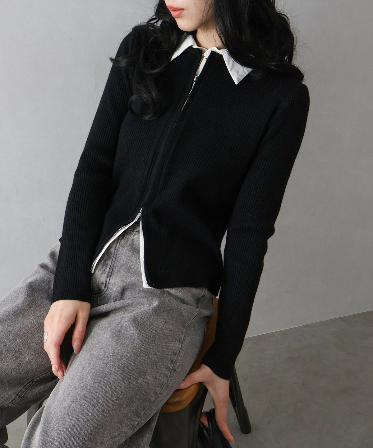 フェイクレイヤードジップカーディガン