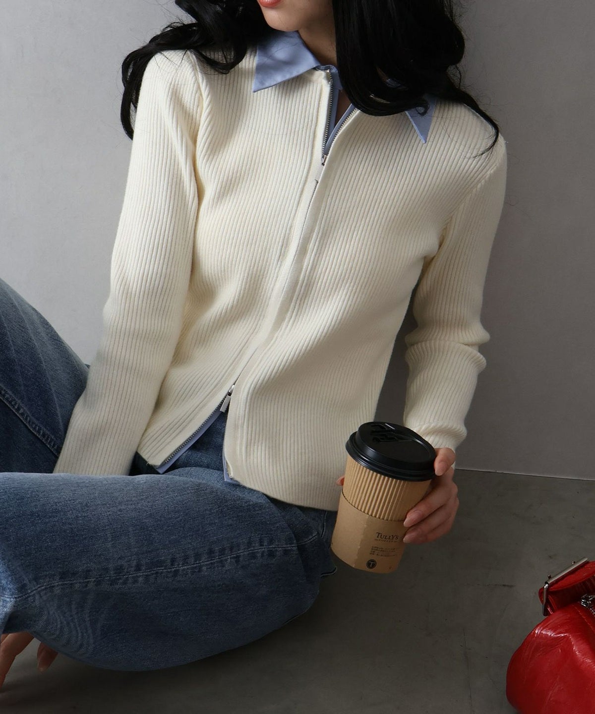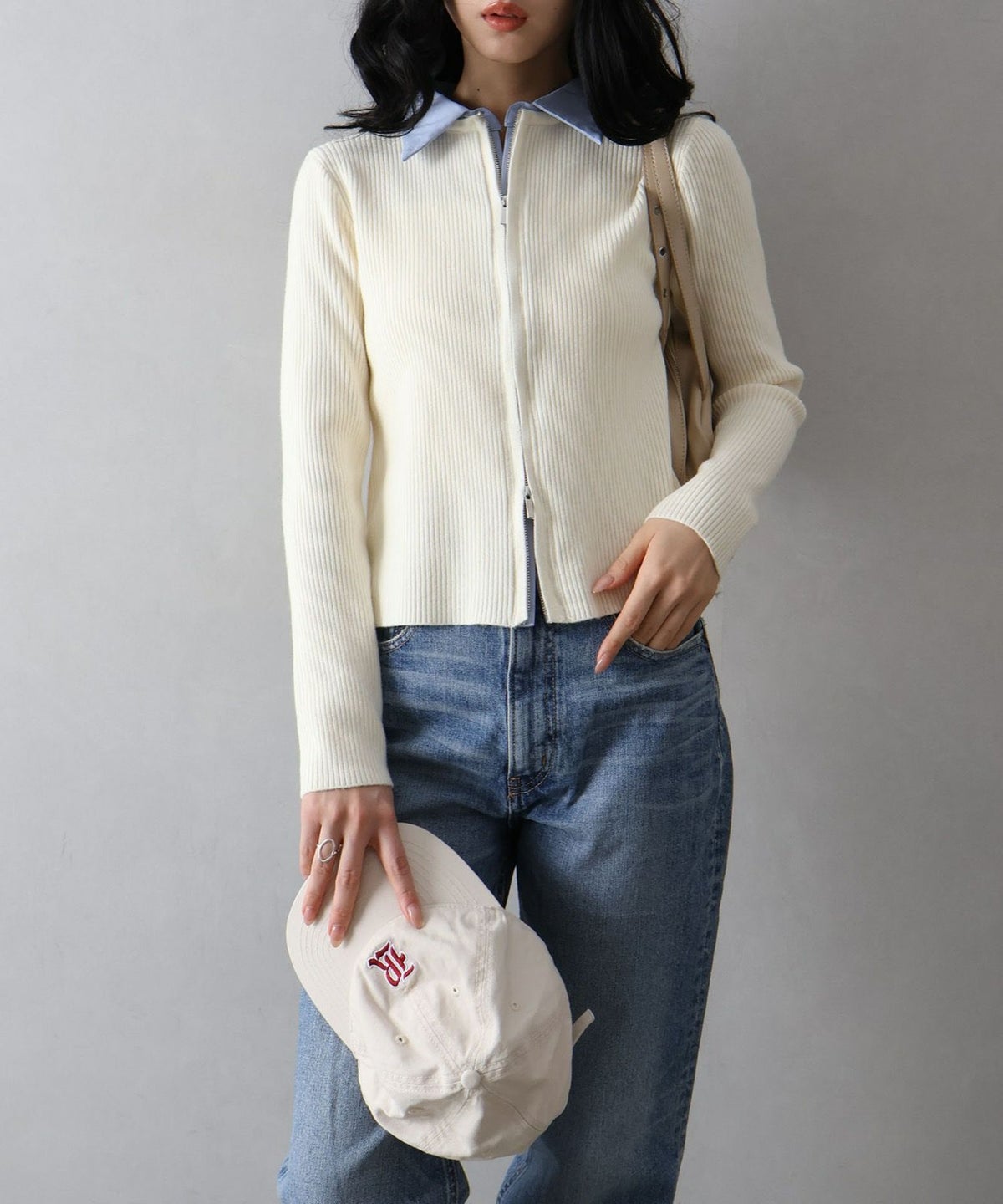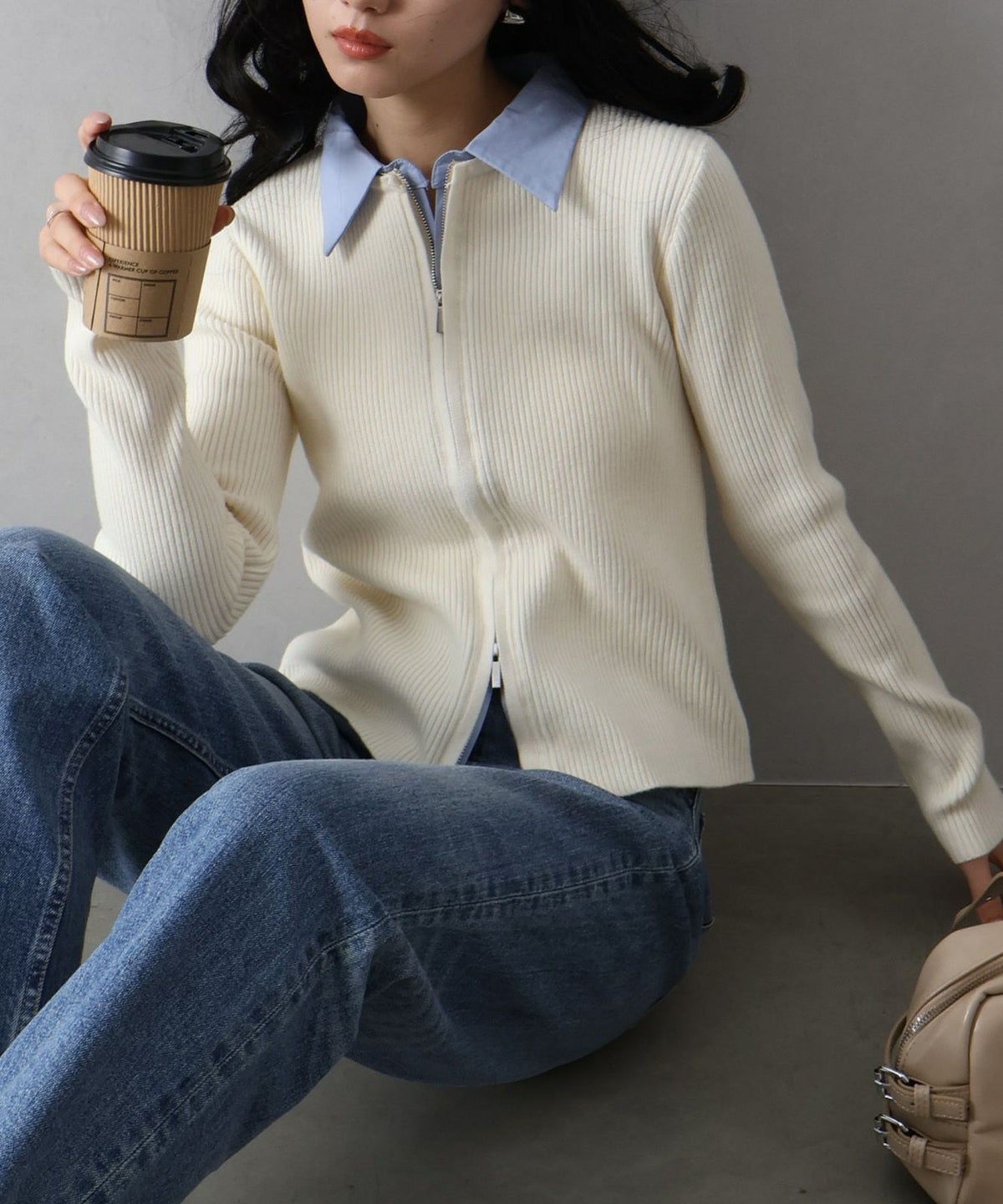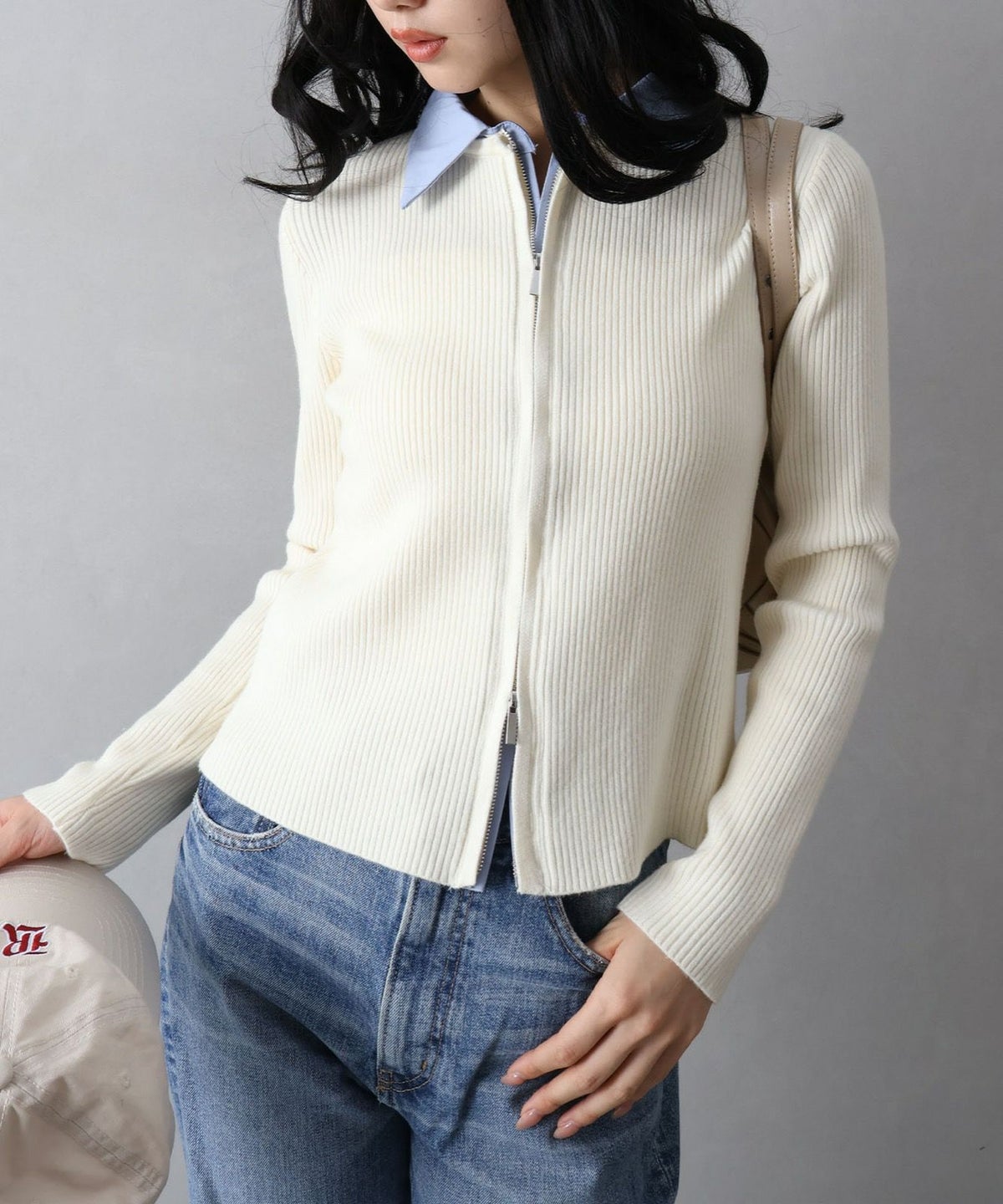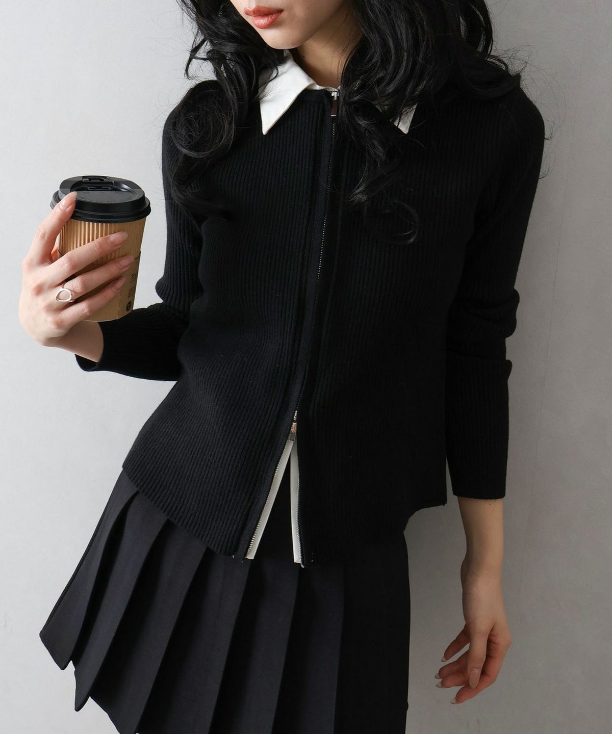 フェイクレイヤードジップカーディガン