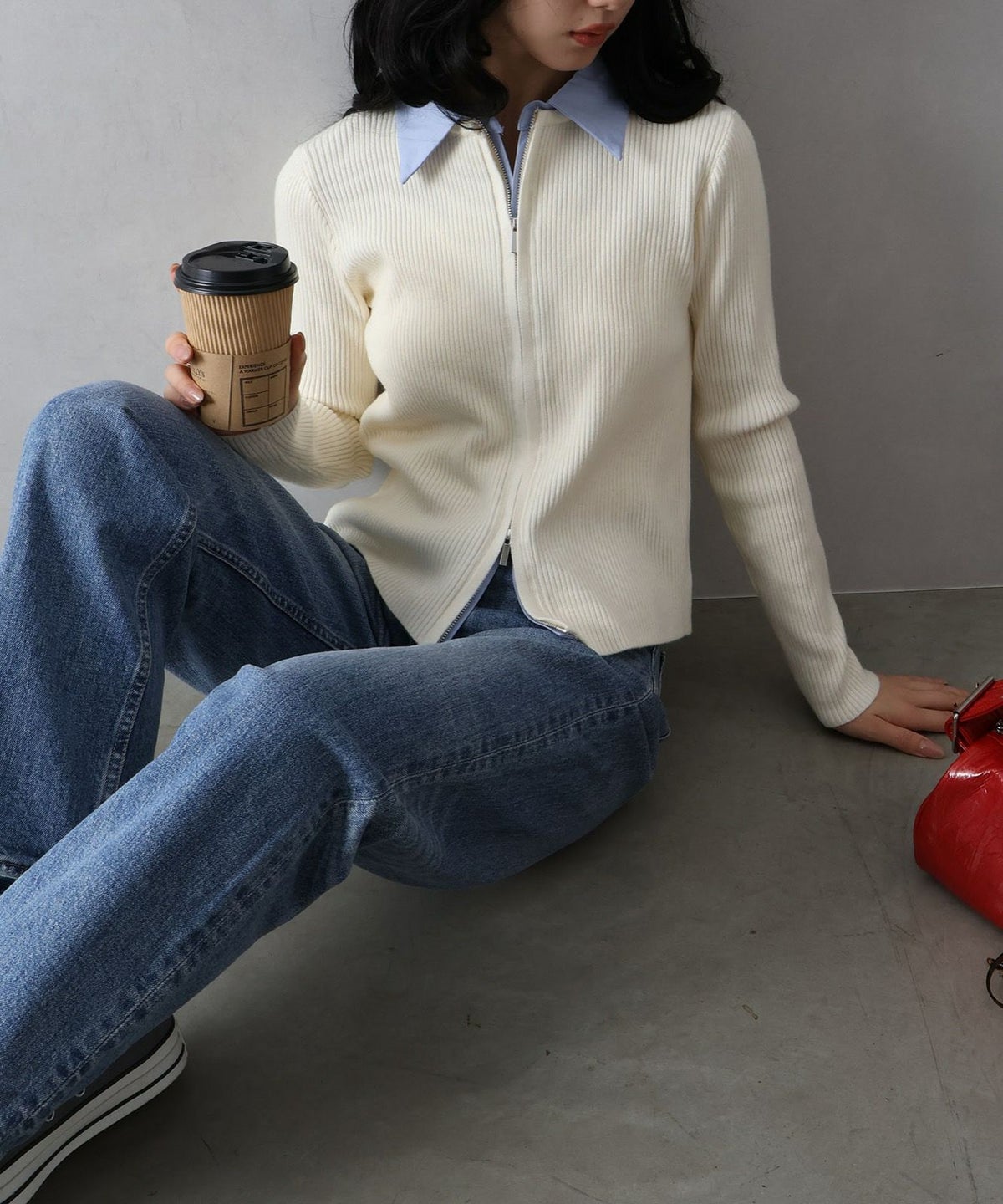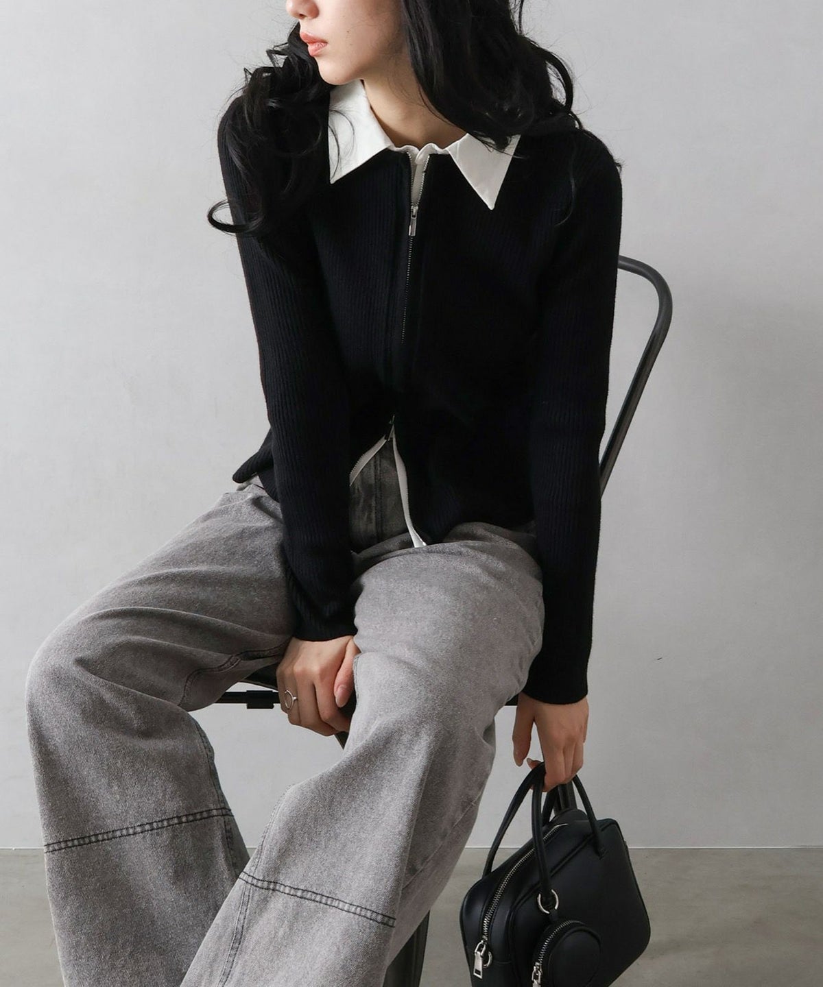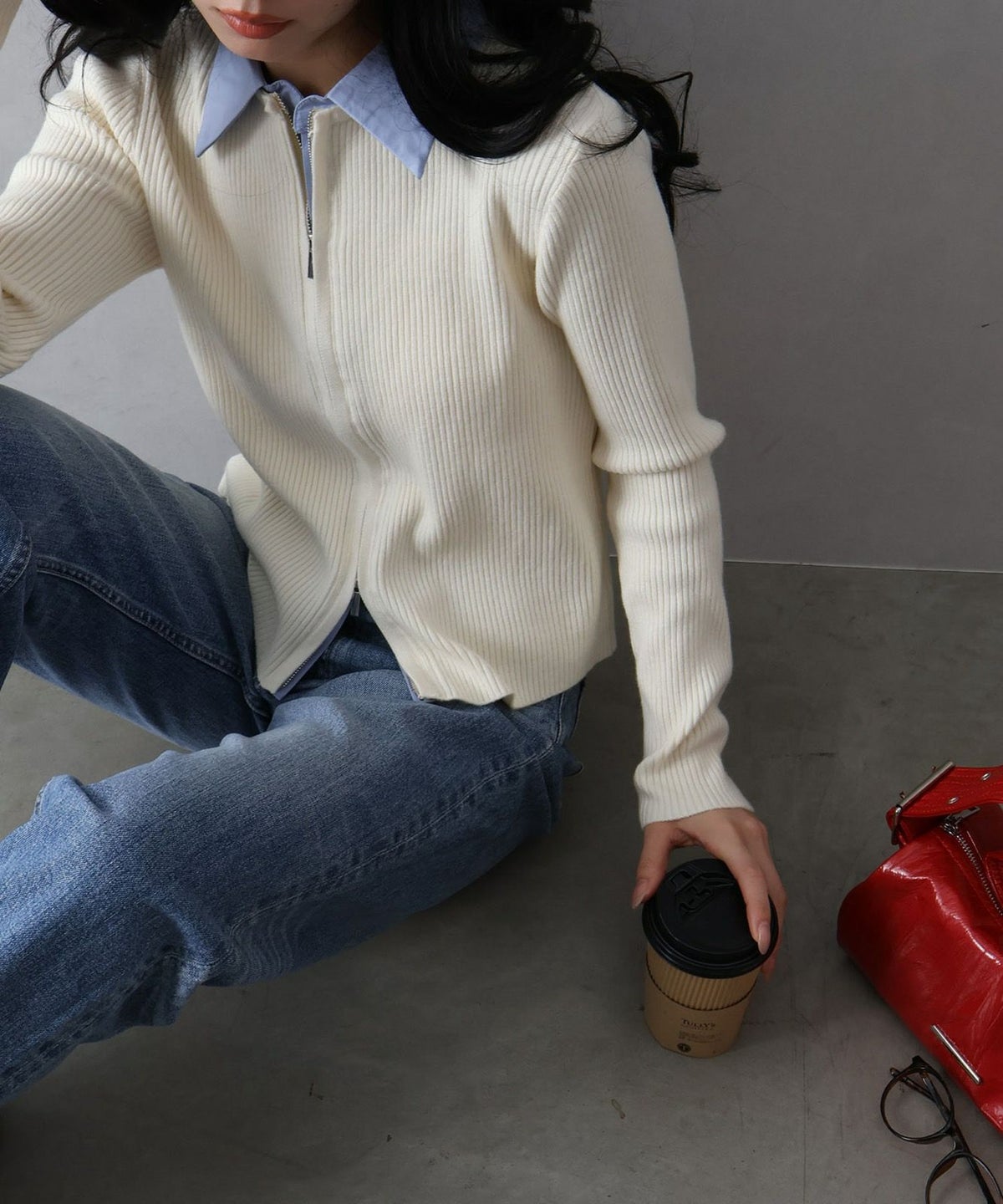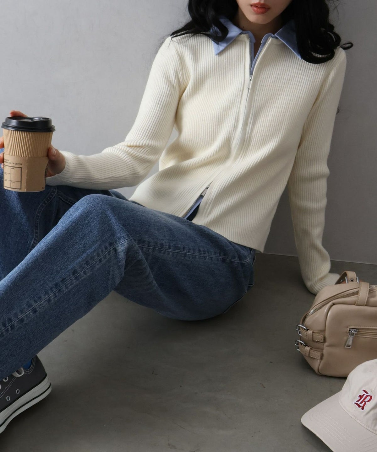 フェイクレイヤードジップカーディガン