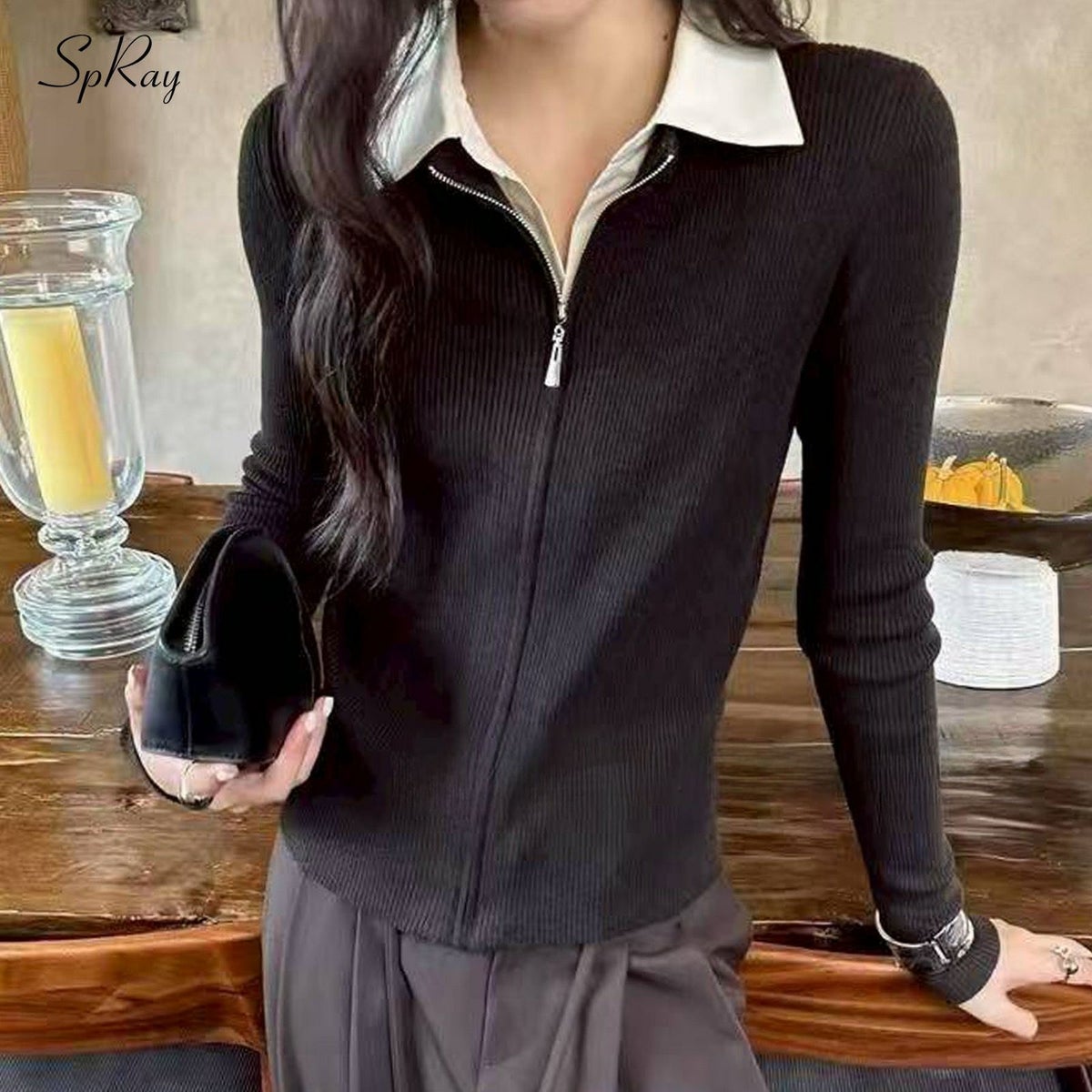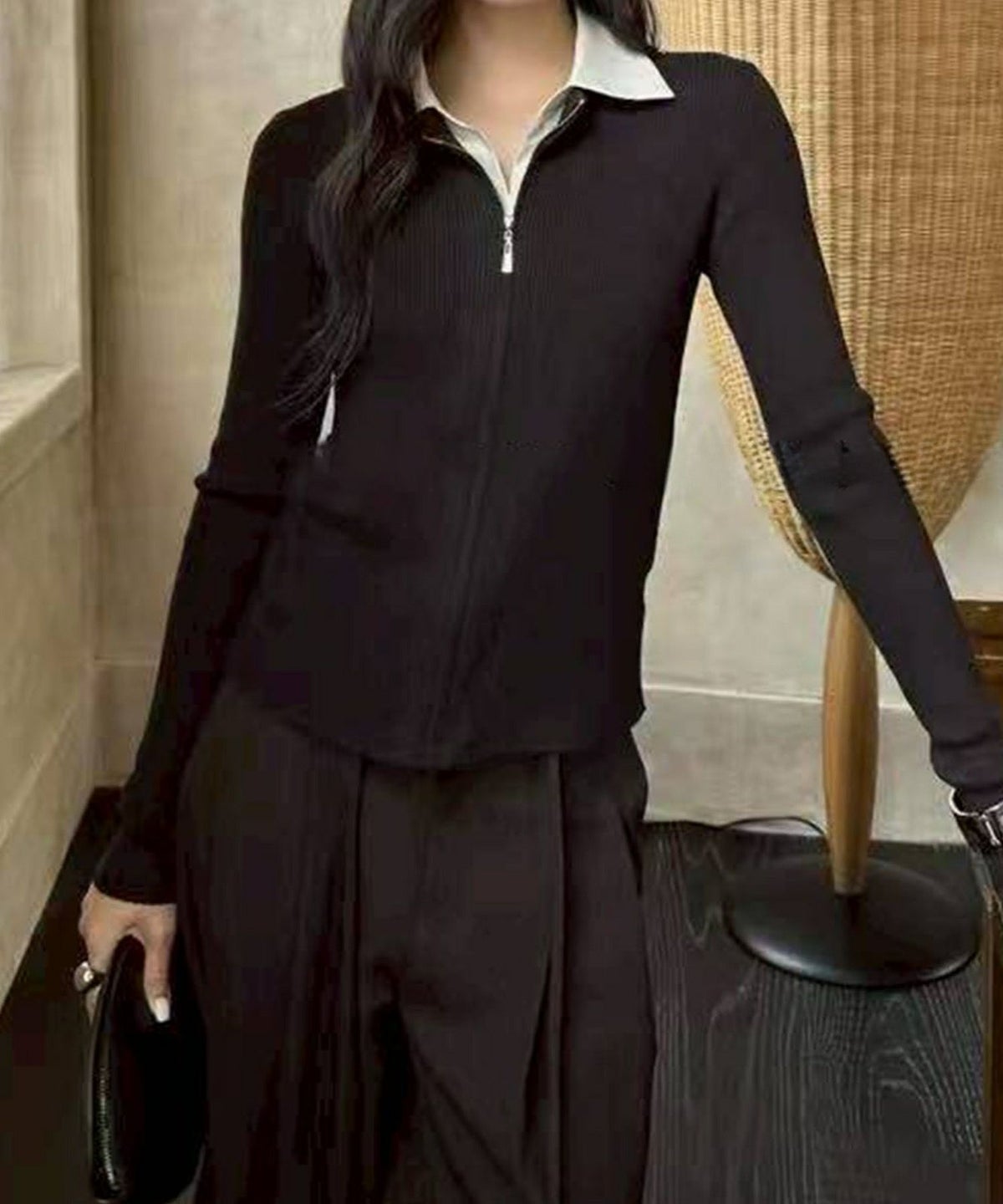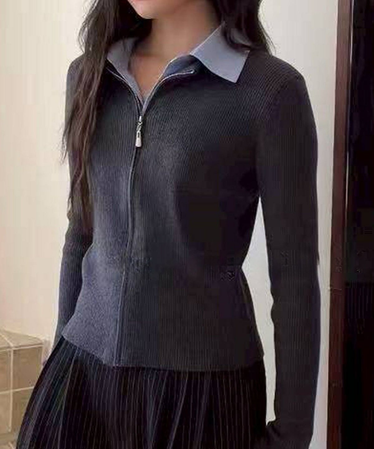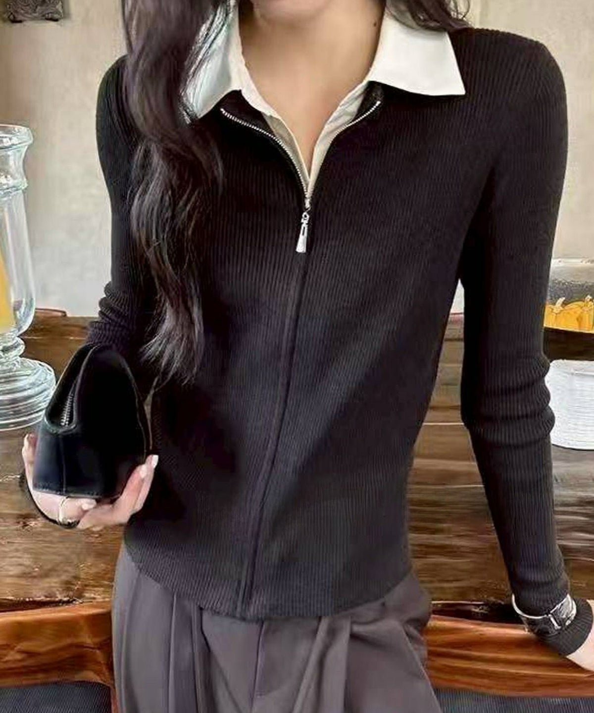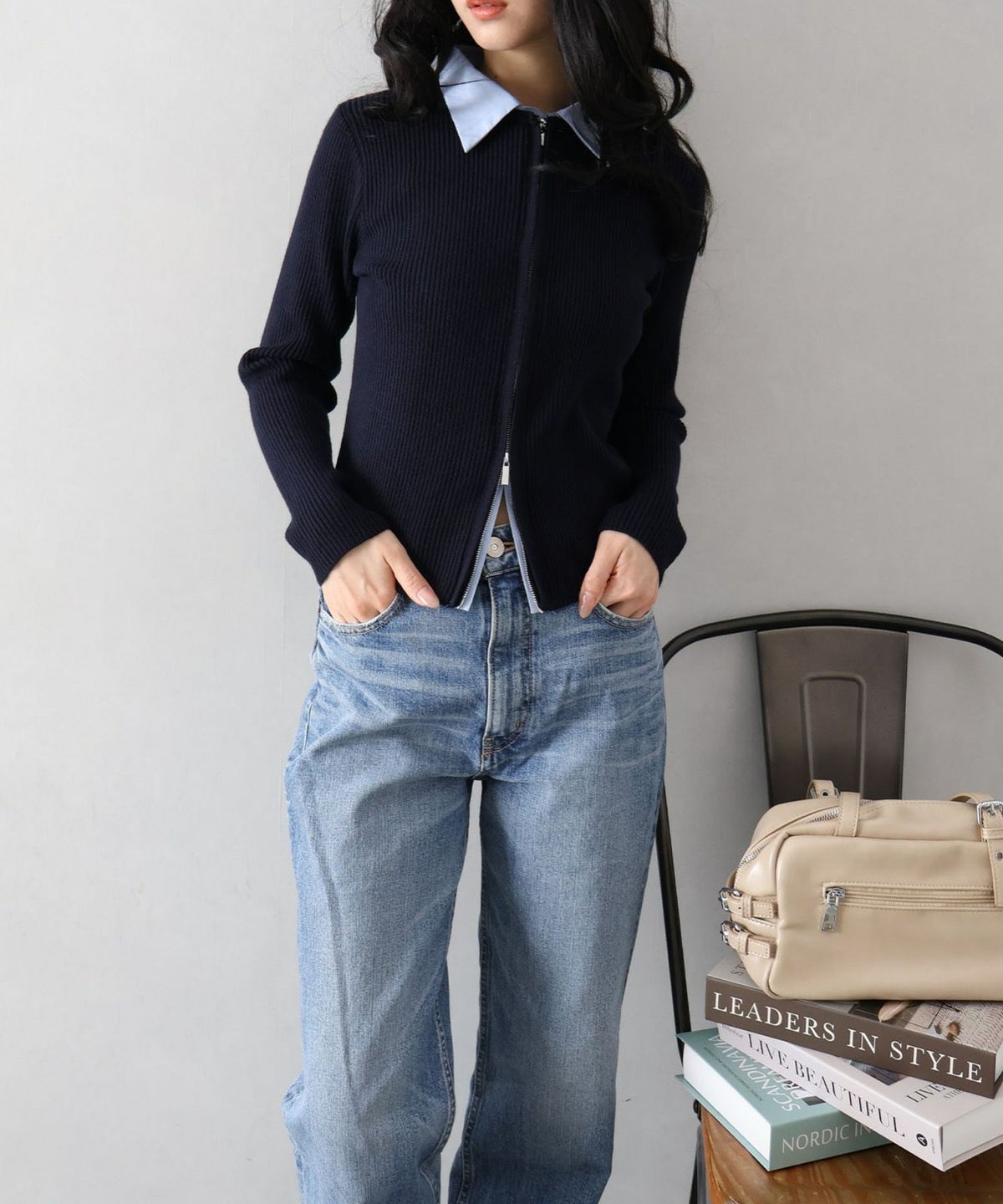 フェイクレイヤードジップカーディガン
