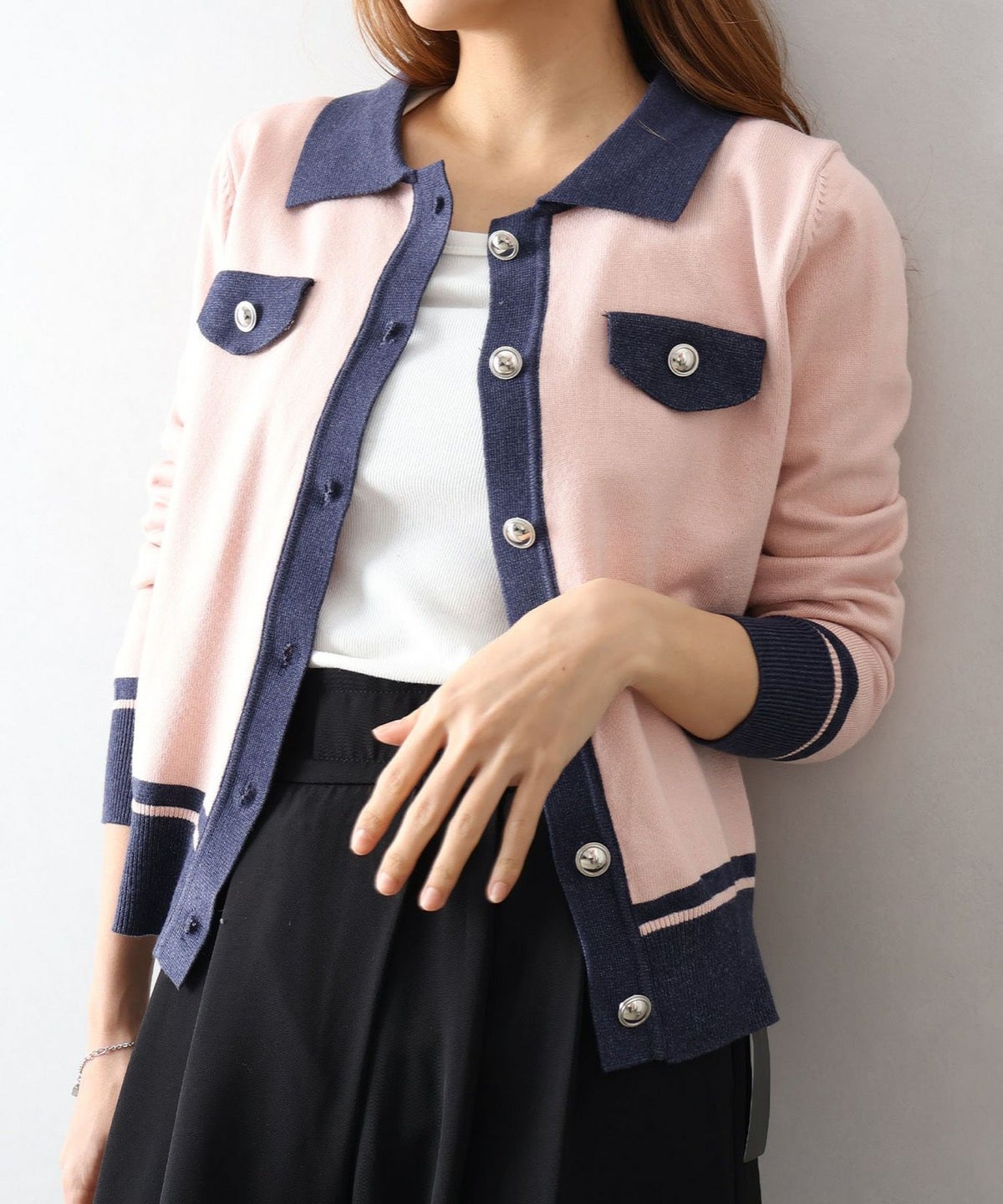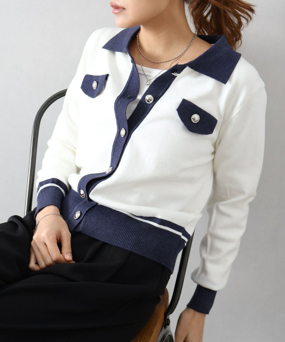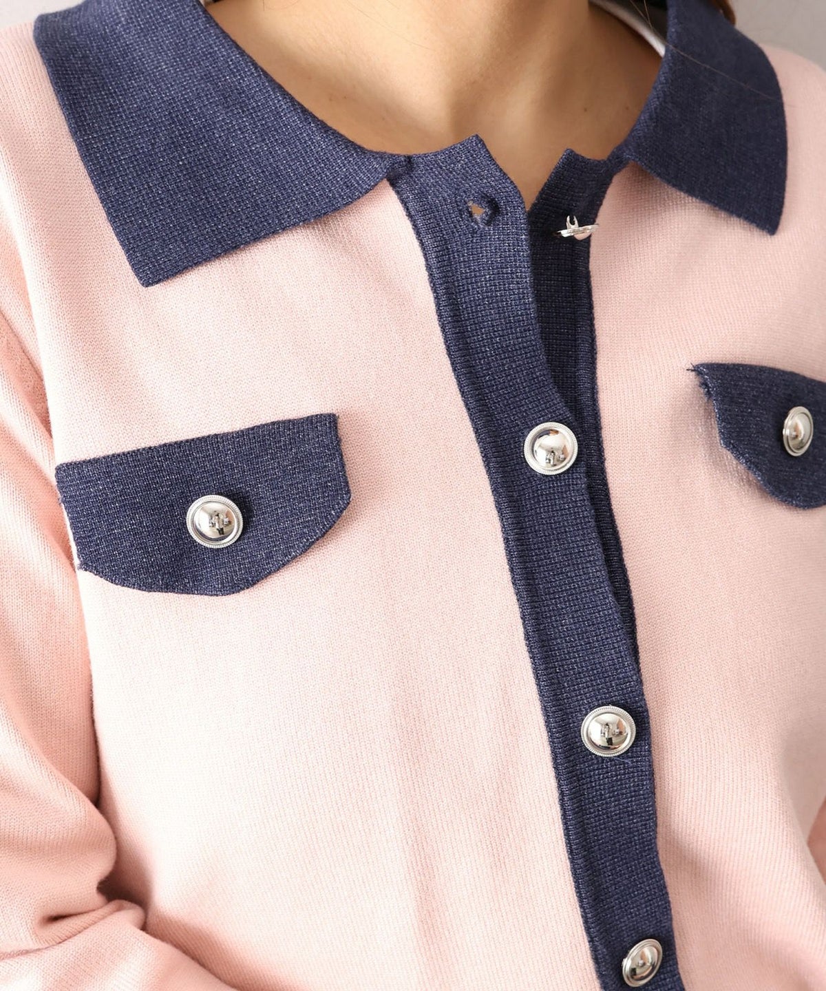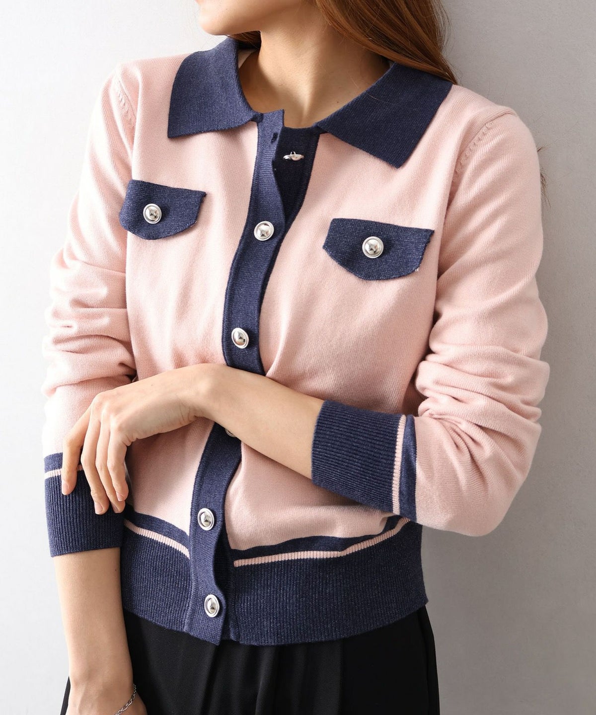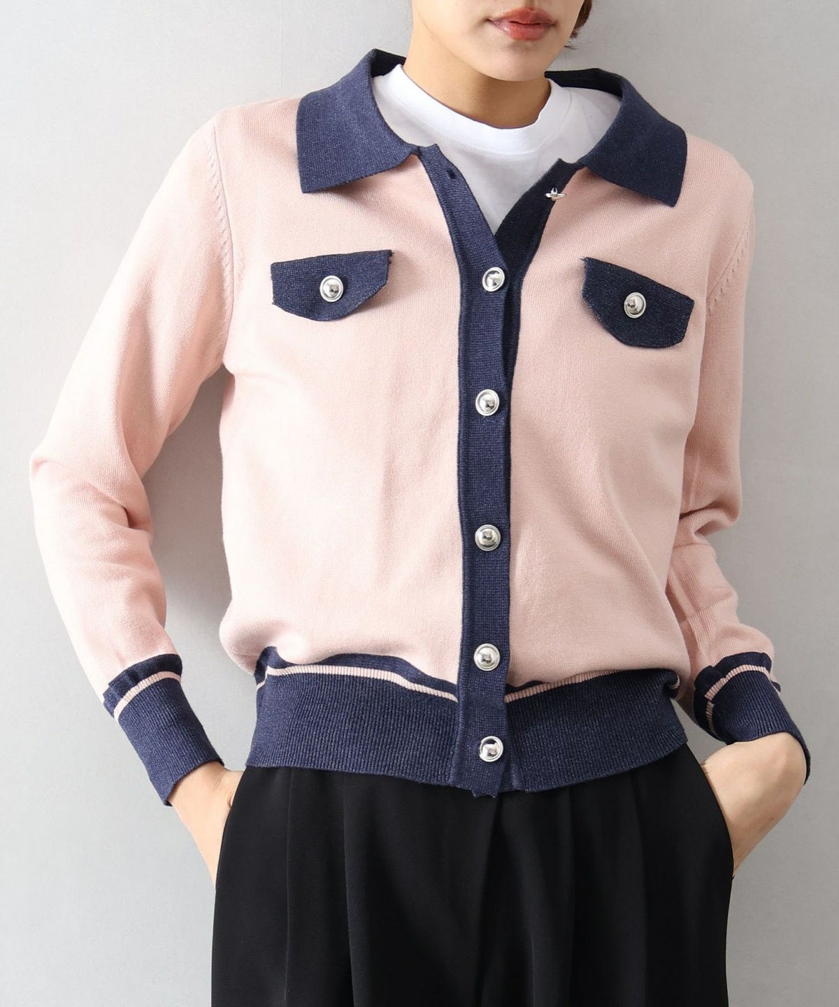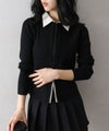 バイカラー衿付カーディガン