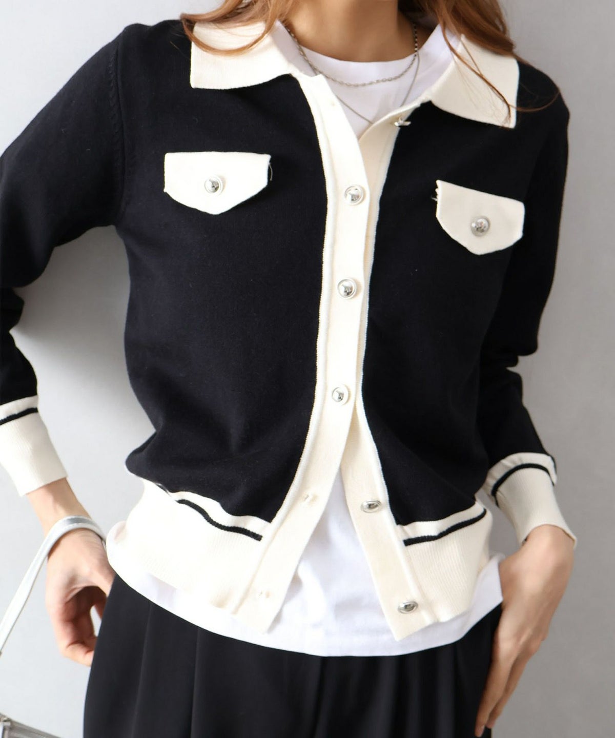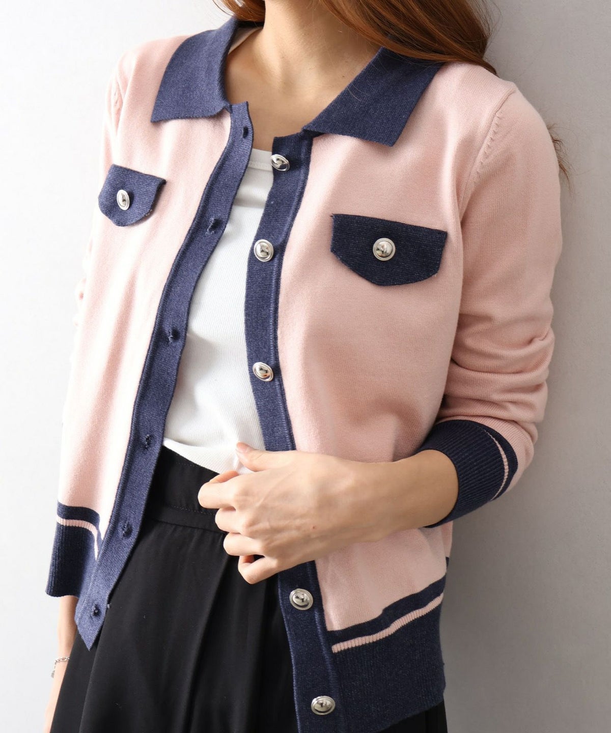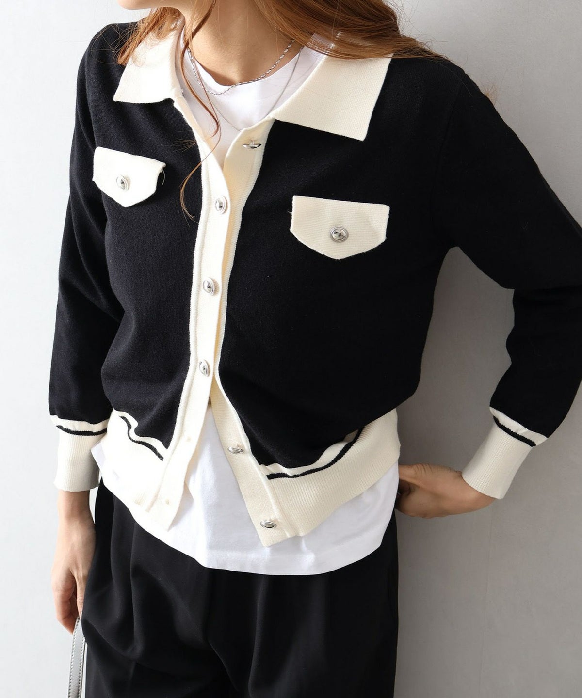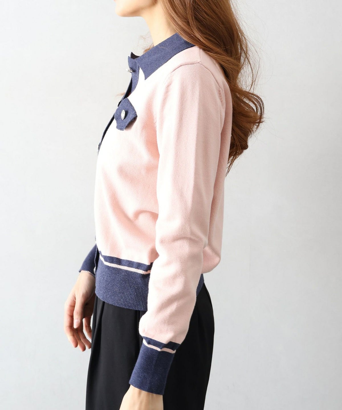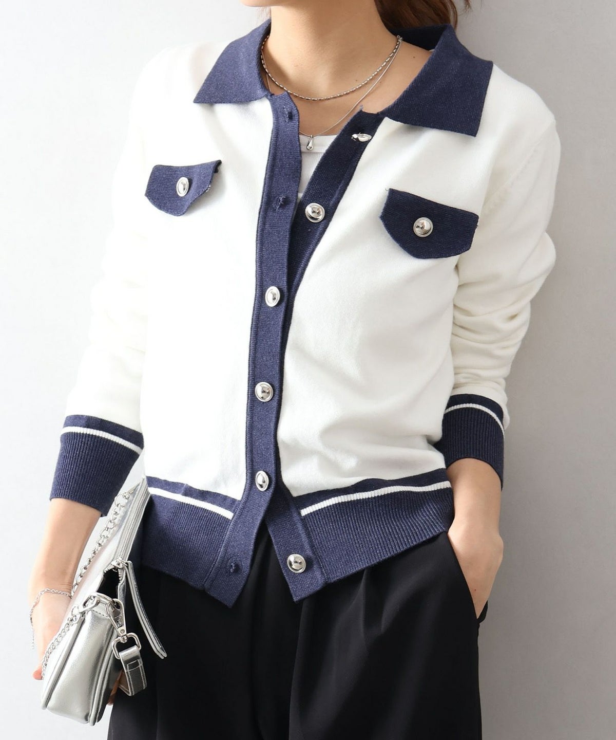 バイカラー衿付カーディガン