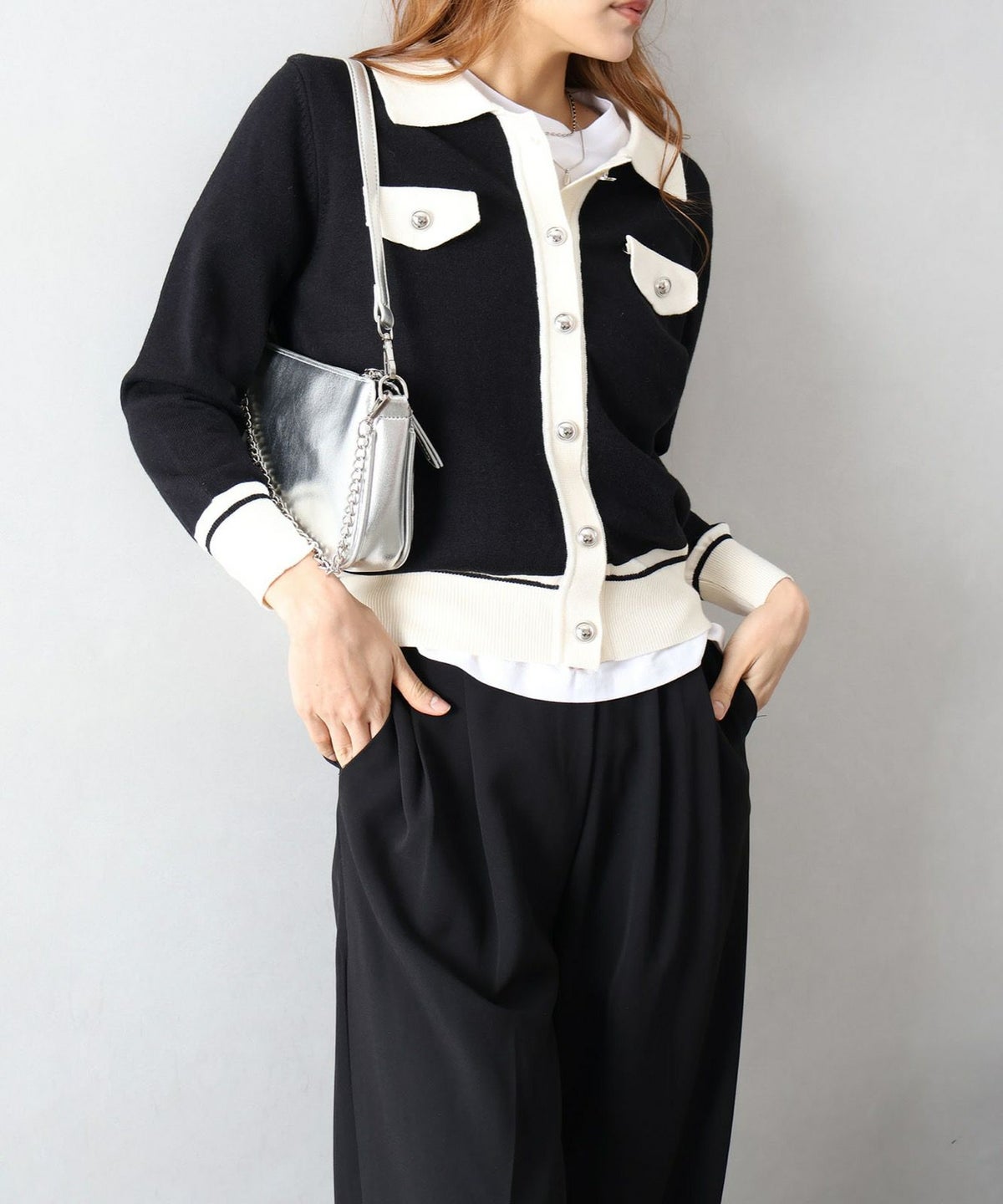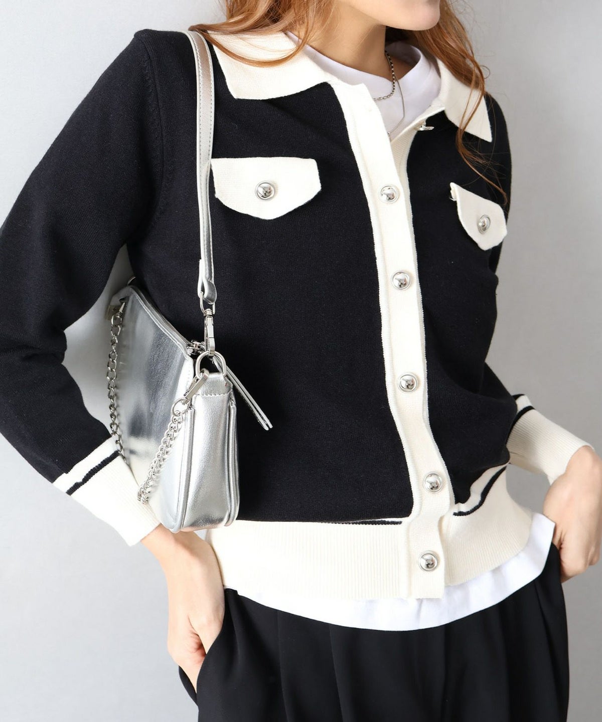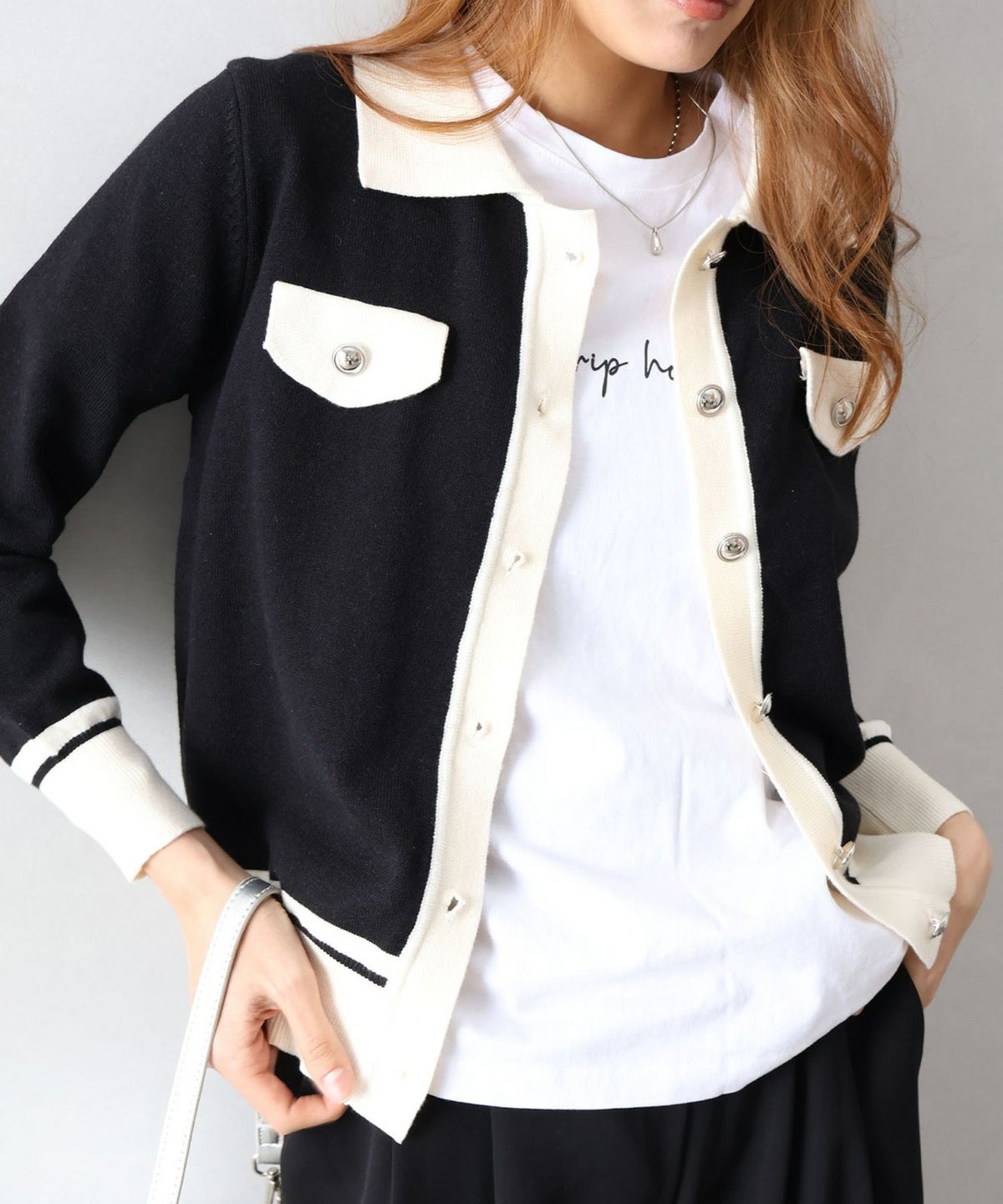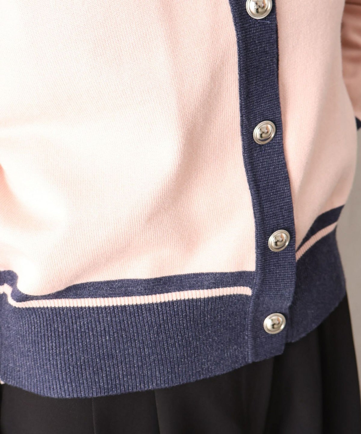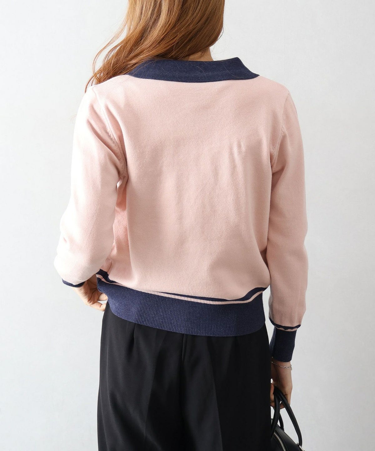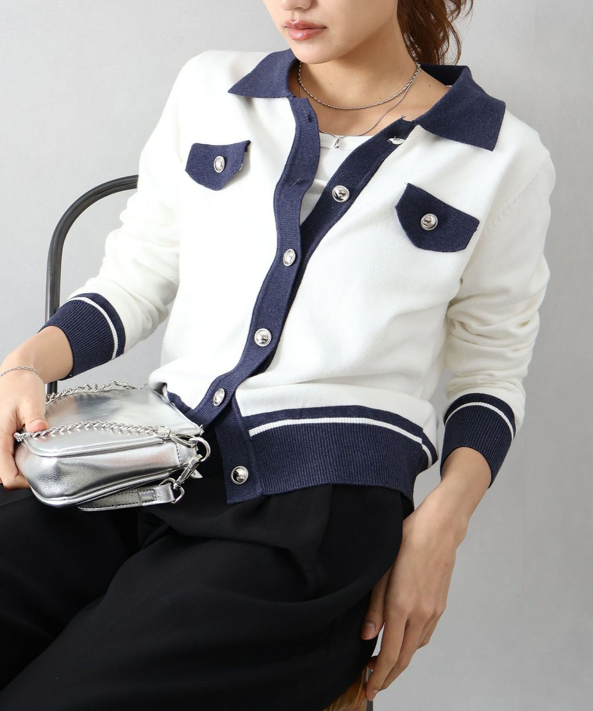 バイカラー衿付カーディガン