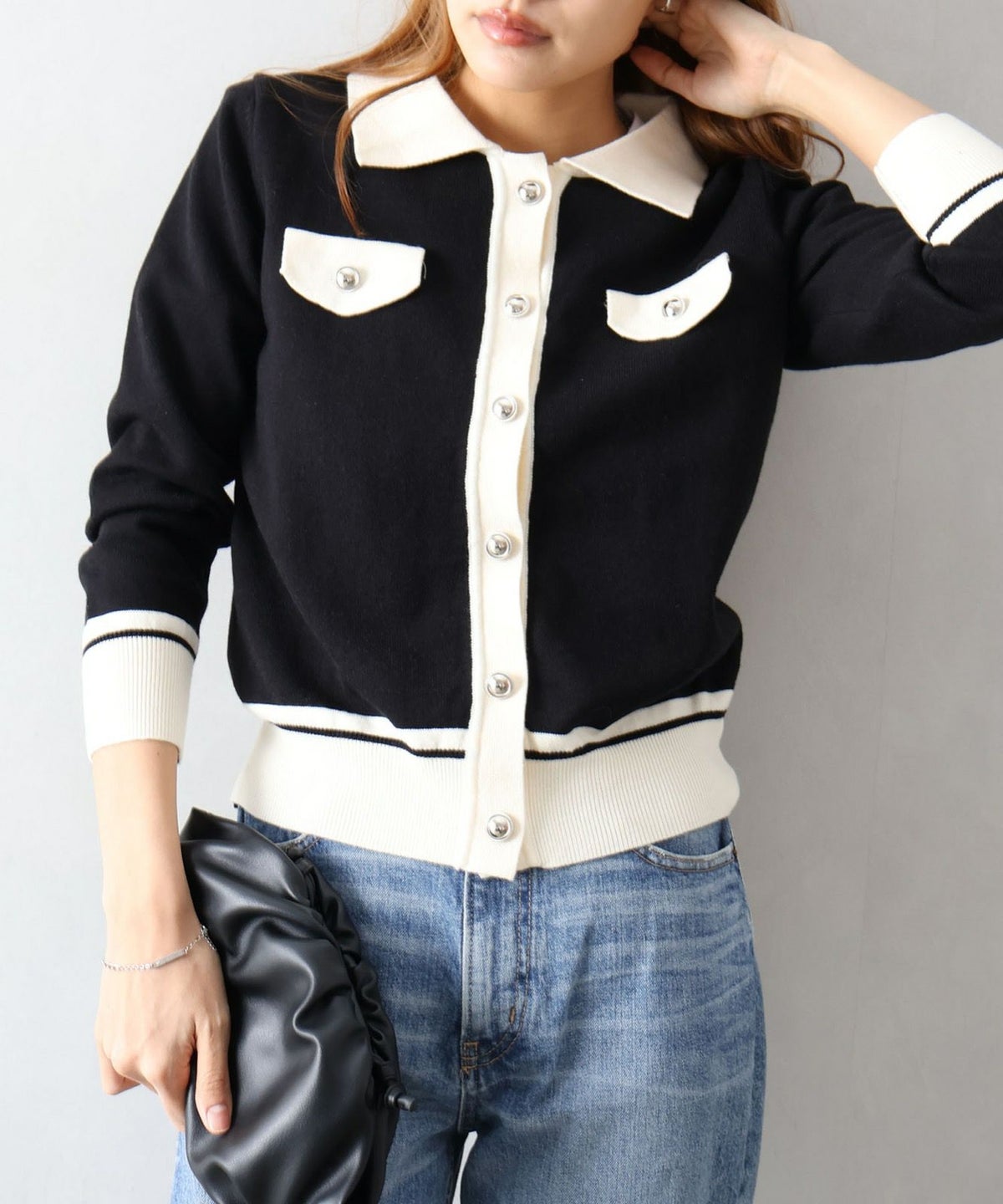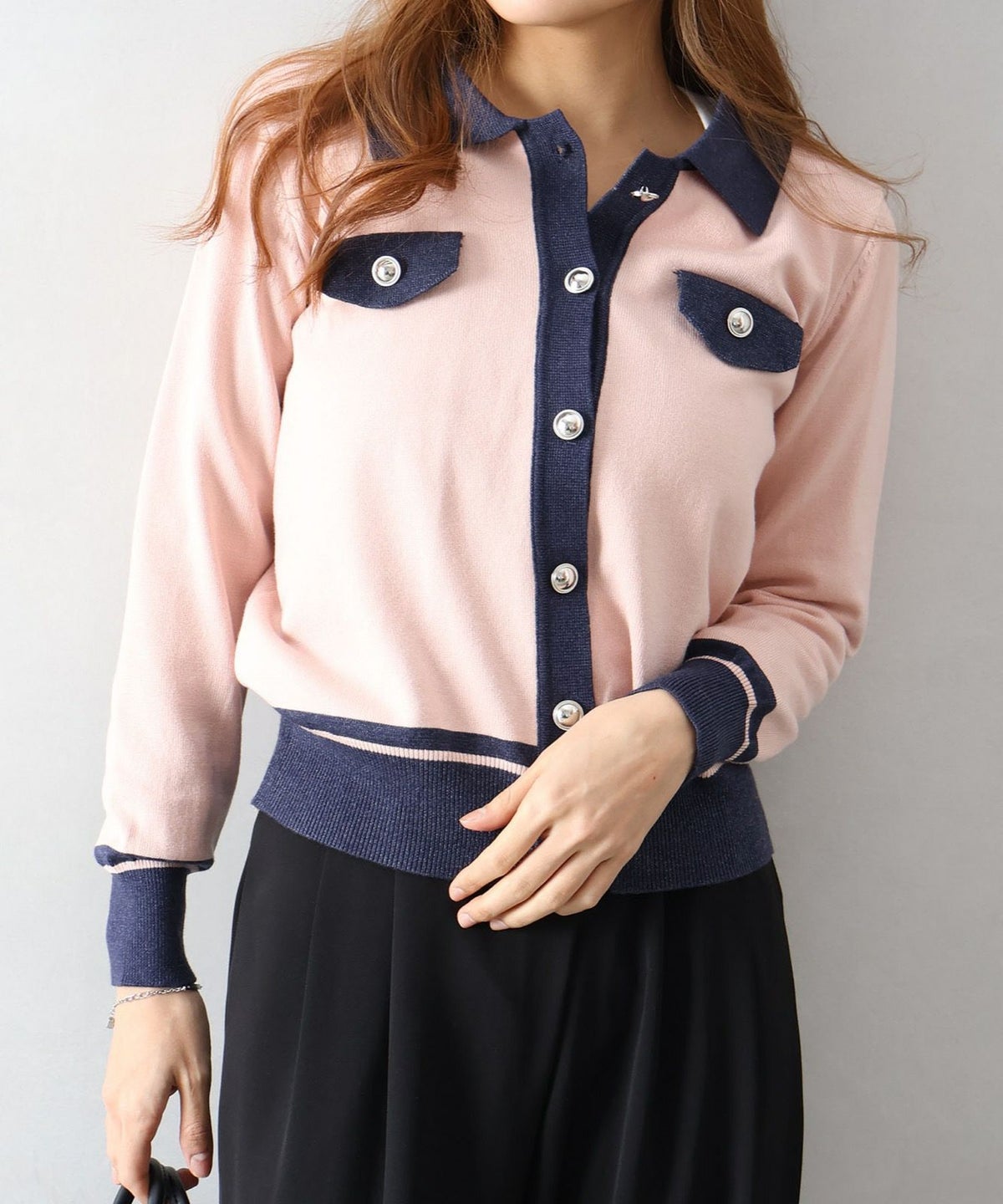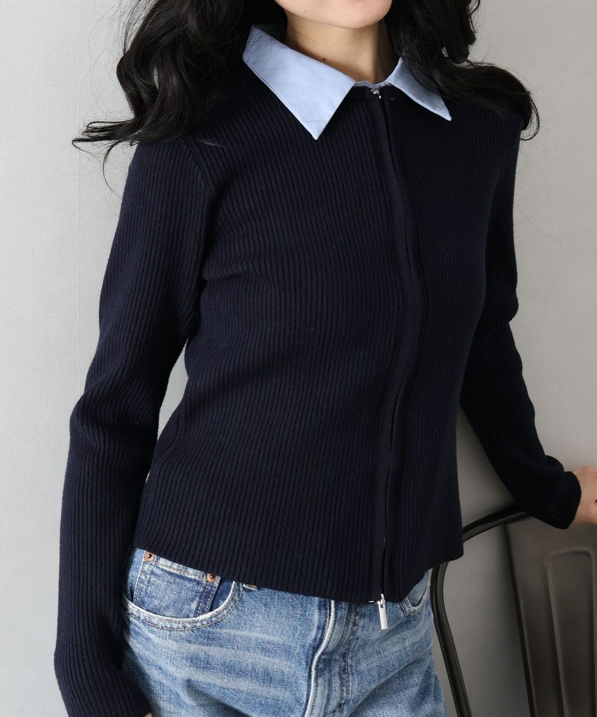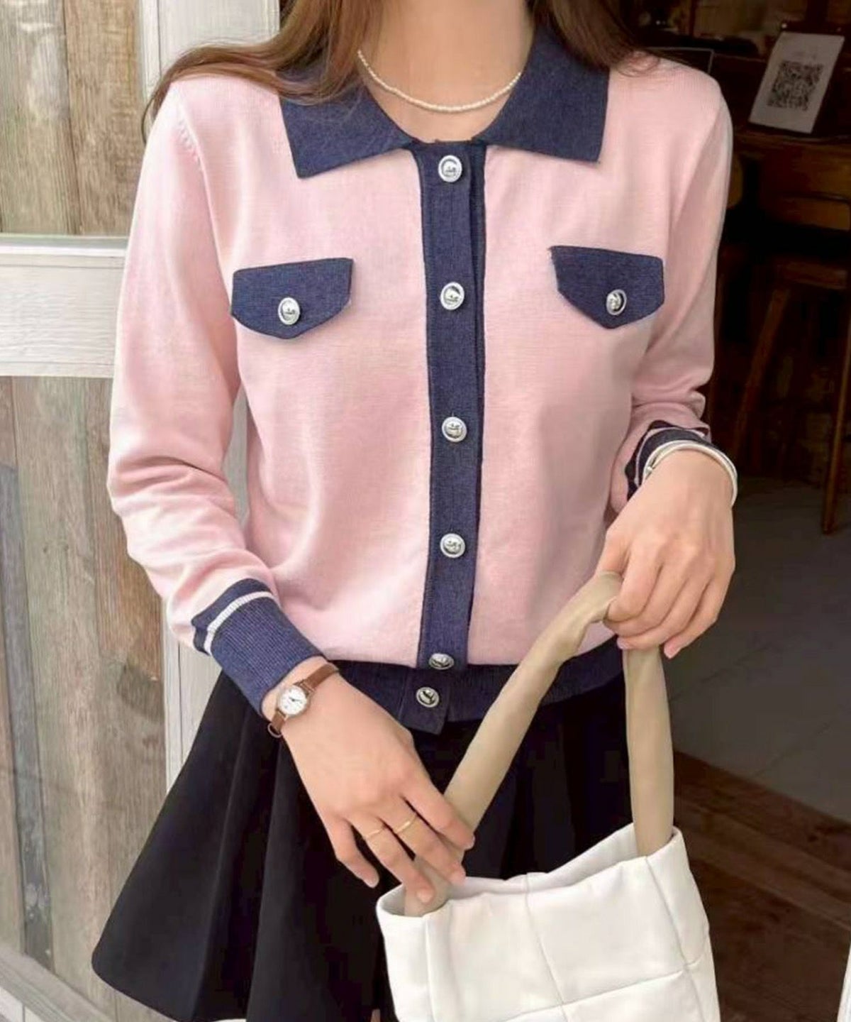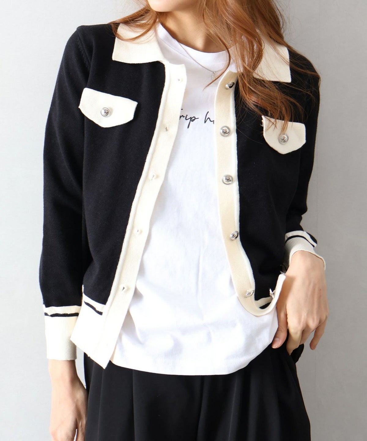 バイカラー衿付カーディガン